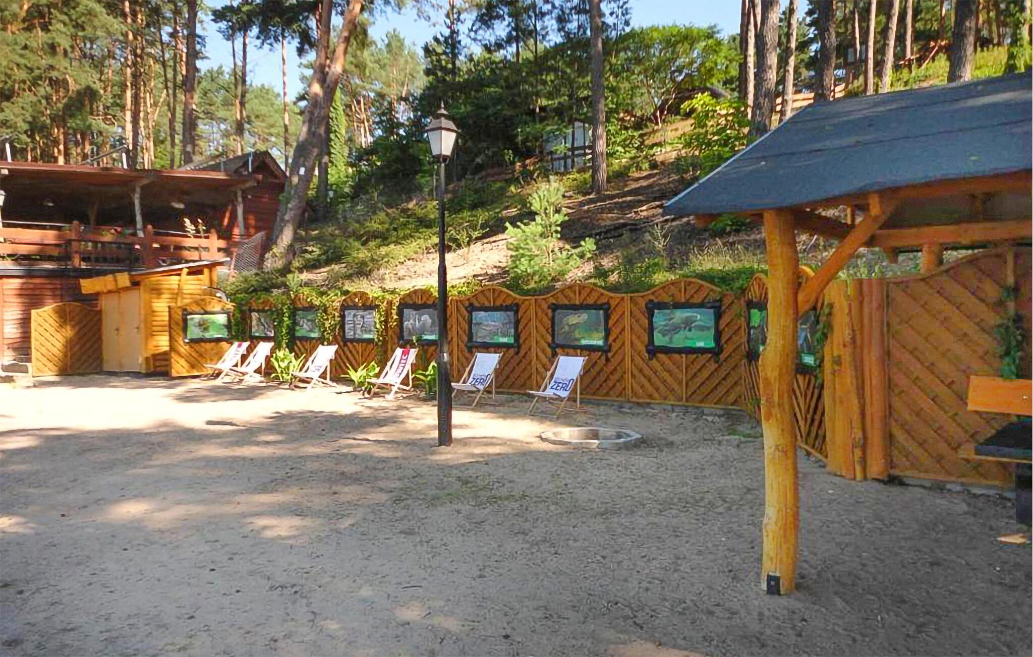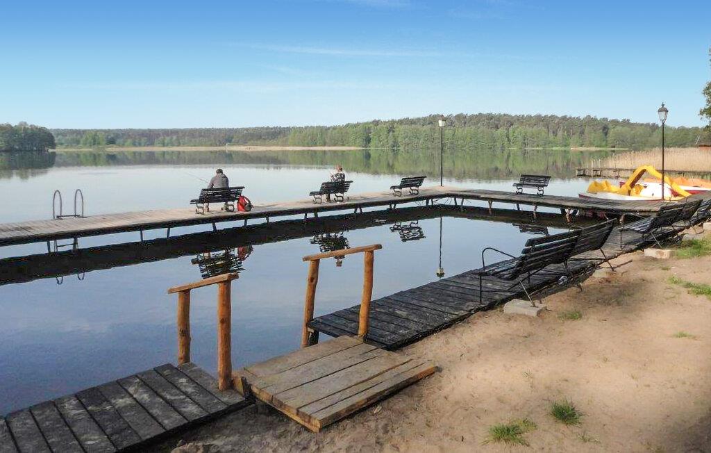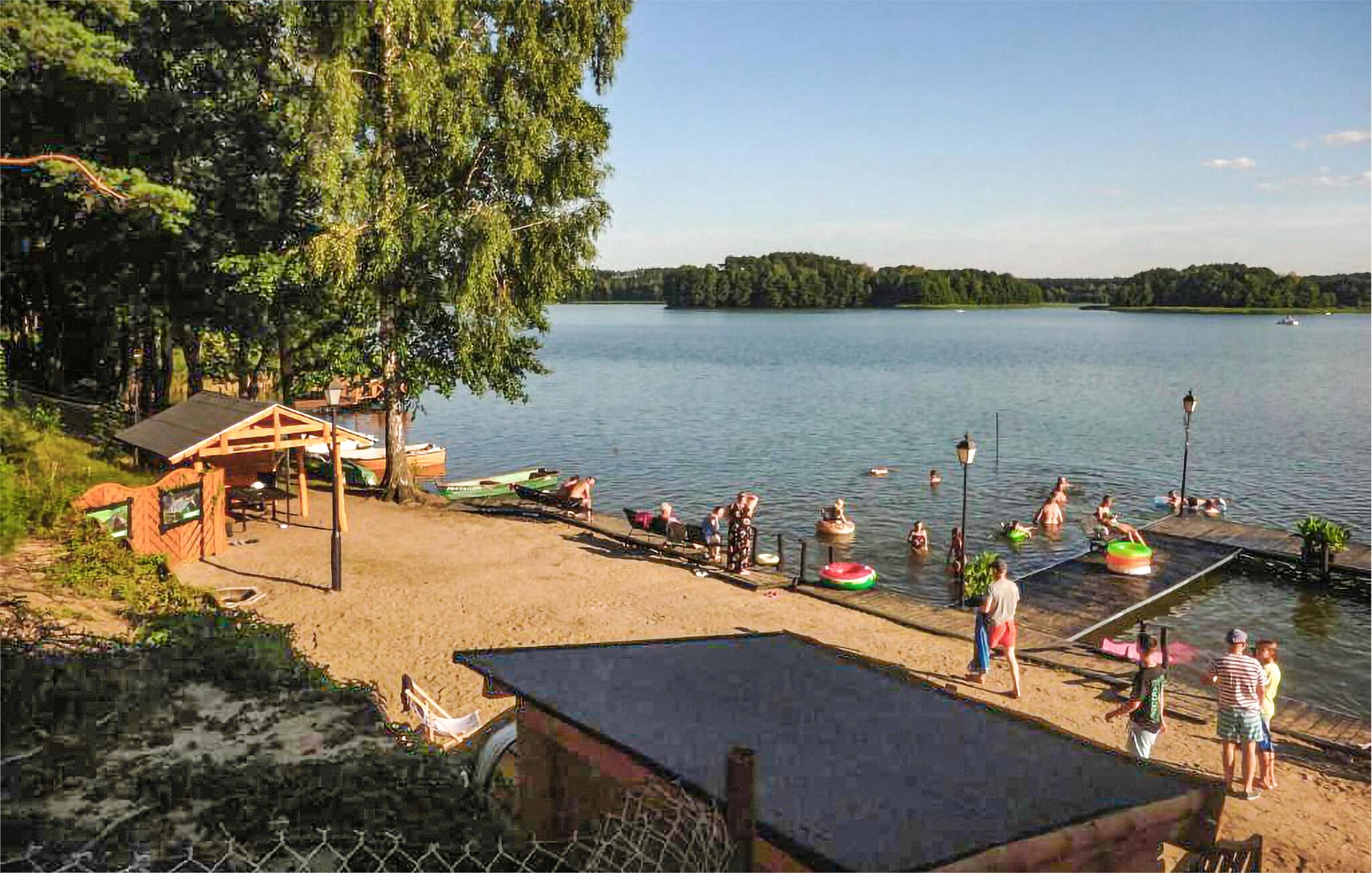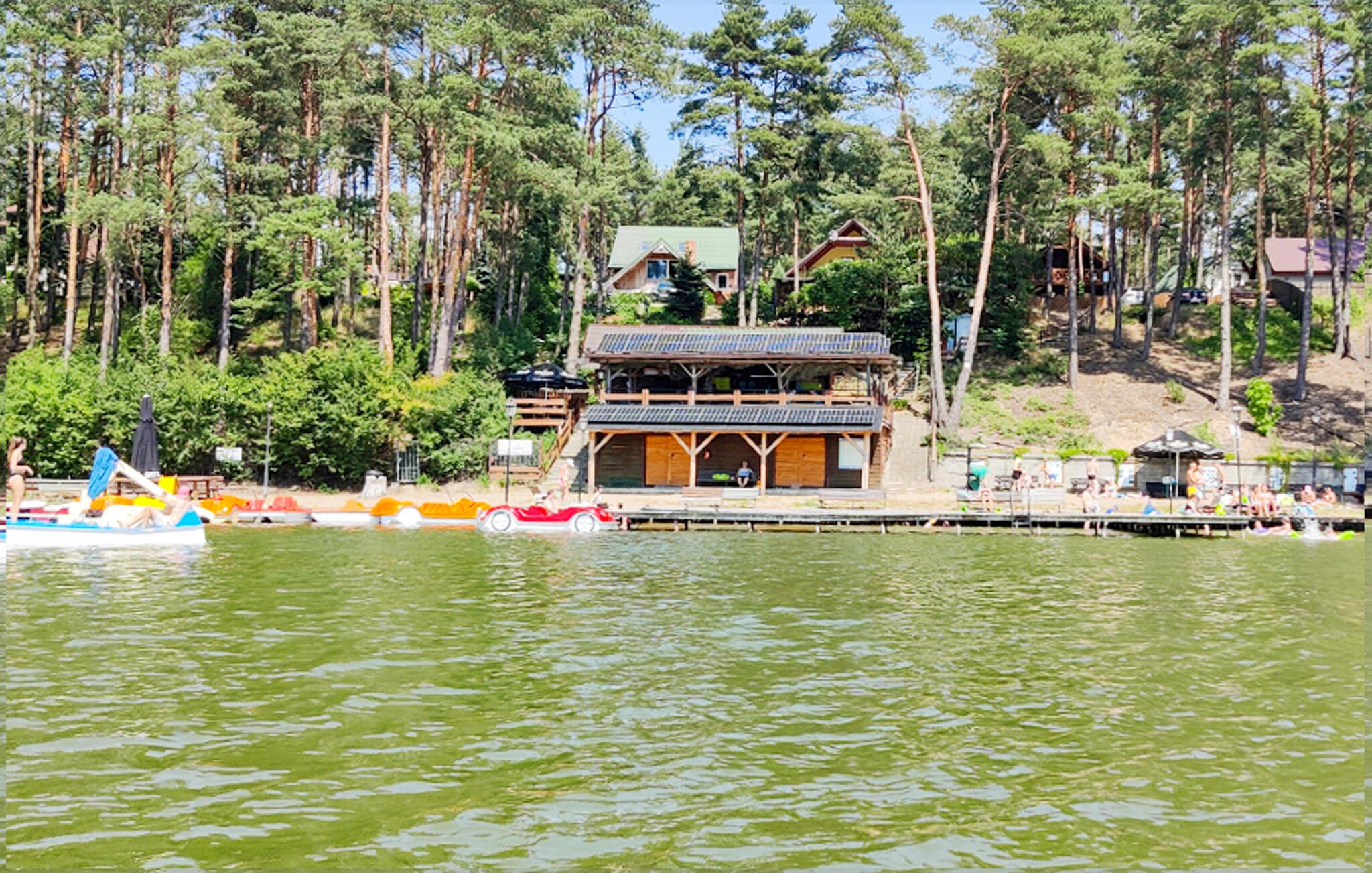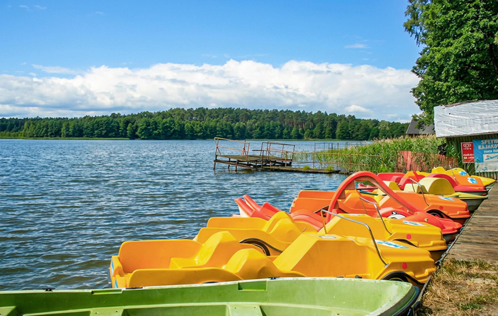 Tilbring masser af tid udendørs og nyd det rummelige fælles strandområde ved Ocypel-søen. Læn jer tilbage i den overdækkede terrasse med havemøbler eller tilbered et måltid sammen på grillen. Om aftenen kan I tænde et bål ved bålstedet og lade dagen forsvinde blidt. Lad børnene lege i legehuset og med det andet legeredskab. Gå til badebroen, og hop direkte i det klare vand. Lej et SUP-board, kano eller motorbåd, og udforsk søen fra vandet.