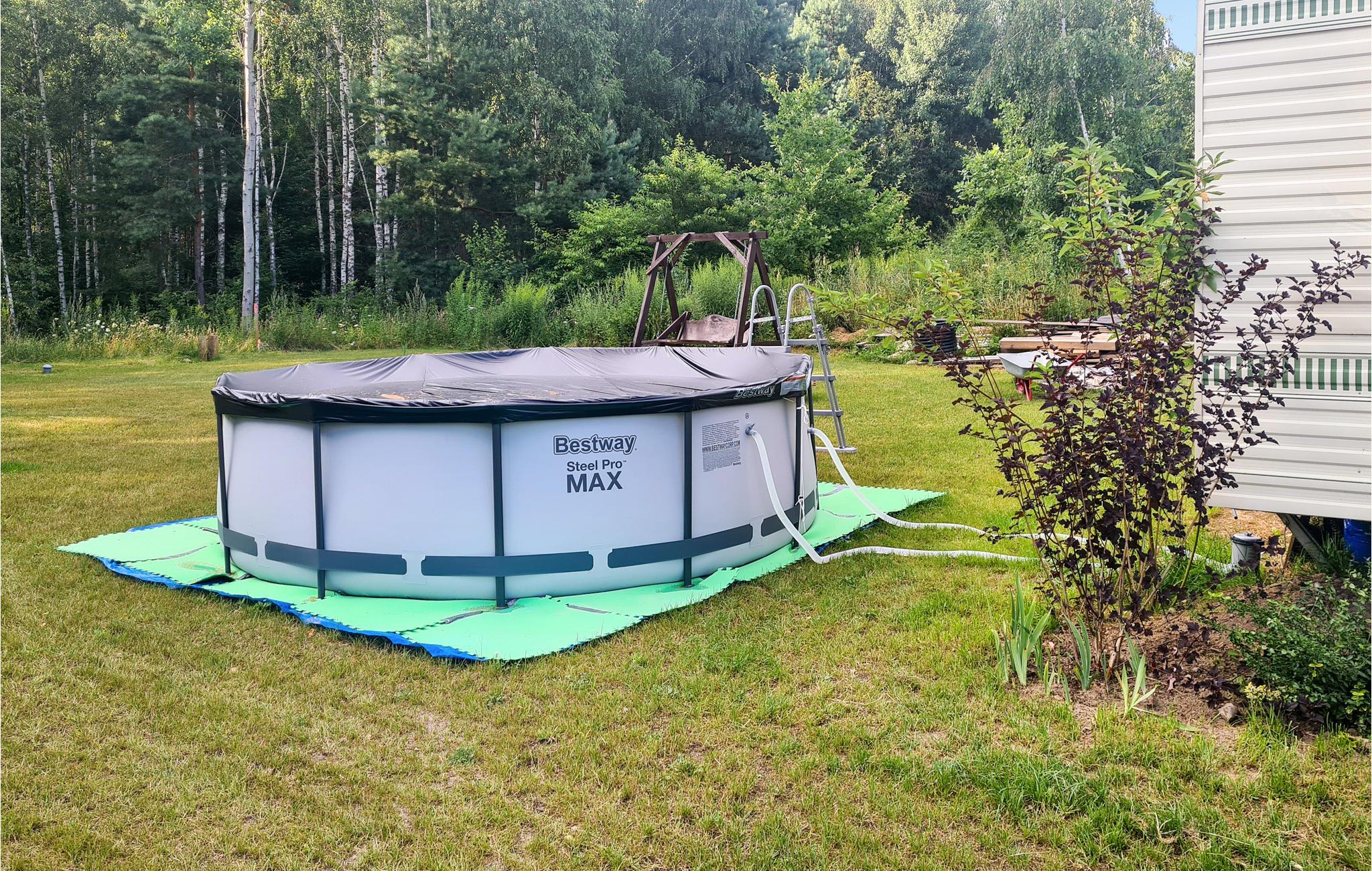 Træd udenfor og brug den overdækkede terrasse til rolige timer. Tænd grillen og tilbring aftenen med familien. Lad børnene boltre sig på naturgrunden eller læn jer tilbage på havemøblerne og nyd udsigten. Brug den overjordiske pool eller Læn jer tilbage i en af ??liggestolene. Spil fodbold eller badminton og tilbring dagen i jeres eget tempo.