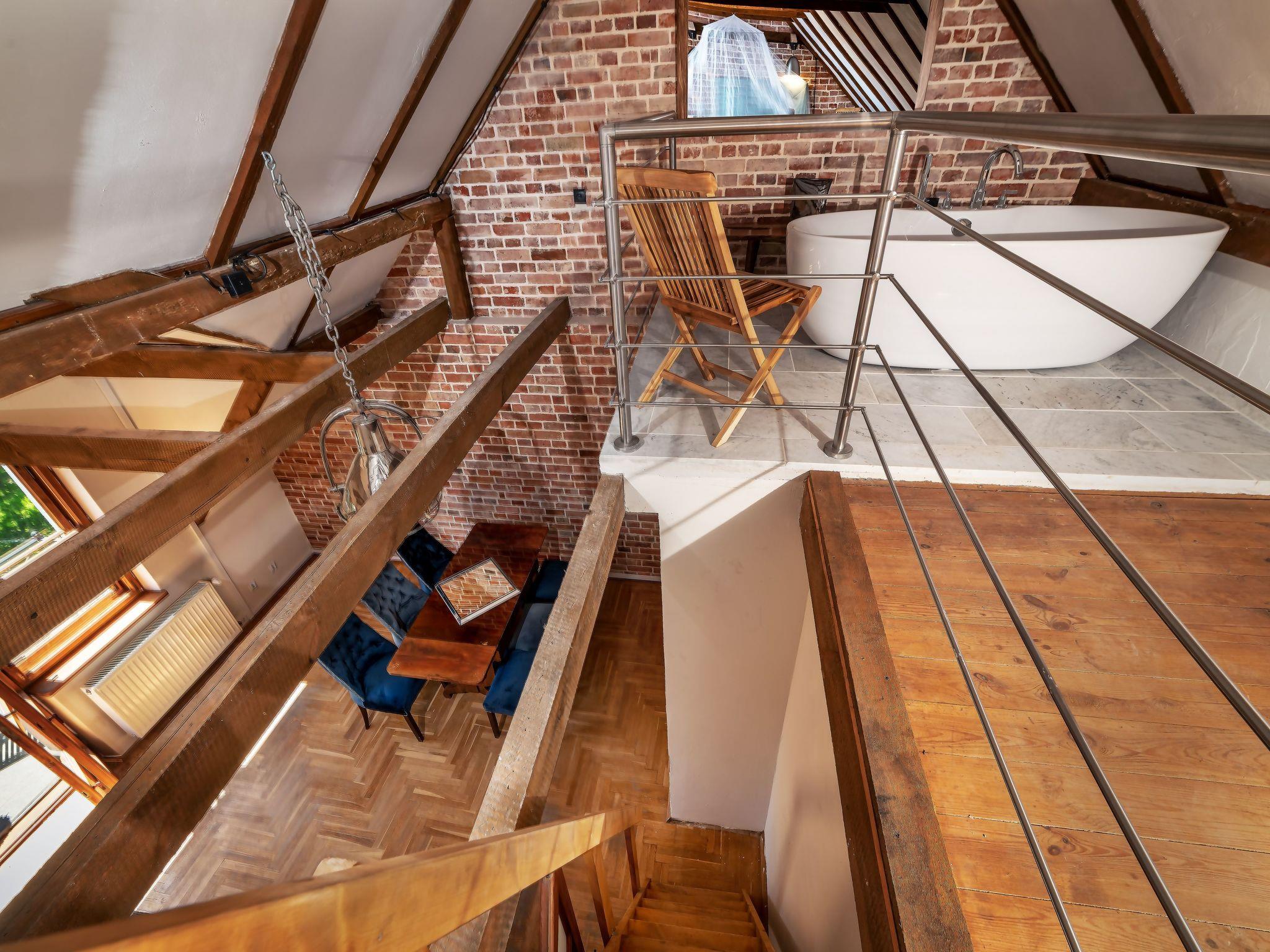 In our cosy flat you will find two independent bedrooms providing comfortable rest for six people. The living room with an additional bedroom space on the mezzanine floor and a unique free-standing bath guarantees unique moments of relaxation after an eventful day. Our interiors have been thoughtfully designed and equipped to ensure maximum comfort and functionality during your stay.