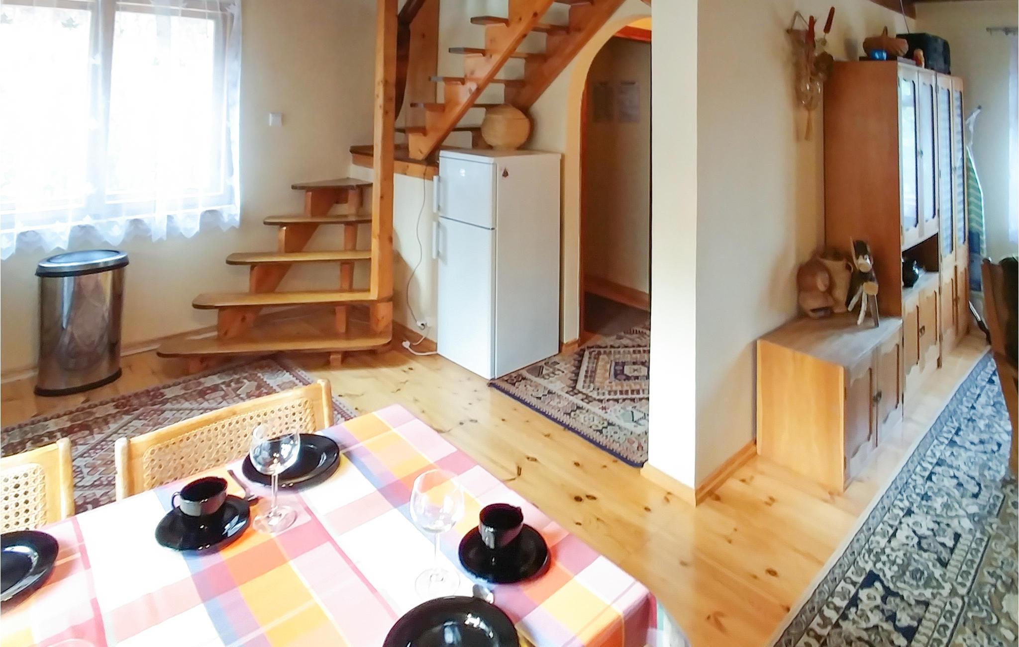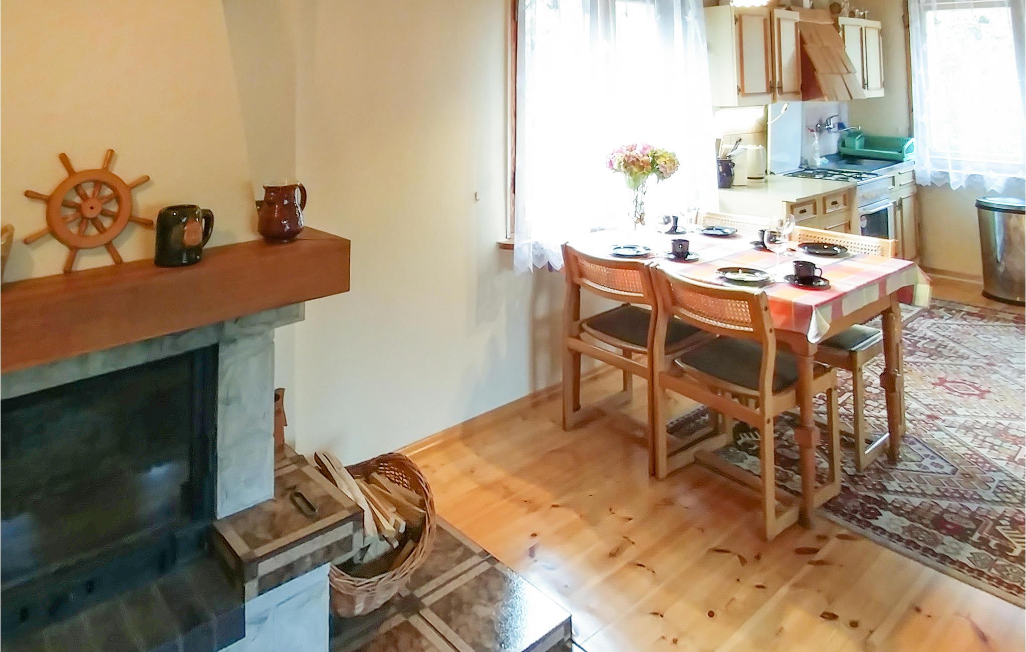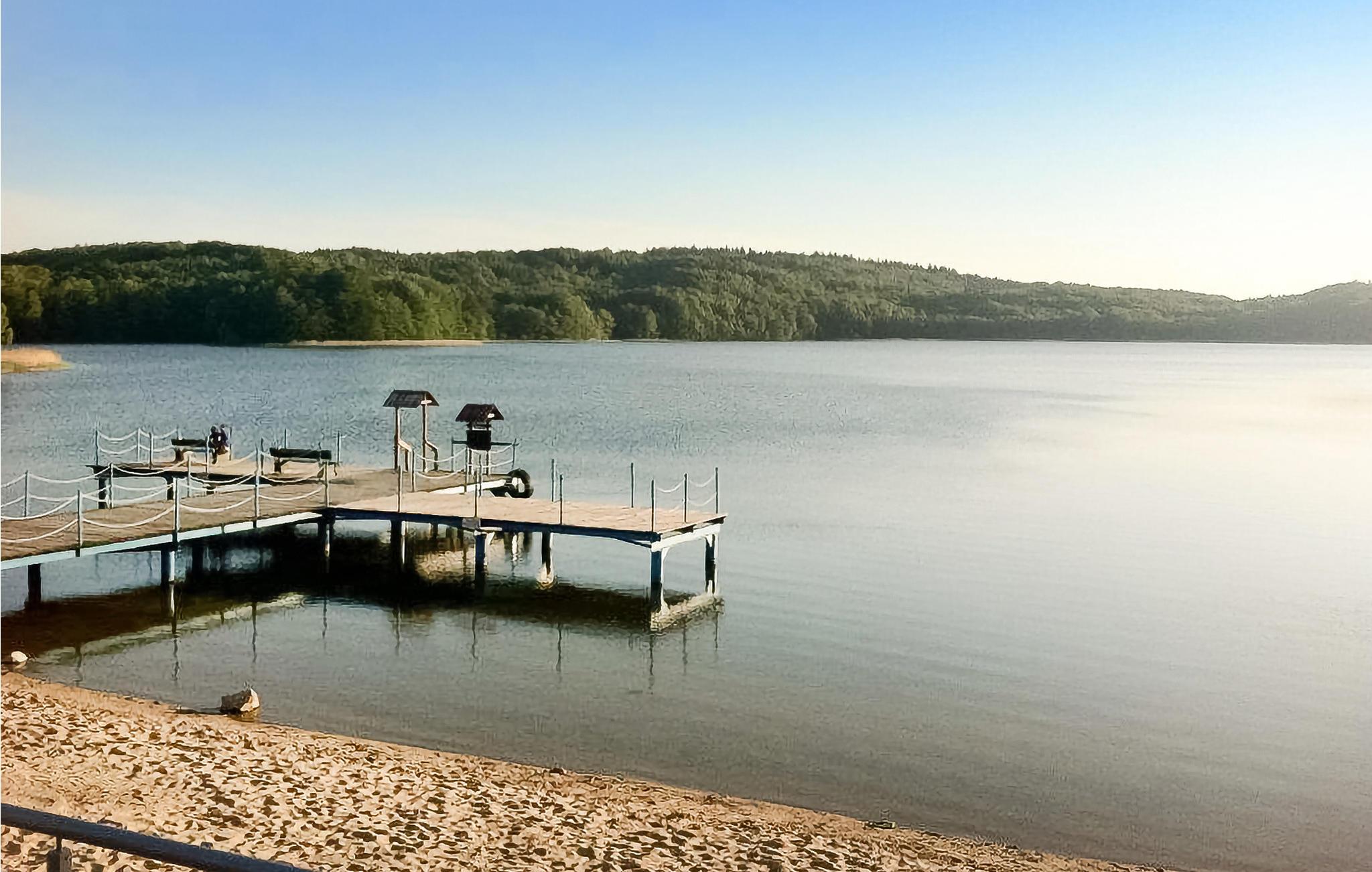 Ejendommen ligger kun 500 m fra søen, og ejendommen ligger på en grund i hjertet af Kashubia. Feriehuset er velegnet til familier med børn, der ønsker at opleve en afslappende ferie. Inde i det indbydende hus finder du en stue med tekøkken, to soveværelser og et badeværelse. I stuen kan du tilbringe afslappende aftener foran pejsen og nyde varmen.