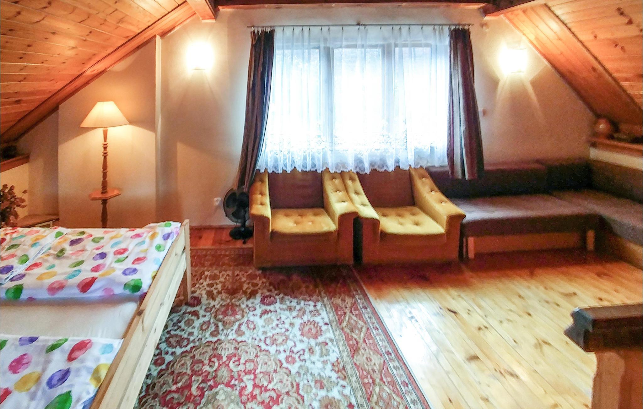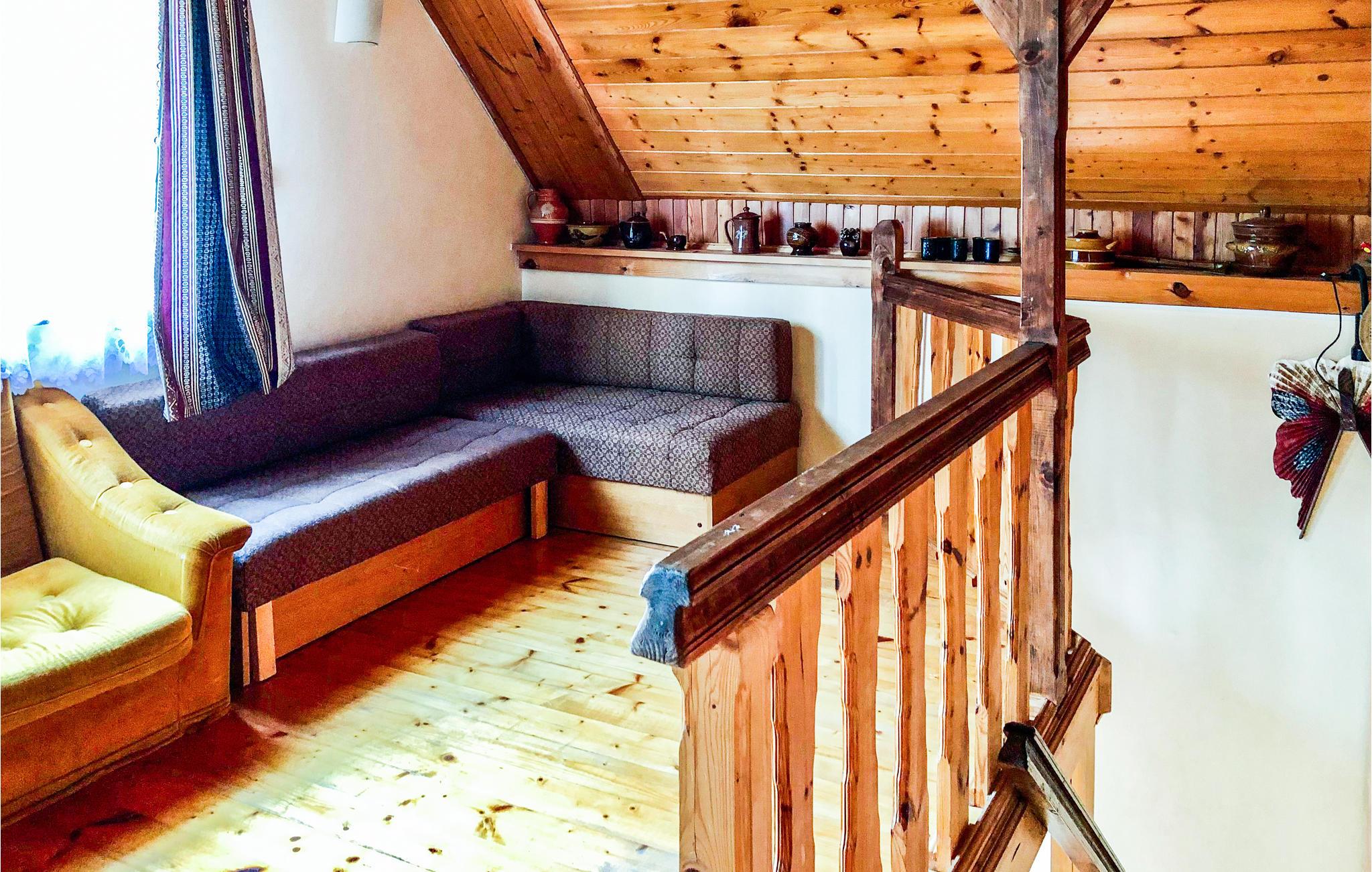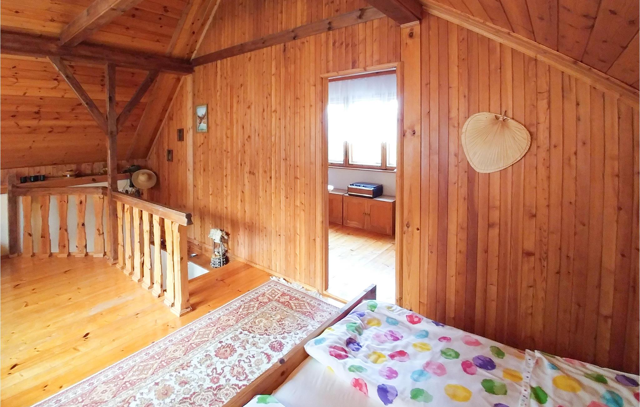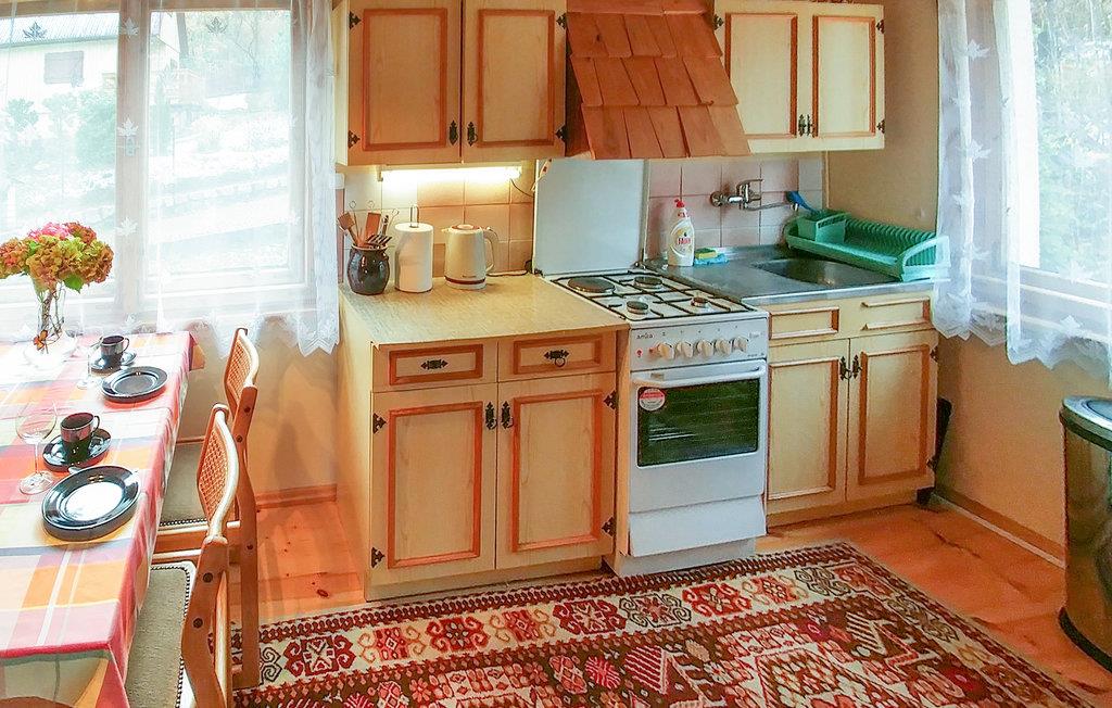 Ejendommen ligger kun 500 m fra søen, og ejendommen ligger på en grund i hjertet af Kashubia. Feriehuset er velegnet til familier med børn, der ønsker at opleve en afslappende ferie. Inde i det indbydende hus finder du en stue med tekøkken, to soveværelser og et badeværelse. I stuen kan du tilbringe afslappende aftener foran pejsen og nyde varmen.