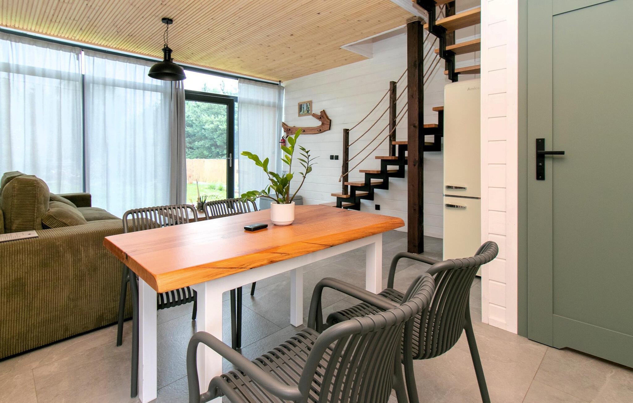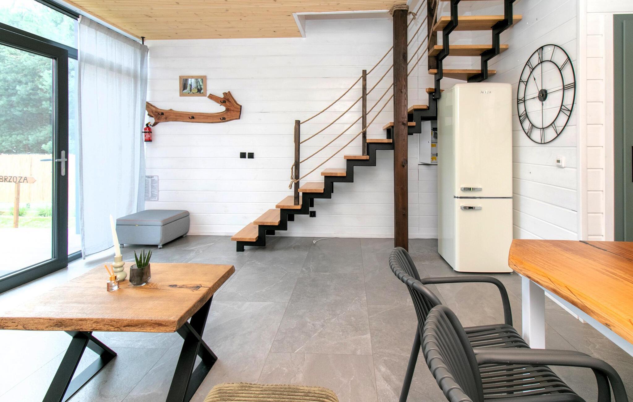Tilbring en afslappende pause i dette stilfulde feriehus, som med sin moderne arkitektur og idylliske omgivelser sikrer en ideel kombination af komfort og natur. Den lyse opholdsstue har hyggelig indretning, store vinduesfronter og et åbent rumdesign. Find jer godt til rette i den komfortable sofa eller nyd måltider sammen ved det stilfulde spisebord. I det øverste område af huset kan I trække jer tilbage og nyde udsigten over den omkringliggende natur.
