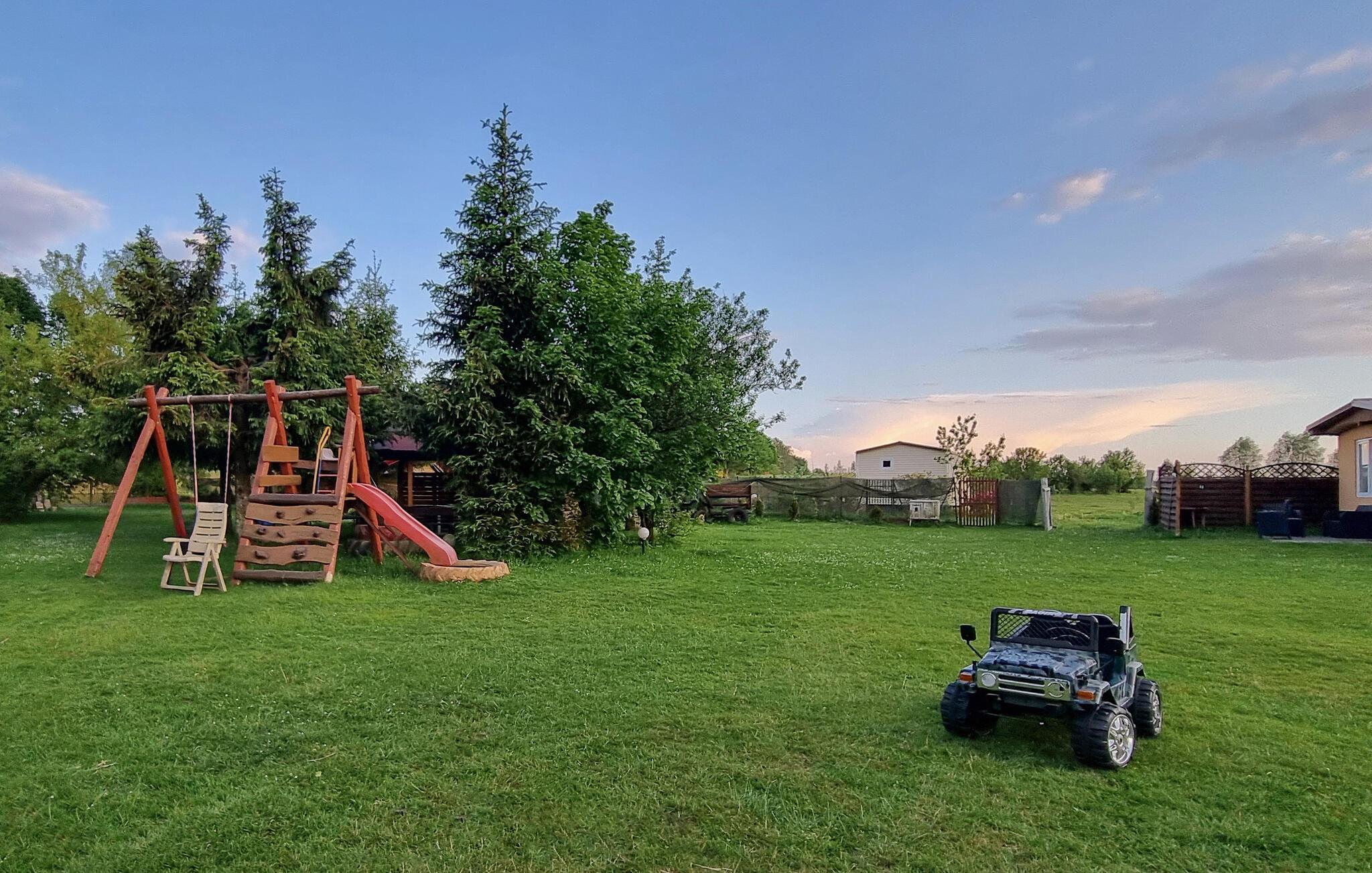 I jeres feriehus i Rekowo tilbringer I en ferie fuld af fred, afslapning og smukke naturoplevelser. Huset ligger i et rummeligt, grønt kompleks og byder på utallige muligheder for at nyde den friske luft og omgivelserne. Begynd jeres dage med en spadseretur gennem den velholdte have og lad jer fortrylle af den fredelige atmosfære. Brug den fælles pool til at køle af og slap af med en kop kaffe på den komfortable bænk foran jeres hus, mens jeres børn leger på legepladsen eller hopper på trampolinen.