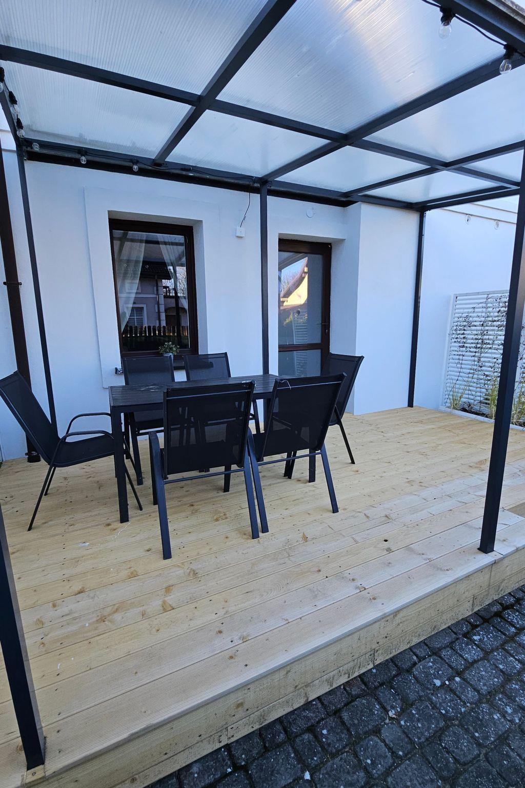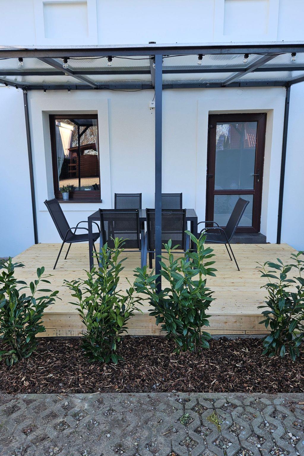 Each cottage has its own terrace equipped with garden furniture and a sunshade. The area where our complex is located is fenced, which guarantees security and privacy, making this place ideal for family holidays with children.