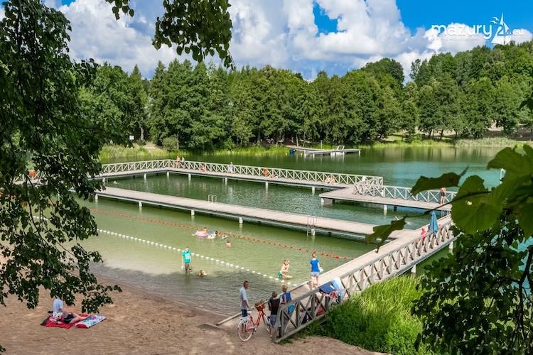Dette intime feriested ligger direkte ved bredden af Olów-søen i et attraktivt sommerferiested i Ryn, Masurien. Resortets grund er indhegnet og grænser op til en stor, bevogtet strand med attraktive, offentligt tilgængelige legepladser, fitnessudstyr og grillpavilloner. Denne enkle, men komfortable og praktisk indrettede træferiebungalow (i ét plan) består af en stue, der også fungerer som soveværelse, et køkken og et badeværelse med bruser. Der er også et havepavillon med havemøbler og grillfaciliteter. Liggestole er til rådighed. Trådløst internet er tilgængeligt. Resortet har en legeplads, sikker parkering og udlejning af vandsportsudstyr (robåde, kajakker, vandcykler og stand-up paddleboards - mod et ekstra gebyr). Der er også en lille bar drevet af værten, hvor du kan bestille hjemmelavede måltider (især lokale fiskeretter), snacks og drikkevarer. Prisen inkluderer: sengelinned, elektricitet, vand, gas, parkering, internet, slutrengøring og hunde er velkomne (maks. 2). Resortet ligger ved siden af et storslået middelalderslot, som nu huser et hotel med spa-område (en stor swimmingpool, saunakompleks og spabehandlinger – mod et ekstra gebyr). Der er også en bowlingbane, billardrum, tennisbane, cykeludlejning, fitnessrum, natklub og en elegant restaurant. Ryn ligger på en landtange mellem to søer. Olów-søen er primært værdsat af svømme- og fiskeentusiaster. Rynskie-søen er meget større og omgivet af lystbådehavne, hvor man kan leje vandsportsudstyr, herunder yachter. Begge søer er omgivet af en vandre- og cykelsti. Der tilbydes også bådture.