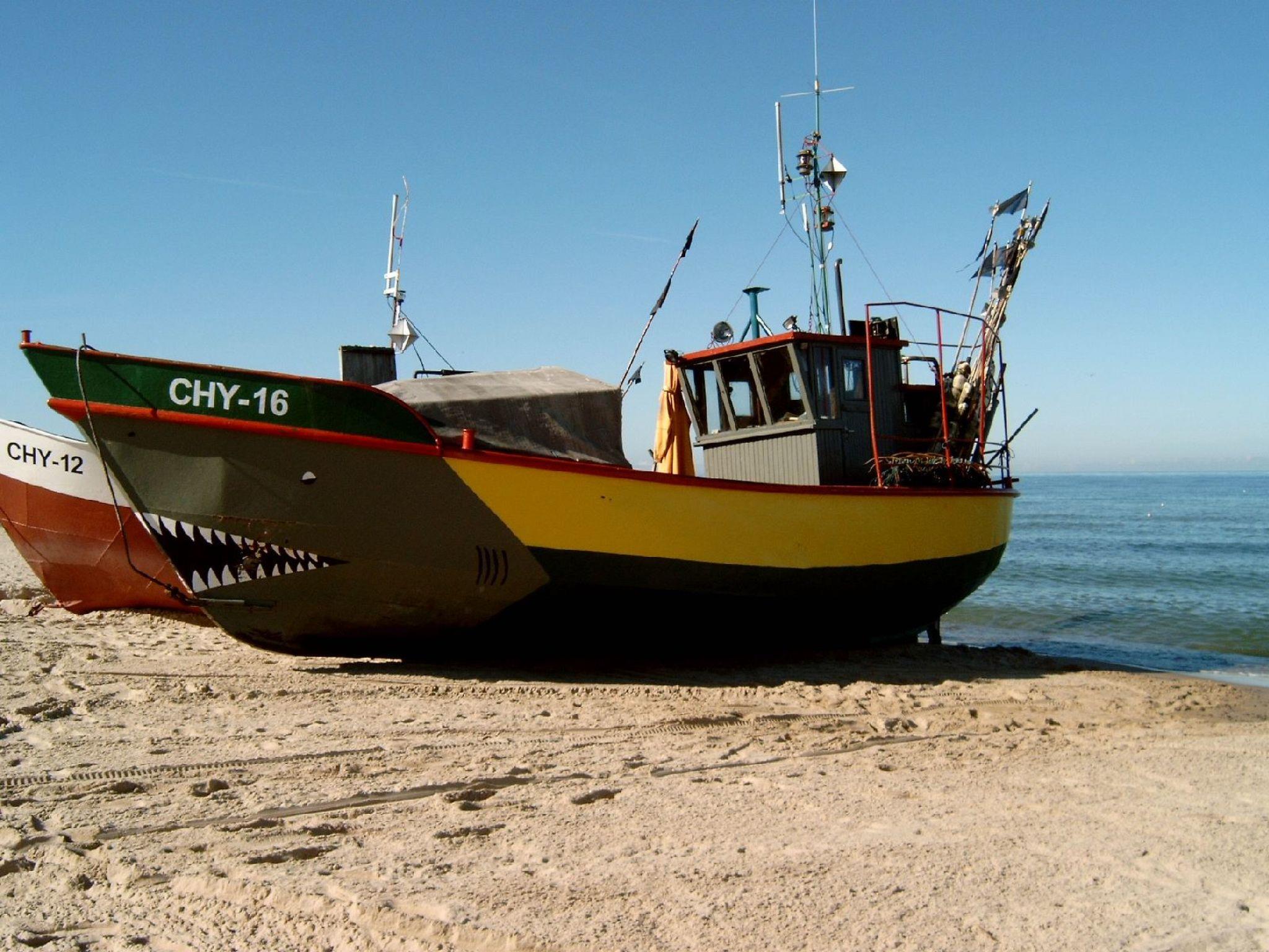 This holiday home is located directly by the sea in one of the most beautiful Pomeranian health resorts: Sarbinowo. The house is located on a large fenced garden plot directly on the beach. The wide, clean sandy beach lies directly behind the garden fence, but currently without direct, private access.comfortable wooden house - enjoy the proximity to the sandy beach for beach walks, water sports and relaxation for the whole family