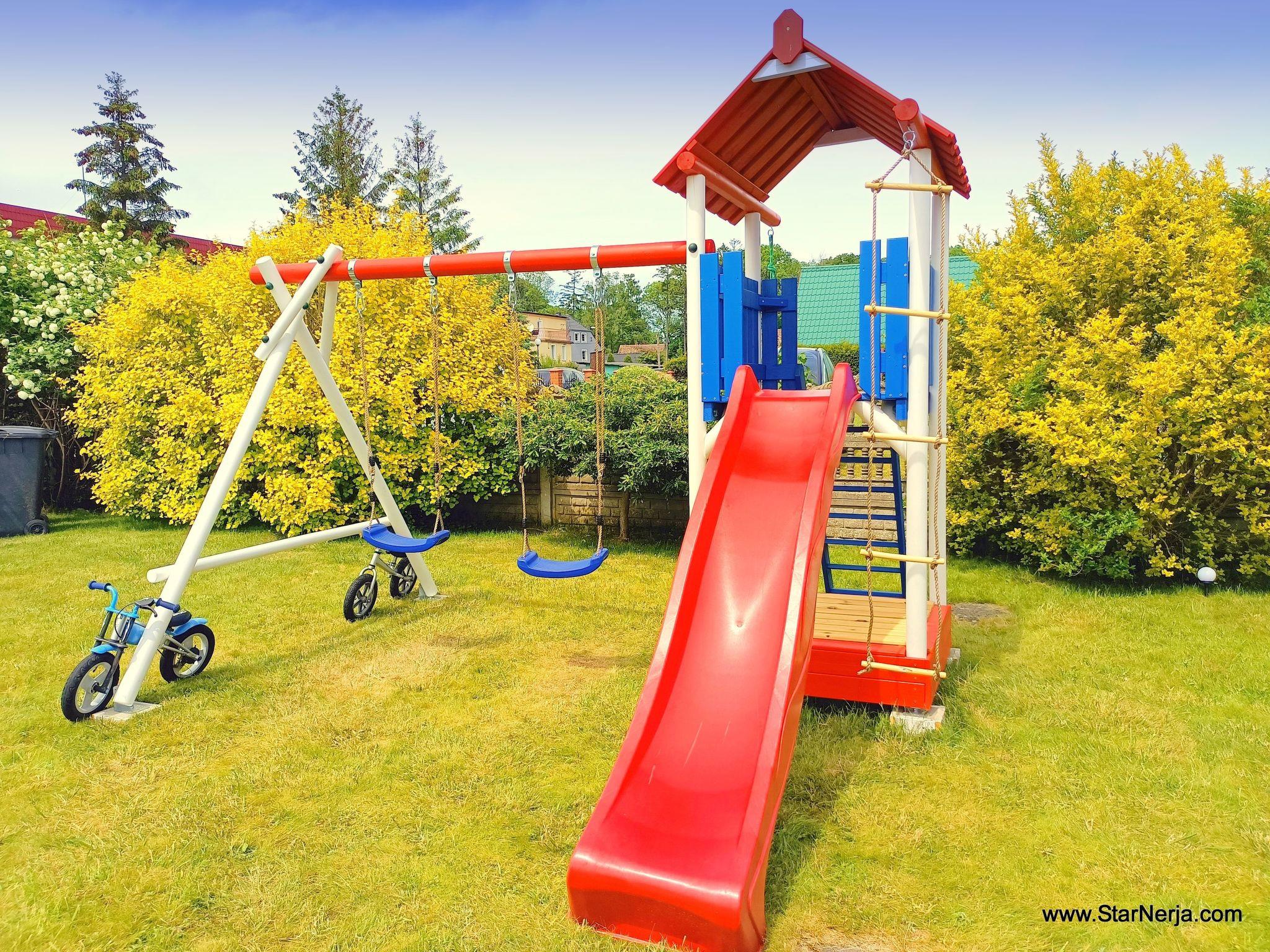 The whole area of the property is fenced (the gate is locked at night). There is a playground with certified equipment.