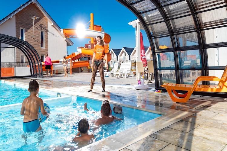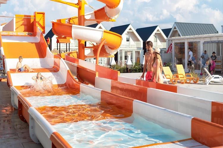 Dette familieferiecenter i Sarbinowo tilbyder højkvalitets, to-etagers huse i et sikkert, indhegnet område kun 350 m fra stranden. Hvert hus har en stue med tv, dobbelt sovesofa, spisebord, køkken, badeværelse med bruser og to soveværelser på første sal (det ene med balkon). Overdækkede terrasser med havemøbler, elvarme og WiFi fuldender indkvarteringen. Ferieanlægget har et vandland (01.06–14.09) med pool, to rutsjebaner og spabad, samt legepladser, legerum, sportsbaner, grillområder, snackbar og sikker parkering. Fra 08.06–06.09 kan børnene nyde et heldags underholdningsprogram. Sengelinned, vand, internet, adgang til vandattraktionerne og parkering er inkluderet; barneseng, højstol og badekar kan fås på anmodning. Sarbinowo er en charmerende sommerby på vestkysten med rene, brede strande, der er perfekte til familieudflugter. Nærliggende attraktioner omfatter fiskerimuseet i Chlopy, Pomerania Fun Park og den internationale cykelrute R-10 rundt om Østersøen.