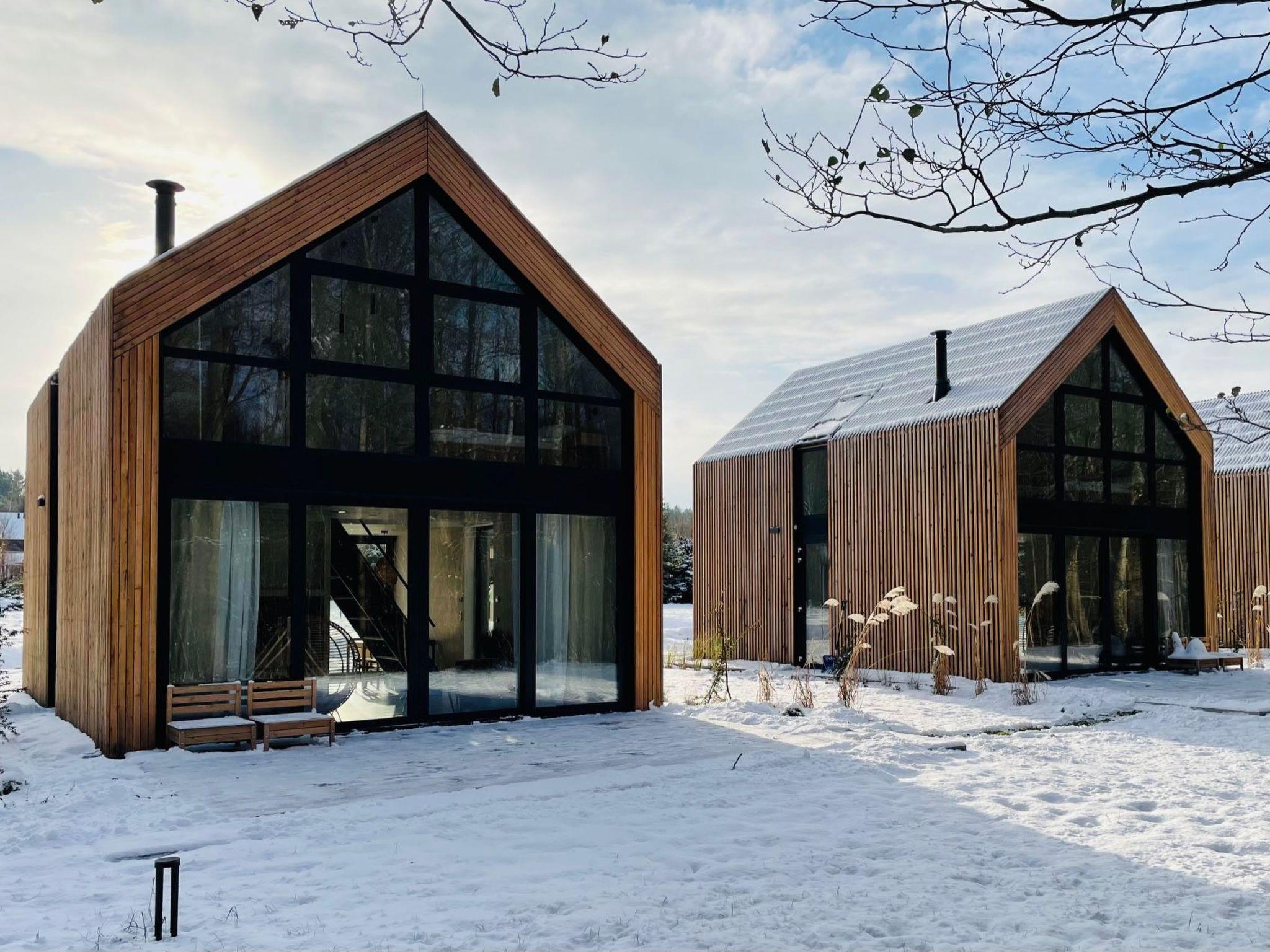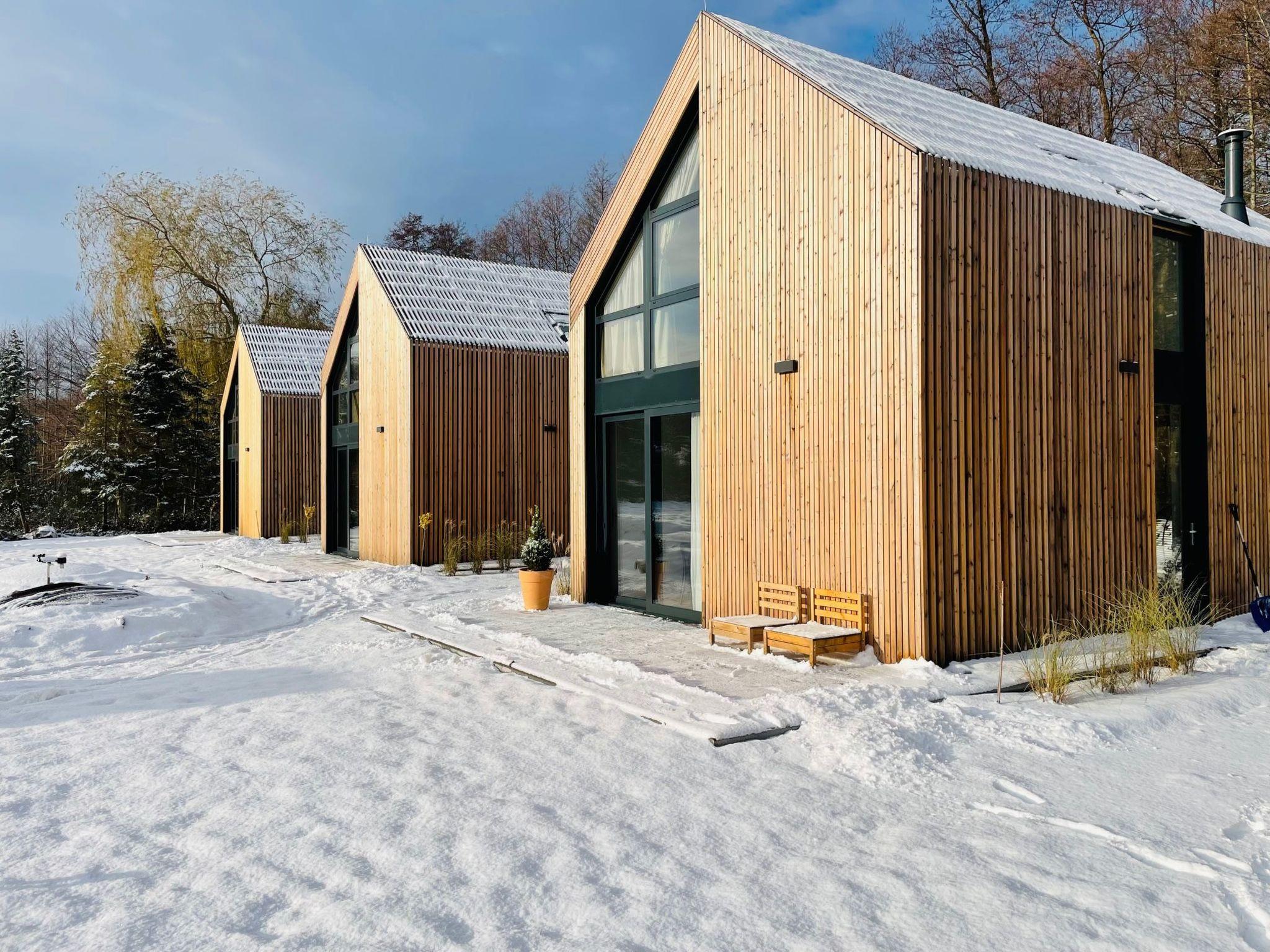 Our offer includes 4 intimately situated luxury houses, made of the highest quality natural materials, in timber frame construction, with panoramic aluminium windows overlooking the forest wall and the stream. The settlement is located just 2.5 km from the most beautiful sandy beach on the Baltic Sea.