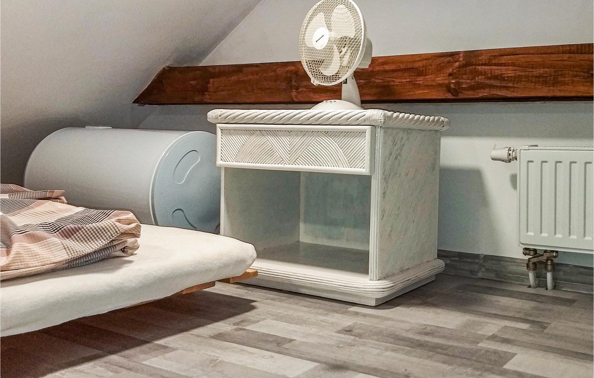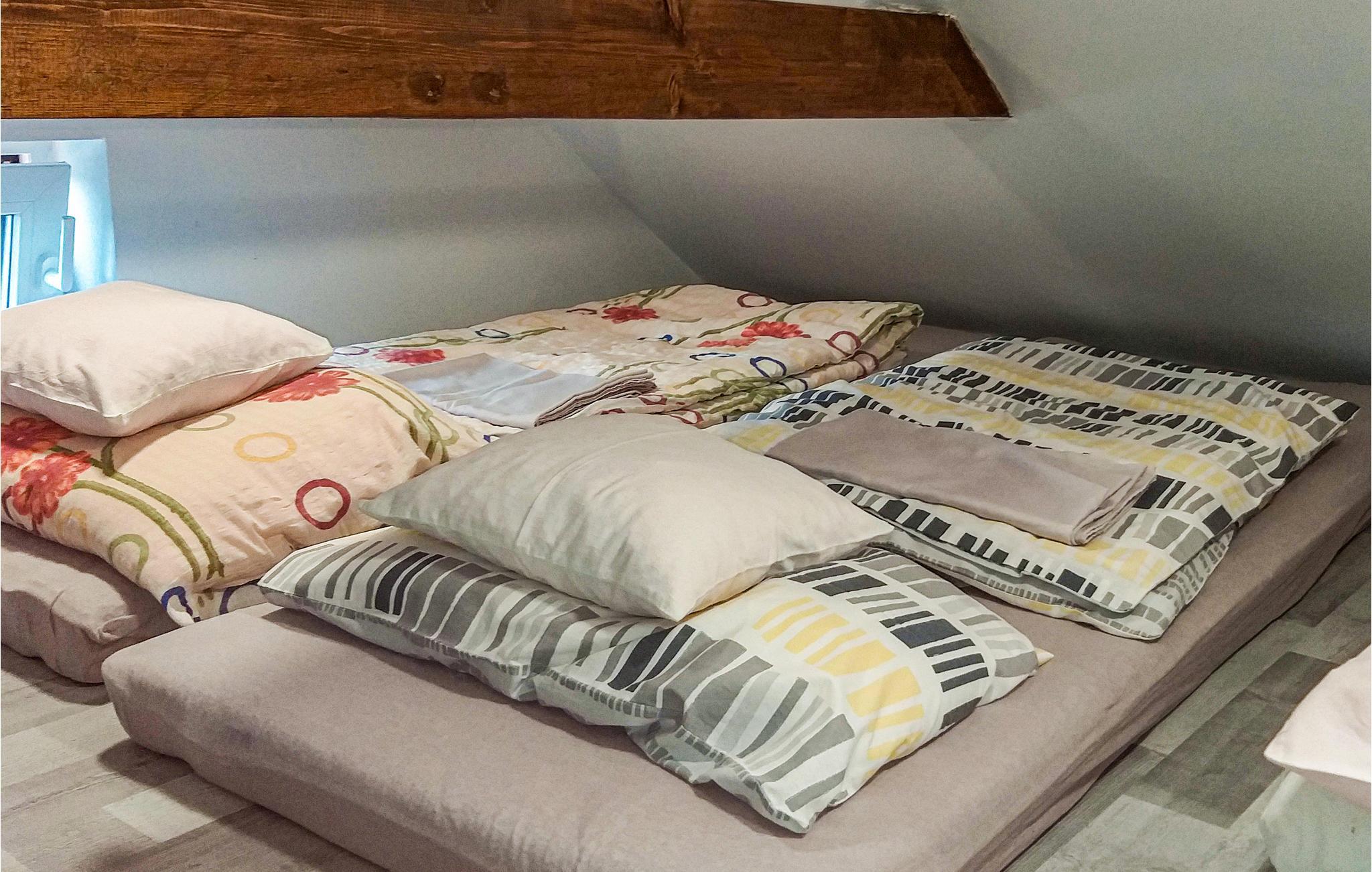 Huset ligger på samme grund som ejerens hus. I området er der også en sø og en skov - ideel til naturelskere. Indkvarteringen består af køkken, stue, badeværelse og mezzanin. Dette komfortabelt møblerede feriehus er ideelt til 5 personer.