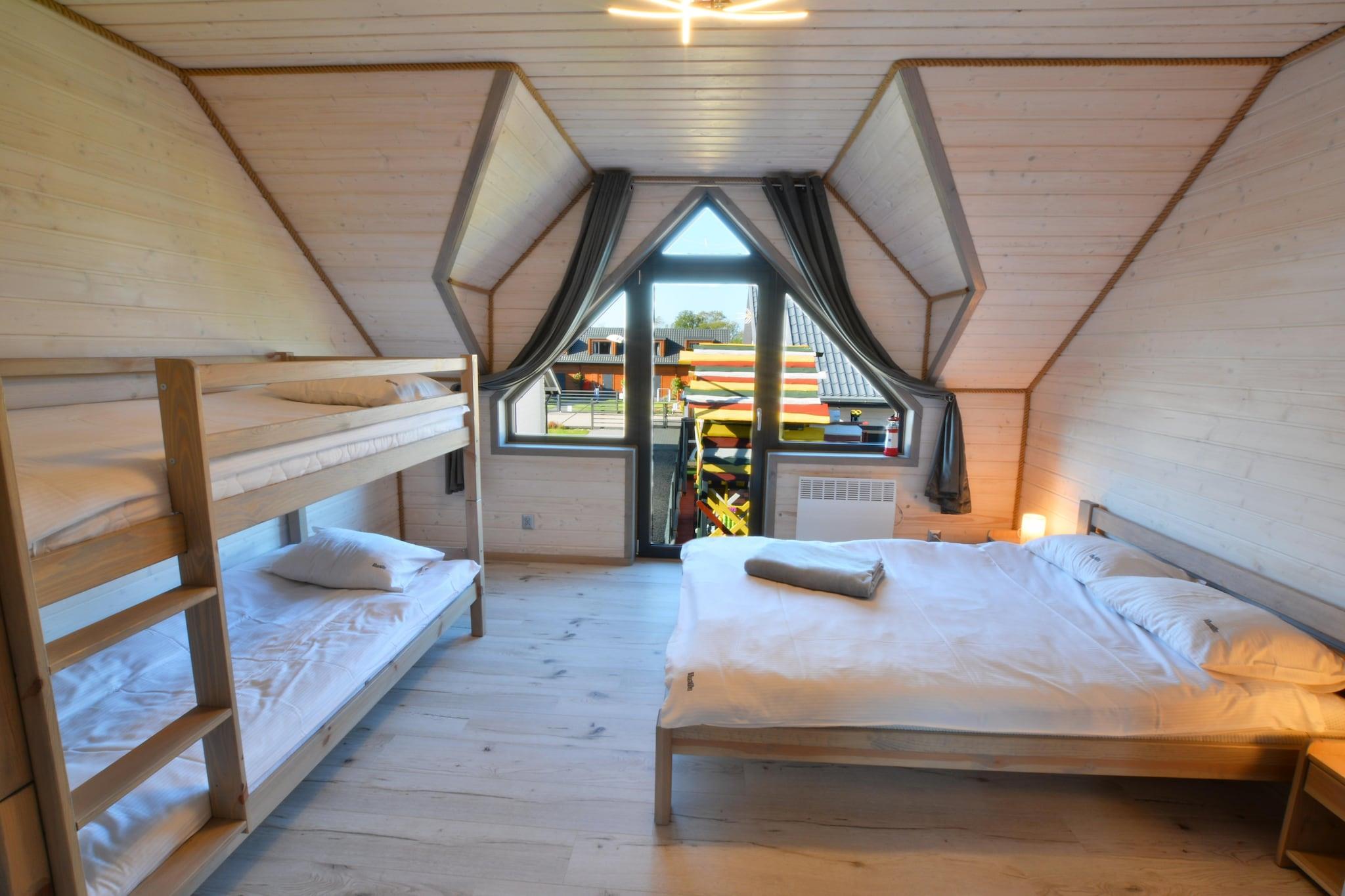 Stueetage: (åbent køkken(kogeplade(Komfur med to kogeplader, induktion), elkedel, brødrister, kaffemaskine, mikrobølgeovn, opvaskemaskine , køle-fryseskab, vaskemaskine), stue / spisestue(dobbeltsovesofa, Fjernsyn(fladskærm, parabol, Tyske TV-kanaler), spisebord(6 personer)), badeværelse(bruser, håndvask, toilet, føntørrer)) På 1. etage: (soveværelse(dobbeltseng, køjeseng), soveværelse(dobbeltseng, køjeseng)) Reception, Internetadgang, Parkering, Bordfodbold, Bordtennis, Cykeludlejning, Bordtennis, Indendørs legerum, Legeområde, Græsplæne, babybadekar, Bubble bath(udendørs, betalt), sauna(betalt, 4 personer), varme(elektrisk, gennem aircondition), klimaanlæg, terrasse(overdækket), have(deles med andre gæster, indhegnet, 1000 m2), havemøbler, solstole, grill(trækul), trampolin(deles med andre gæster), sandkasse(deles med andre gæster), legeredskaber(deles med andre gæster), rutsjebane(deles med andre gæster), cykler til rådighed(betalt), barnestol, strygebræt, strygejern, legetøj, Solcreme, Gyngestativ, baby crib(free)