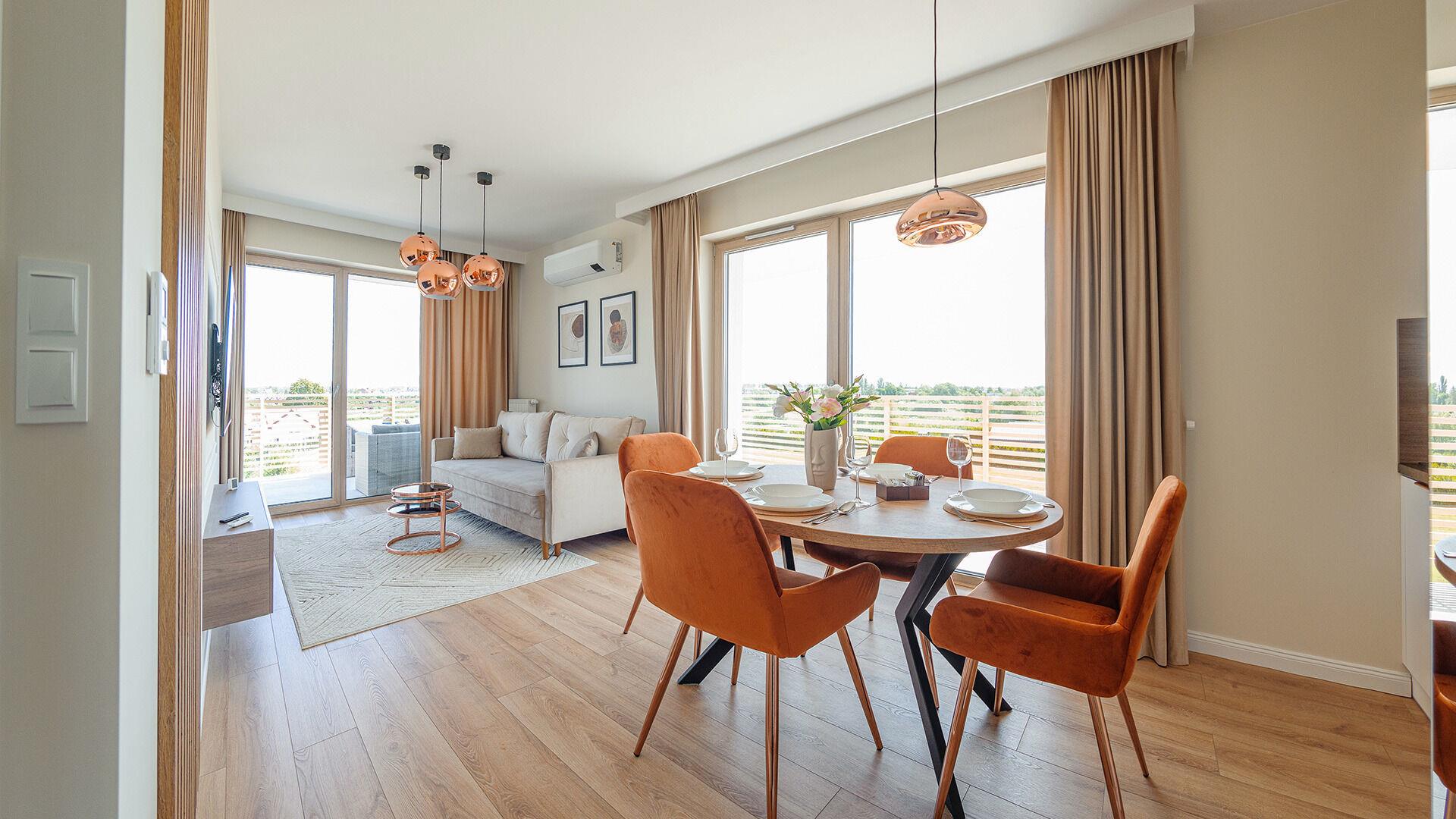 Zu den gewählten Apartments darf man mit dem Hund ankommen. Die zusätzlichen Kosten des Aufenthalts mit einem vierbeinigen Freund betragen 100 PLN (Einzelgebühr). Die Gäste, die den Aufenthalt mit dem Hund planen, bitten wir um eine frühere Kontaktaufnahme mit unserem Service im lokalen Büro.