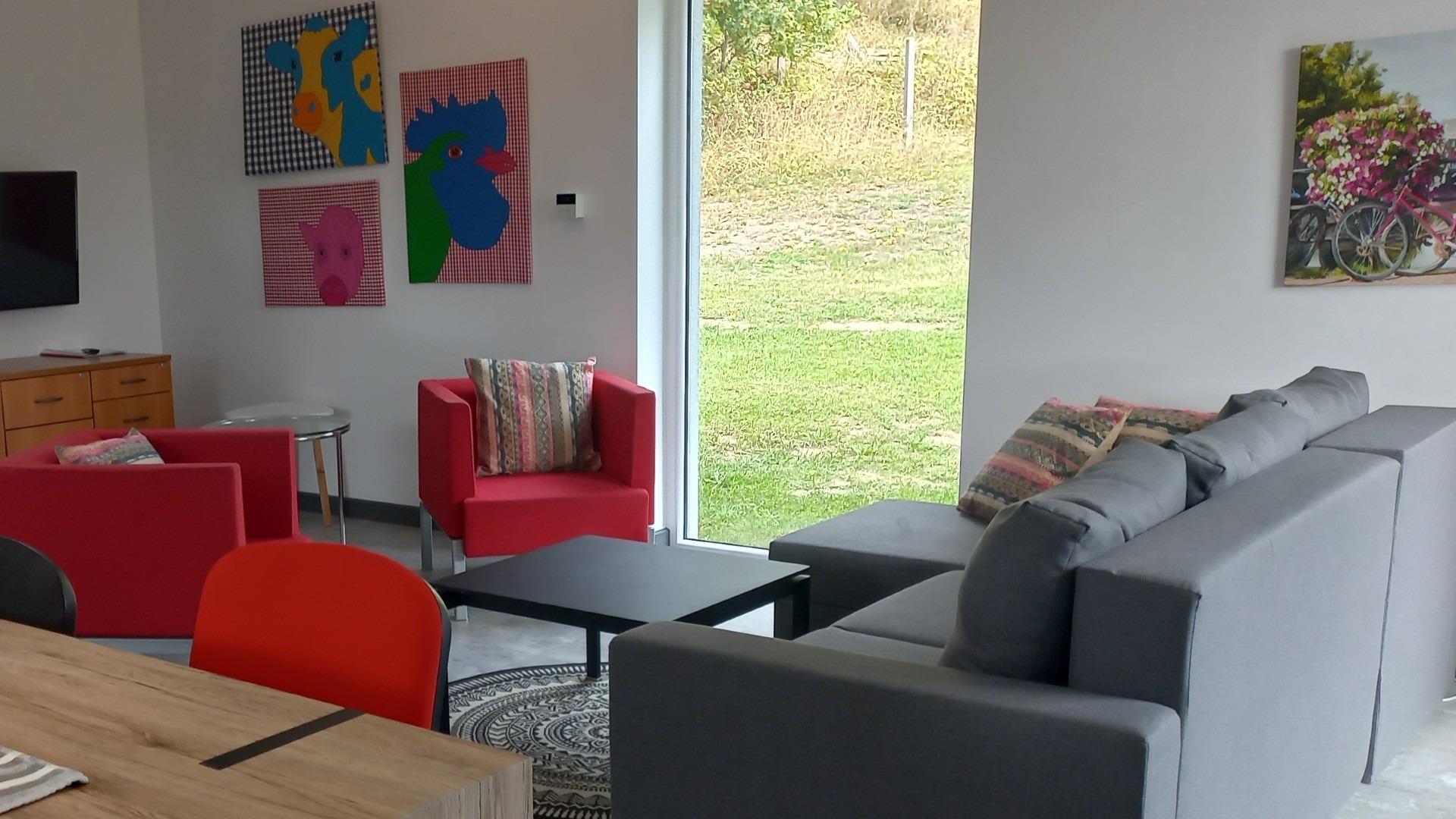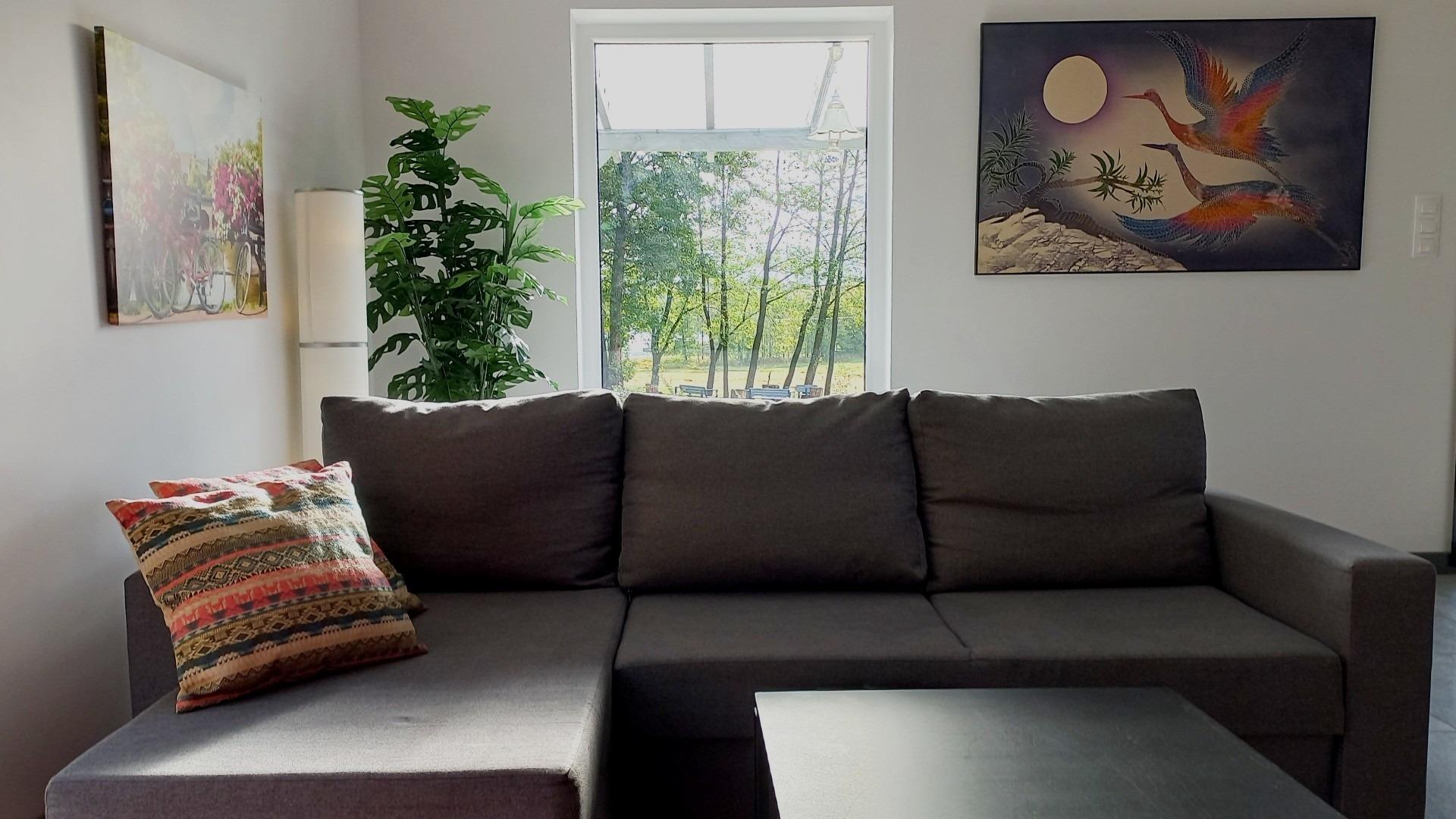 Das gemütliche Wohn- / Esszimmer (zusammen mit der offenen Küche 33 m2) verfügt über eine Sitzecke, Essecke und Flachbild-TV.