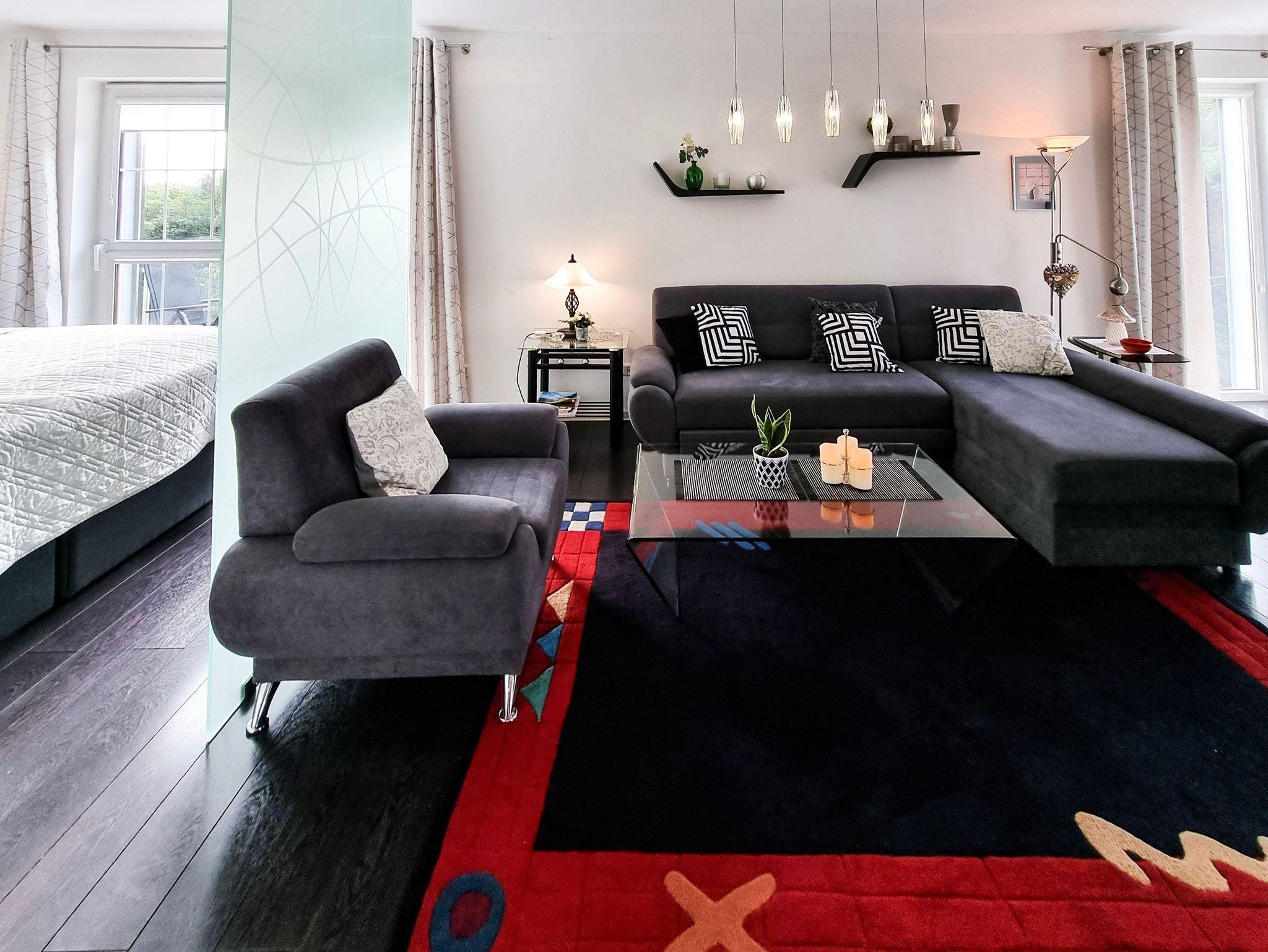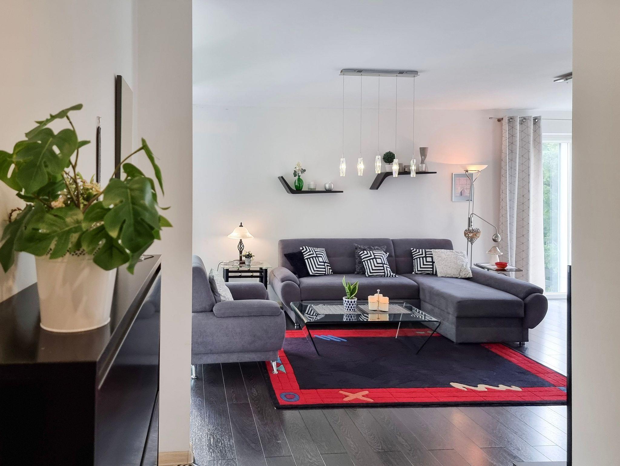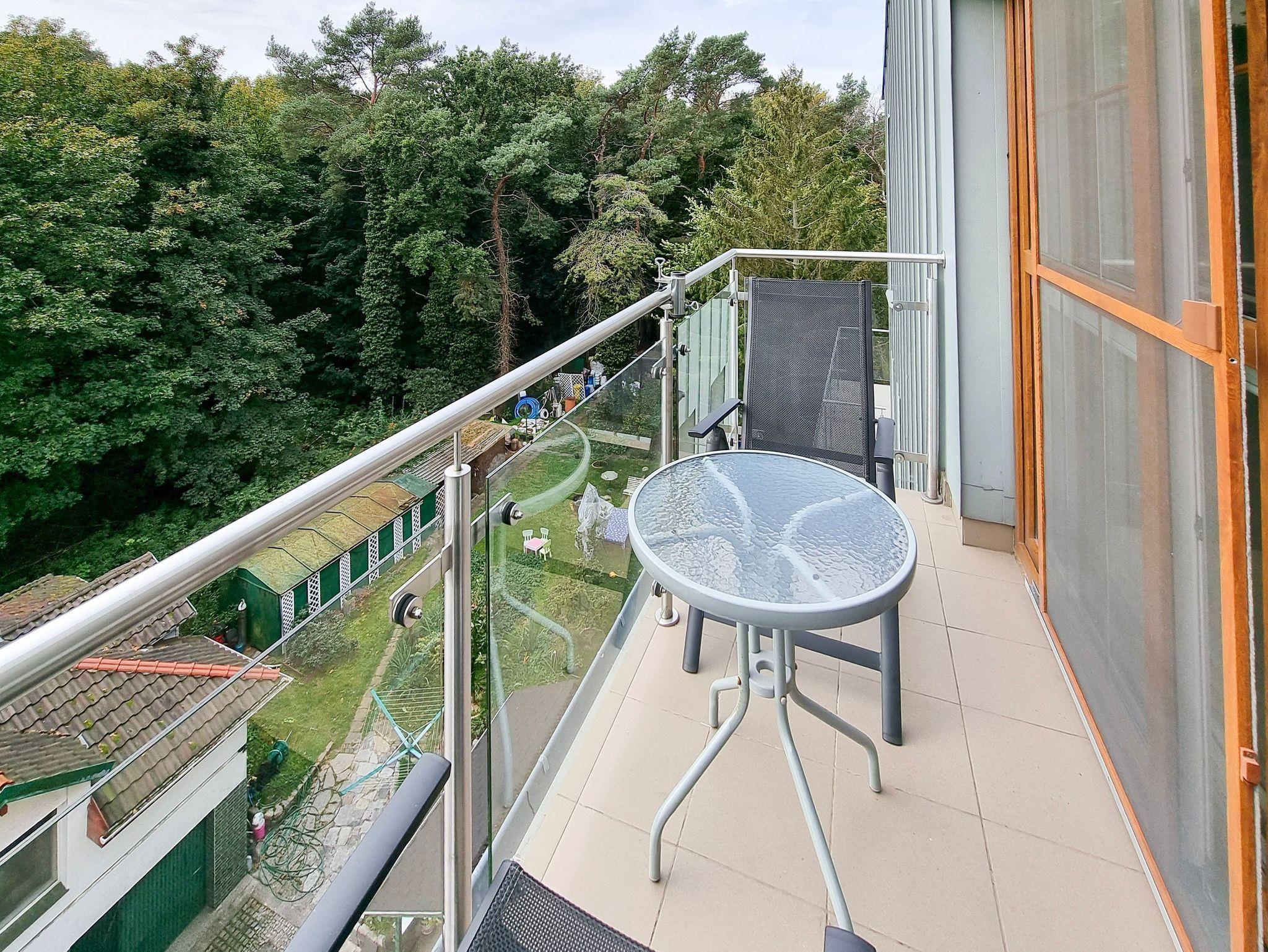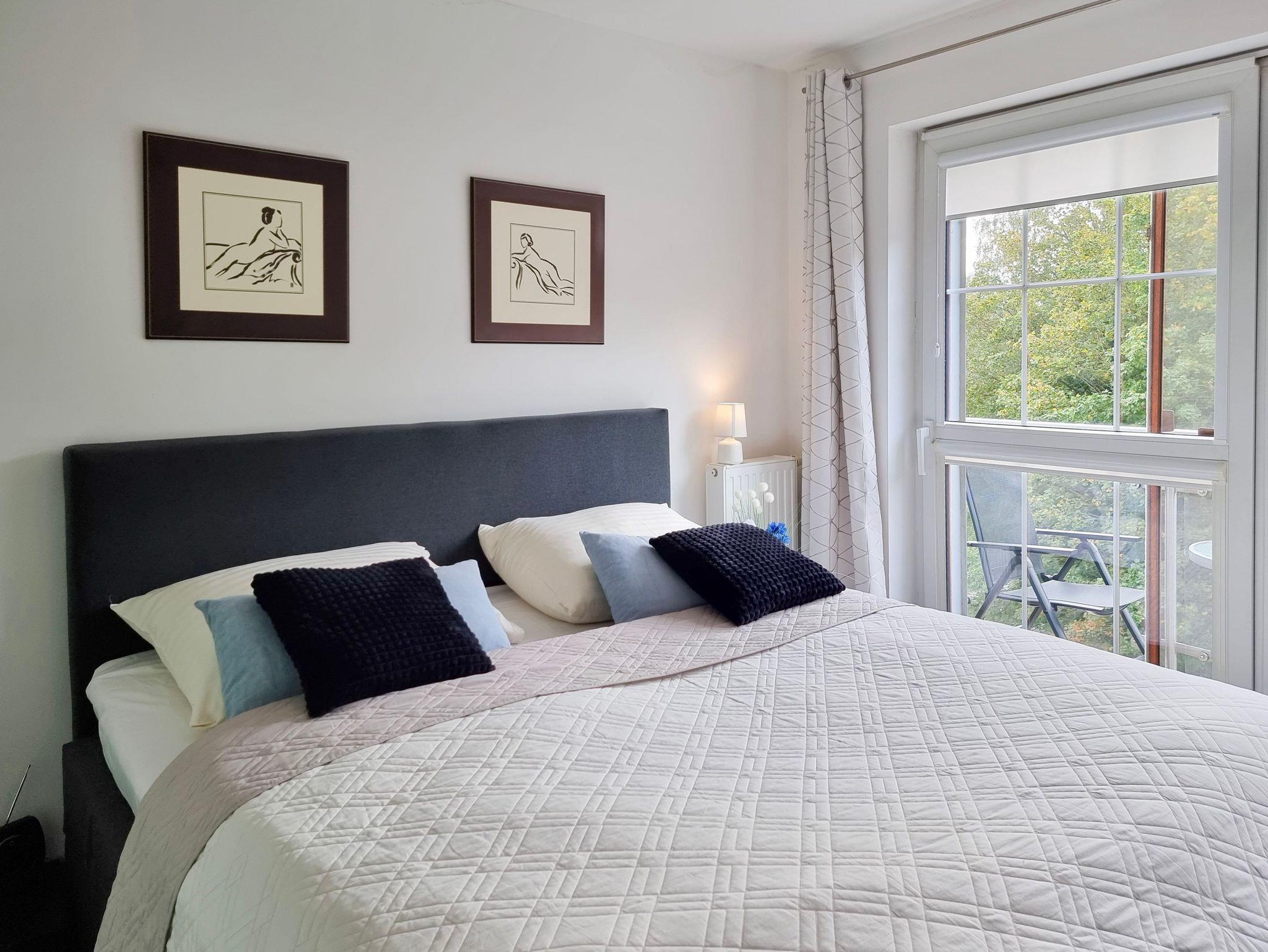 Wohnung mit Balkon von 56m2 befindet sich im 4. Stock in einem Gebäude mit Aufzug. In einem großzügigen Raum vereint es die Funktion eines Schlafzimmers, einer Sitzecke und eines Esszimmers. Die Küchenzeile ist mit allen notwendigen Utensilien für die Zubereitung und den Verzehr von Mahlzeiten ausgestattet, wie z.B. einem Kühlschrank mit Gefrierfach, einem Elektroherd mit zwei Heizstufen, einer Überlauf-Kaffeemaschine, einem Geschirrspüler, einem Wasserkocher und einem Esstisch mit 4 Stühlen. Im Wohnbereich gibt es ein Sofa mit Schlaffunktion (nach dem Ausklappen 140x200cm), einen Sessel, eine Bank und einen Fernseher. Das Schlafzimmer hat ein bequemes, hohes Doppelbett (180x200cm) und einen Kleiderschrank. Die Fenster der Wohnung und des Balkons sind nach Süden ausgerichtet. Im Essbereich gibt es Oberlichter, die nach Westen ausgerichtet sind. Das Badezimmer hat eine Duschkabine, ein Waschbecken und eine Waschmaschine.