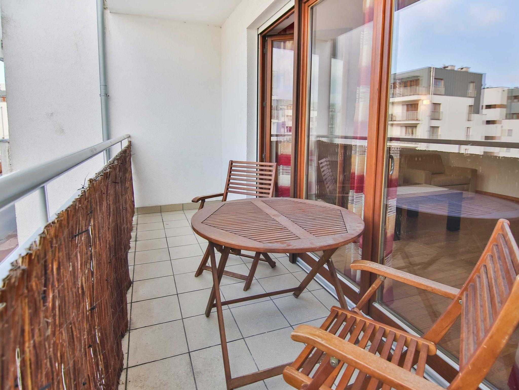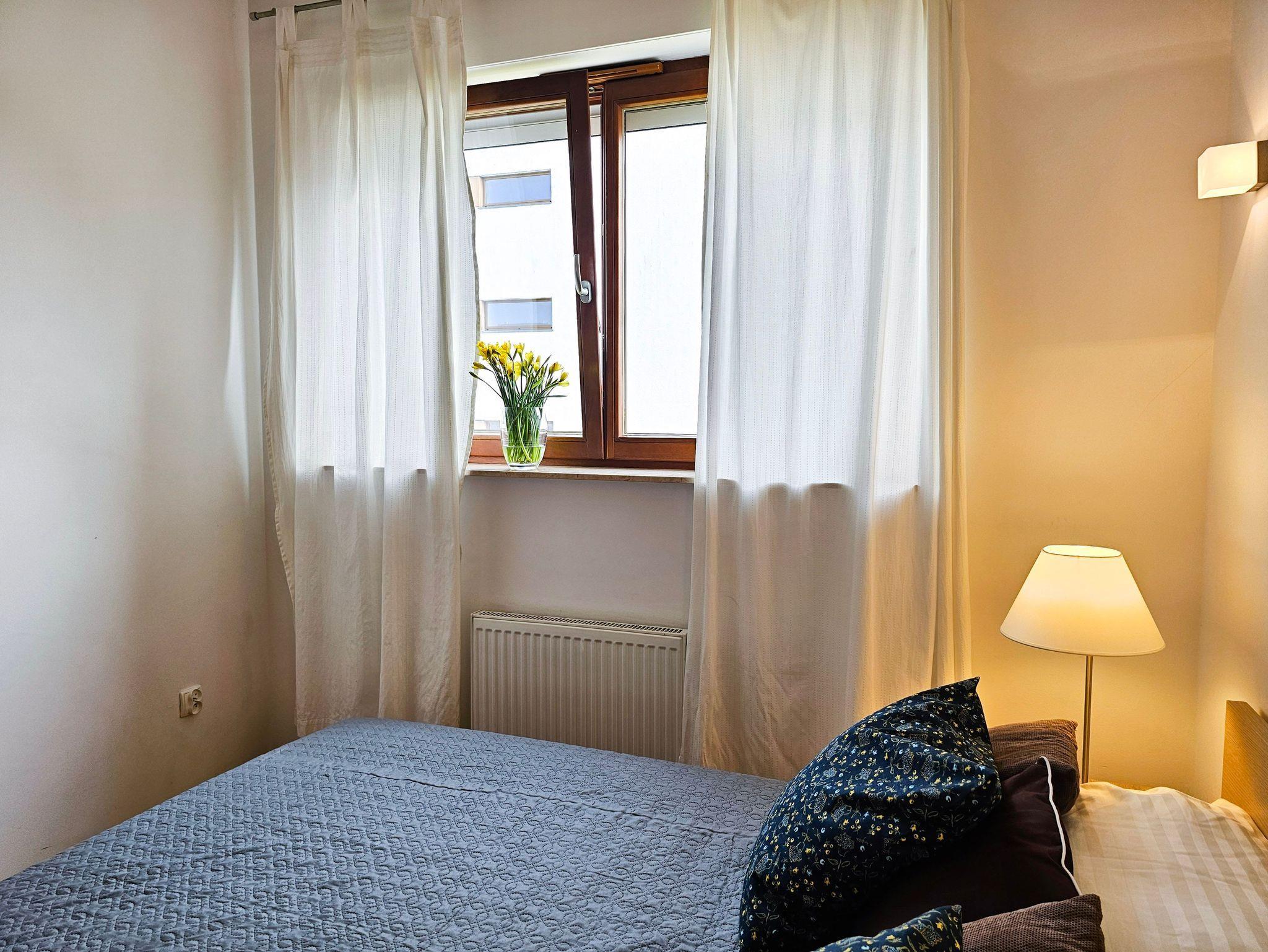 Eine geräumige (56m2) 2-Zimmer-Ferienwohnung im zweiten Stock eines Gebäudes im Wohngebiet Platan. Sie besteht aus einem Wohnzimmer mit Balkon, einem Schlafzimmer, Badezimmer und einer separaten Küche (die Küche ist kein abschließbarer Raum).