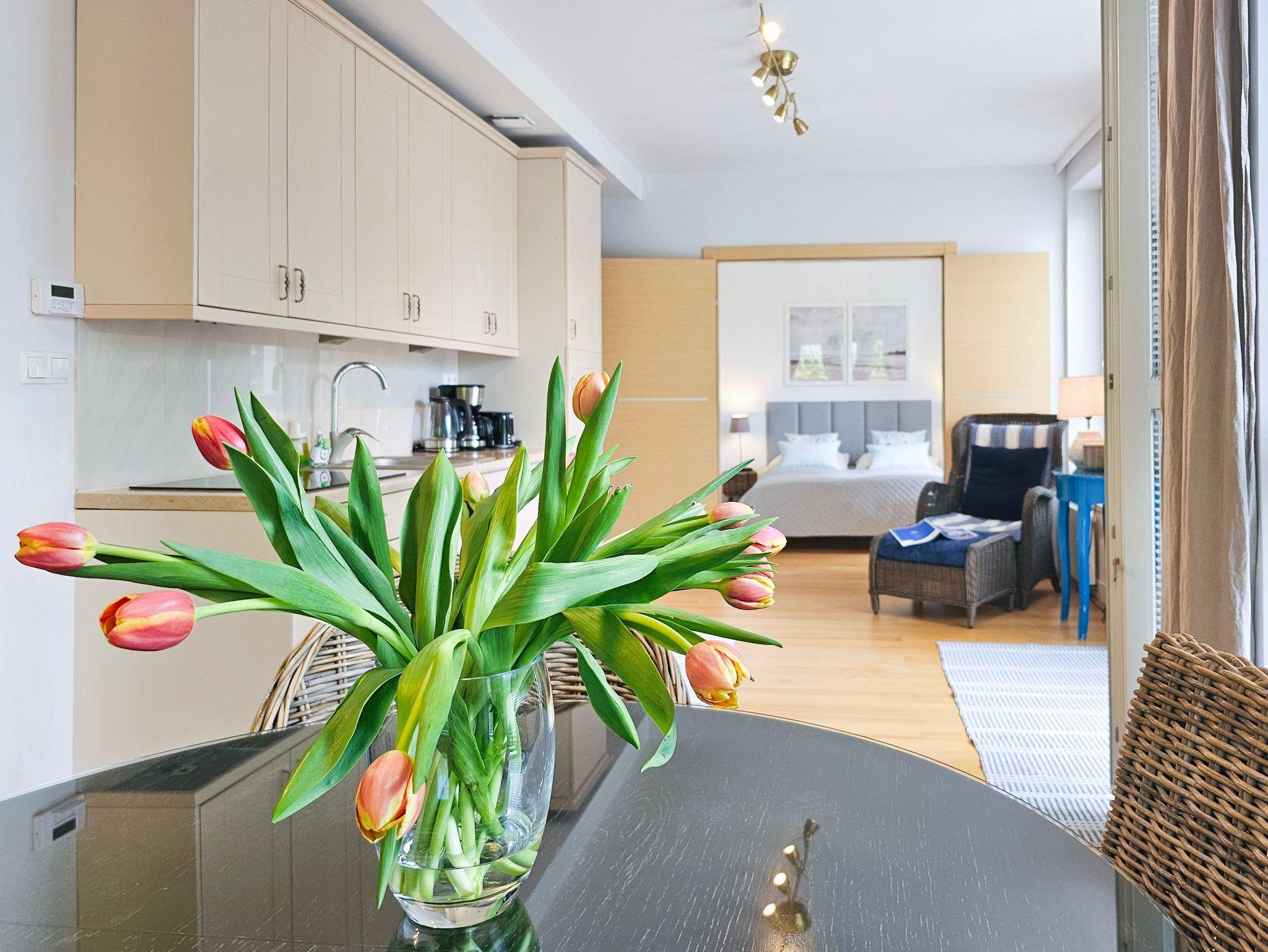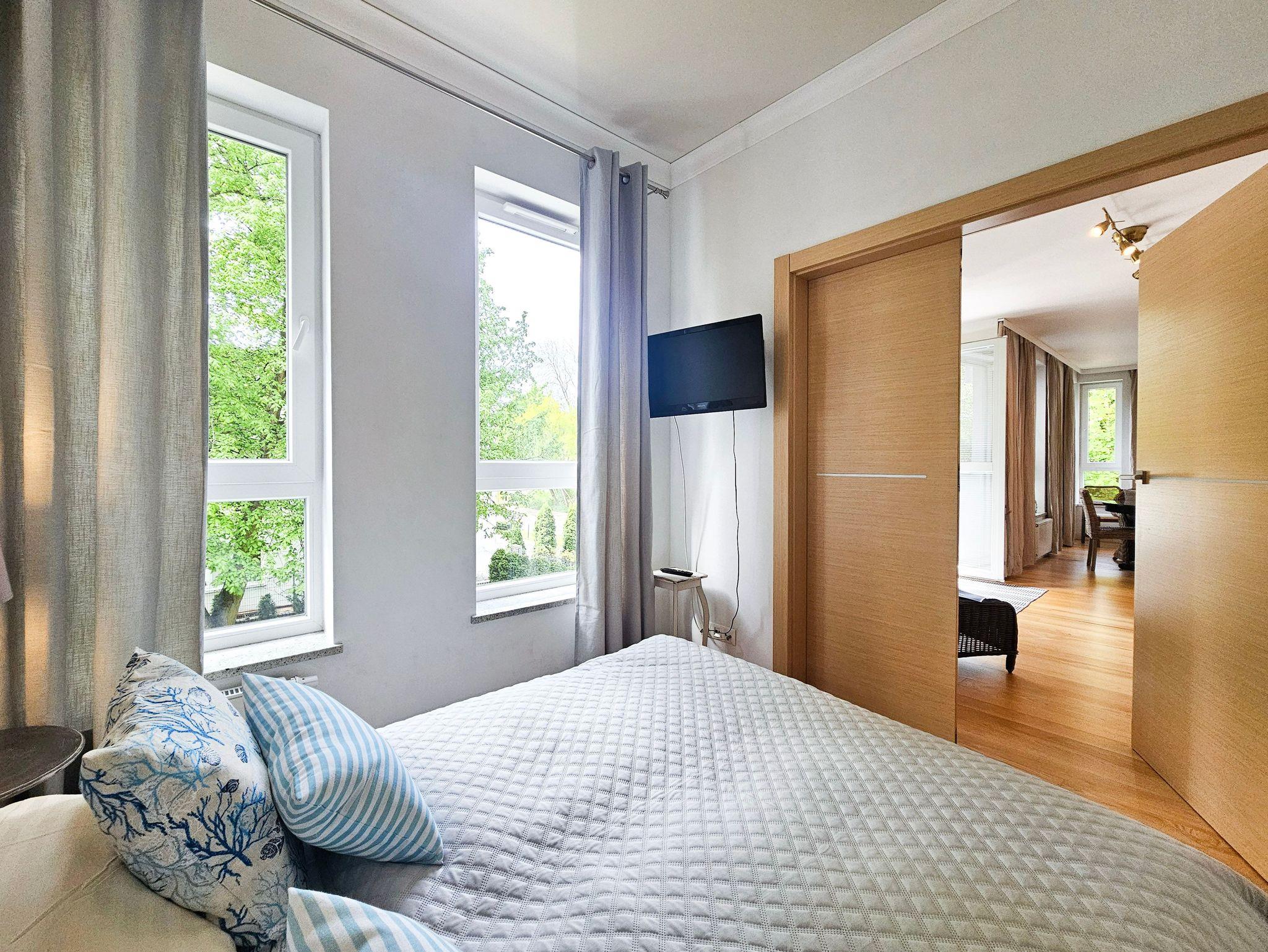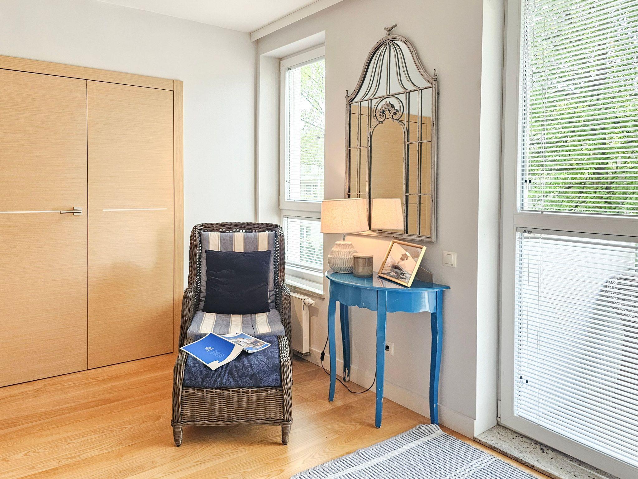 Ein geräumiges Zwei-Zimmer-Apartment, nahe am Strand gelegen, im westlichen Teil des Kurviertels von winoujcie. Es besteht aus einem Wohnzimmer mit Küchenzeile sowie einem separaten Schlafzimmer.