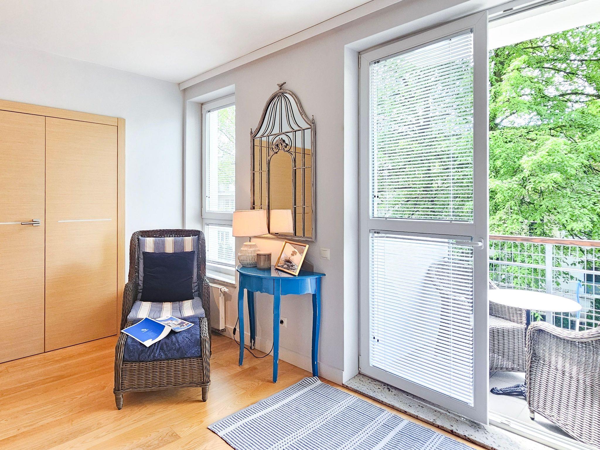 Das Apartment befindet sich im Wohnkomplex „Batycka“, der aus zwei Gebäuden auf einem abgeschlossenen Grundstück im westlichen Teil des Kurviertels besteht. Innerhalb der Anlage gibt es einen kleinen Spielplatz für Kinder sowie Sitzbänke. Die Lage am Rand des Kurviertels, in unmittelbarer Nähe zum Strandzugang, zum Küstenwald und unweit des Grenzübergangs nach Deutschland, stellt einen klaren Vorteil dar. Am Strandzugang befindet sich das neu eröffnete Restaurant „Romans“. In der Nähe des Grenzübergangs winoujcie?Ahlbeck gibt es ein Einkaufszentrum mit einem Lebensmittelmarkt, einem Baumarkt, Kosmetikgeschäften, Geschäften für Haushaltsgeräte und Unterhaltungselektronik sowie einer Tankstelle.