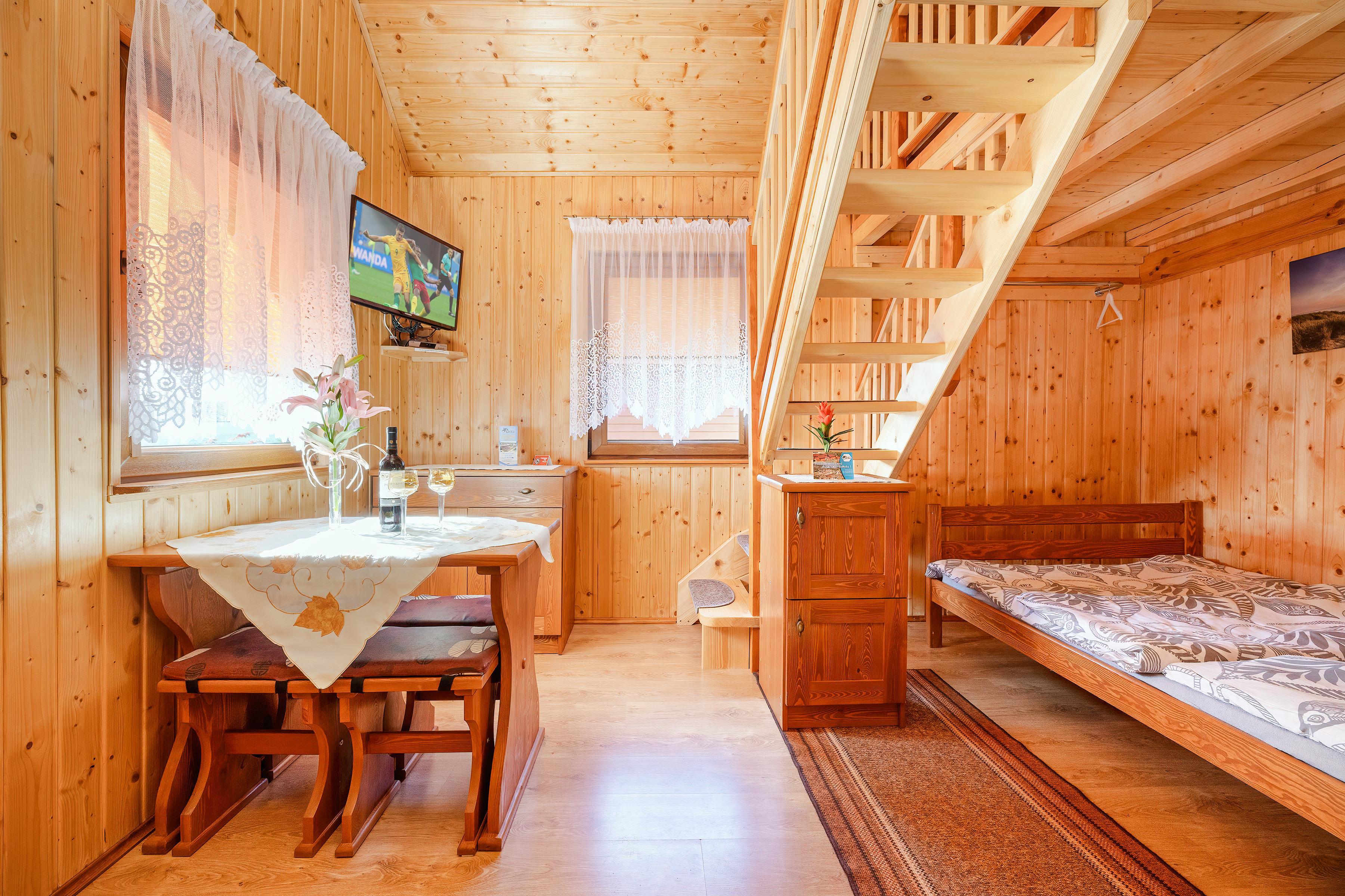 Rustikale Holzchalets mit gepflegter Einrichtung. Kostenloses Internet über WLan. Heizung mit E-Radiatoren (Bestellung, Gebühr), Klimaanlage mit Heizfunktion im EG (nur PL 50.25), Warmwasser über E-Boiler. Terrasse mit Sitzmöbeln, Grill. 1 Parkplatz/Ferienhaus (PL 50.24) bzw. 2 Parkplätze/Ferienhaus (PL 50.25) auf dem umzäunten Grundstück (Gebühr).