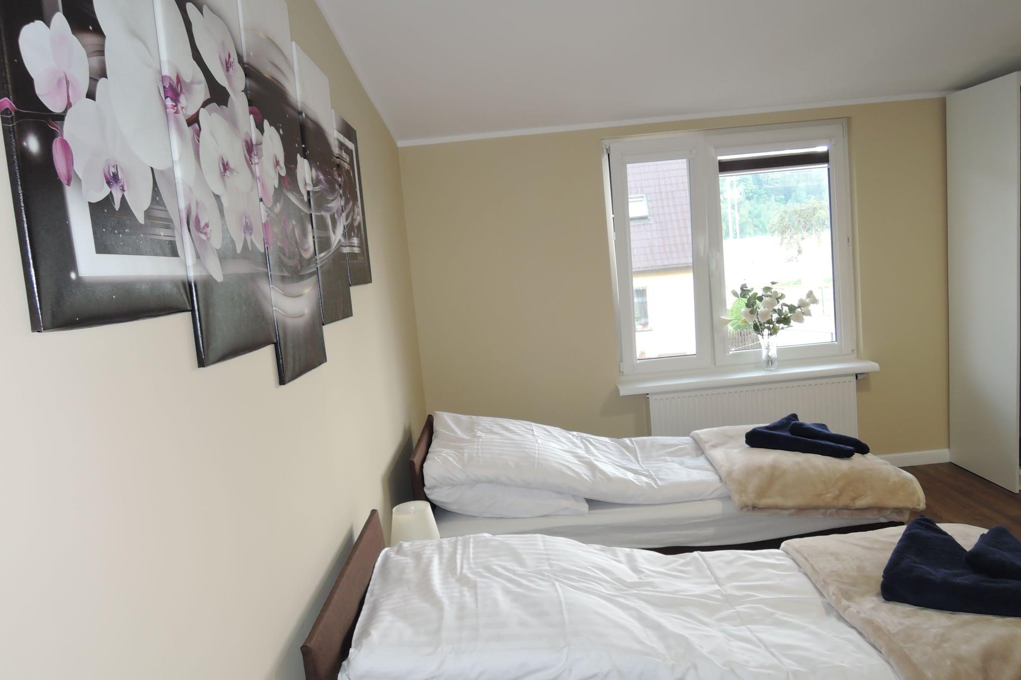 Wapnica er en lille by i det vest-nordlige Polen. Wapnica er berømt på grund af den smukke Emerald Lake. Der er restauranter på søen, der serverer frisk fisk. Fra Wapnica er der kun omkring 8 km til Miedzyzdroje, et larmende feriested med en smuk strand og mange restauranter, caféer og diskoteker. Feriehuset er et hyggeligt dobbelthus til 5 personer. Dette er et godt valg for familier at have en dejlig ferie. Der er mange smukke cykelstier omkring Wapnica, som ikke kun gør børnene glade.