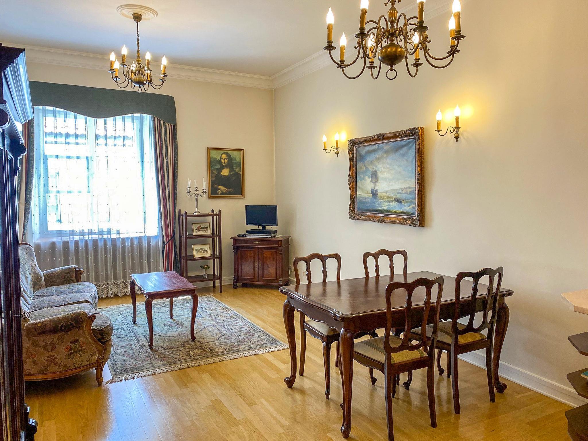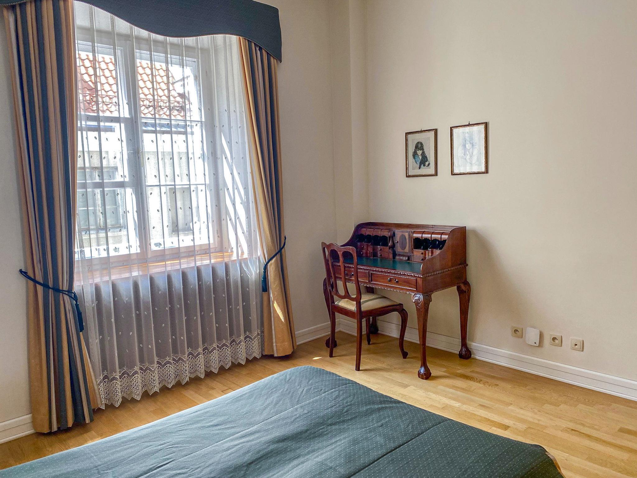2-room apartment 70 m2 on 2nd floor. Beautiful and stylish furnishings: living/dining room with 1 sofabed and TV. 1 room with 1 double bed. Kitchenette (4 hot plates, oven, dishwasher, toaster, freezer, electric coffee machine) with dining table. Bath/WC. Facilities: washing machine, iron. Internet (WiFi, free). Please note: apartment courtyard side. Non-smokers only. Smoke alarm. Sleeping place for 3 persons is a pneumatic mattress (1,10x2,0 m, height 30 cm) or sofa.