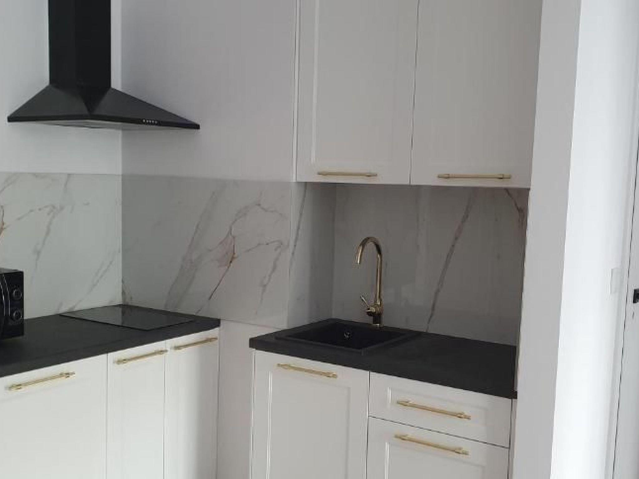 - fully equipped with kitchen utensils and appliances: fridge, induction cooktop , microwave, extractor hood, electric kettle and coffee brewing set, table with chairs,