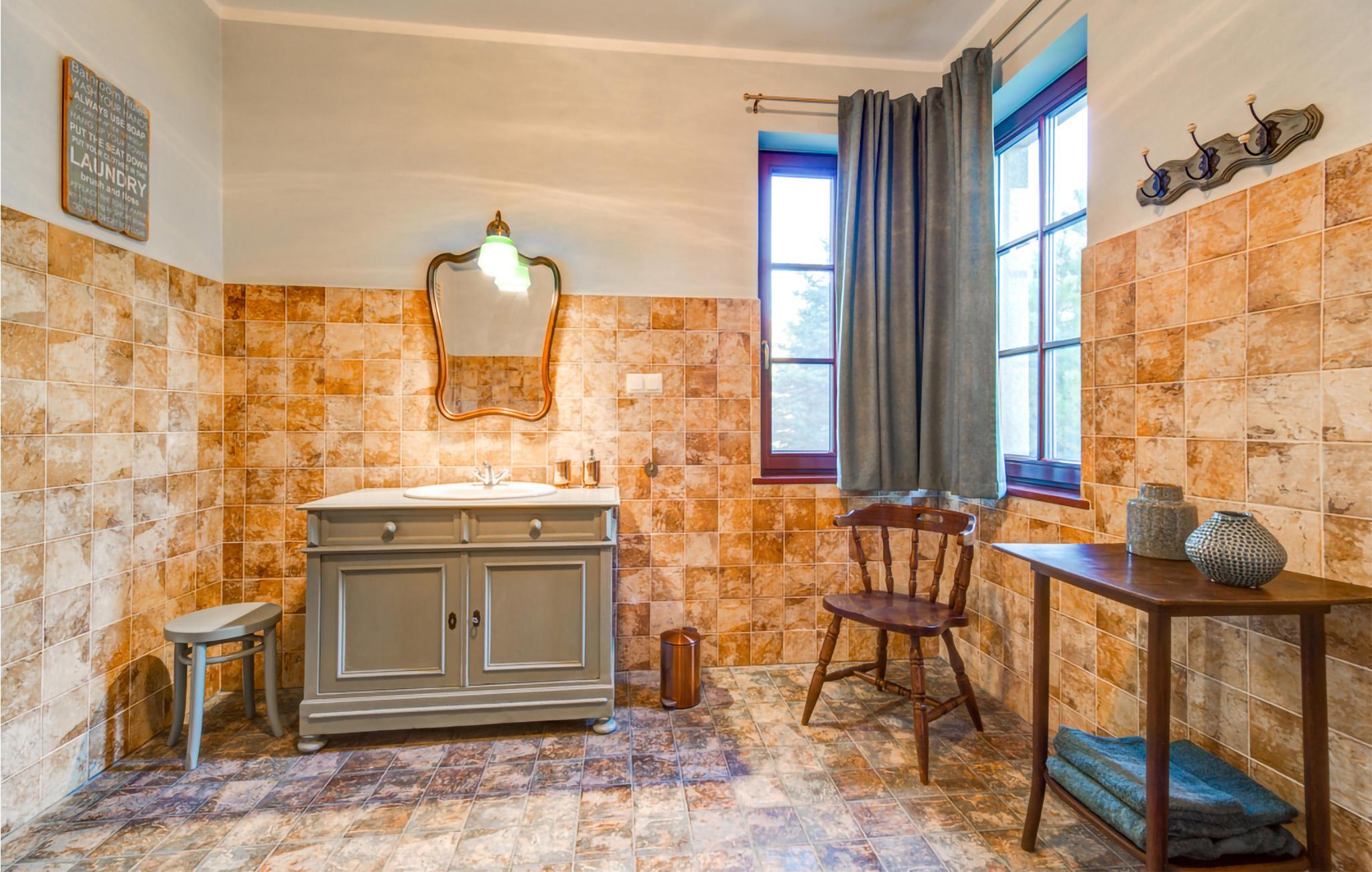 Tag til den rolige by Wygon og hold en skøn ferie, hvor I er tæt på naturen. I kommer hurtigt til at føle jer hjemme i husets store, smagfulde rum. I kan også bruge det udendørs sommerkøkken til at tilberede lækre grillretter. Badeværelserne er meget komfortable, og der er masser af plads foran huset til at lege for jeres børn og hunde.