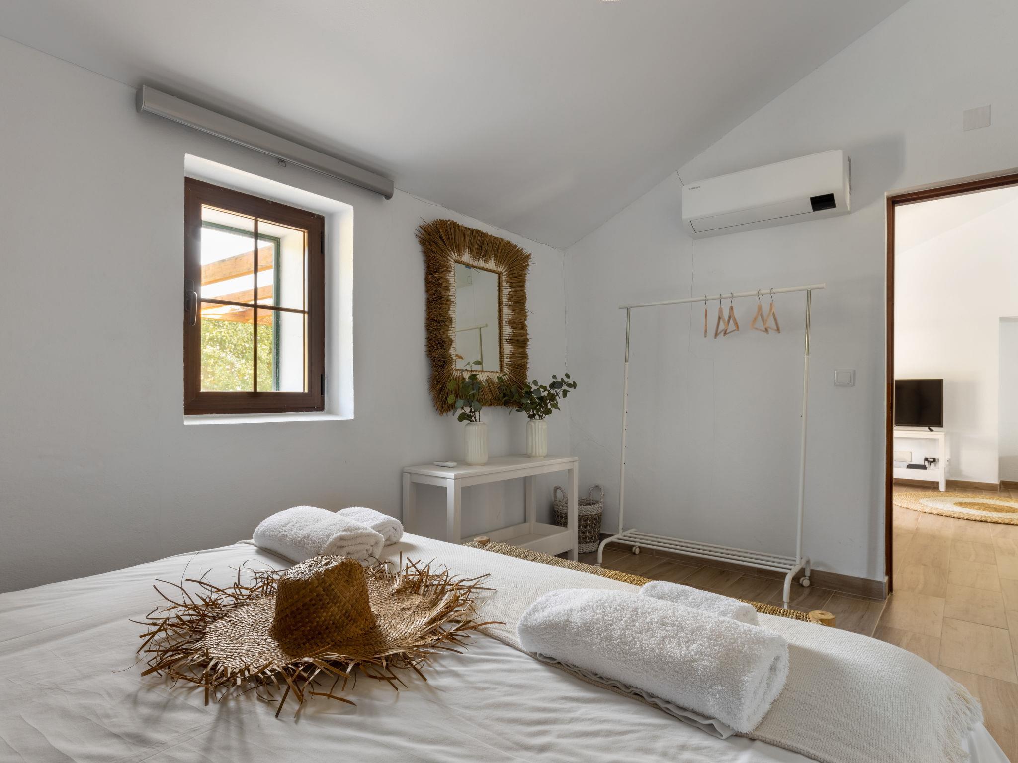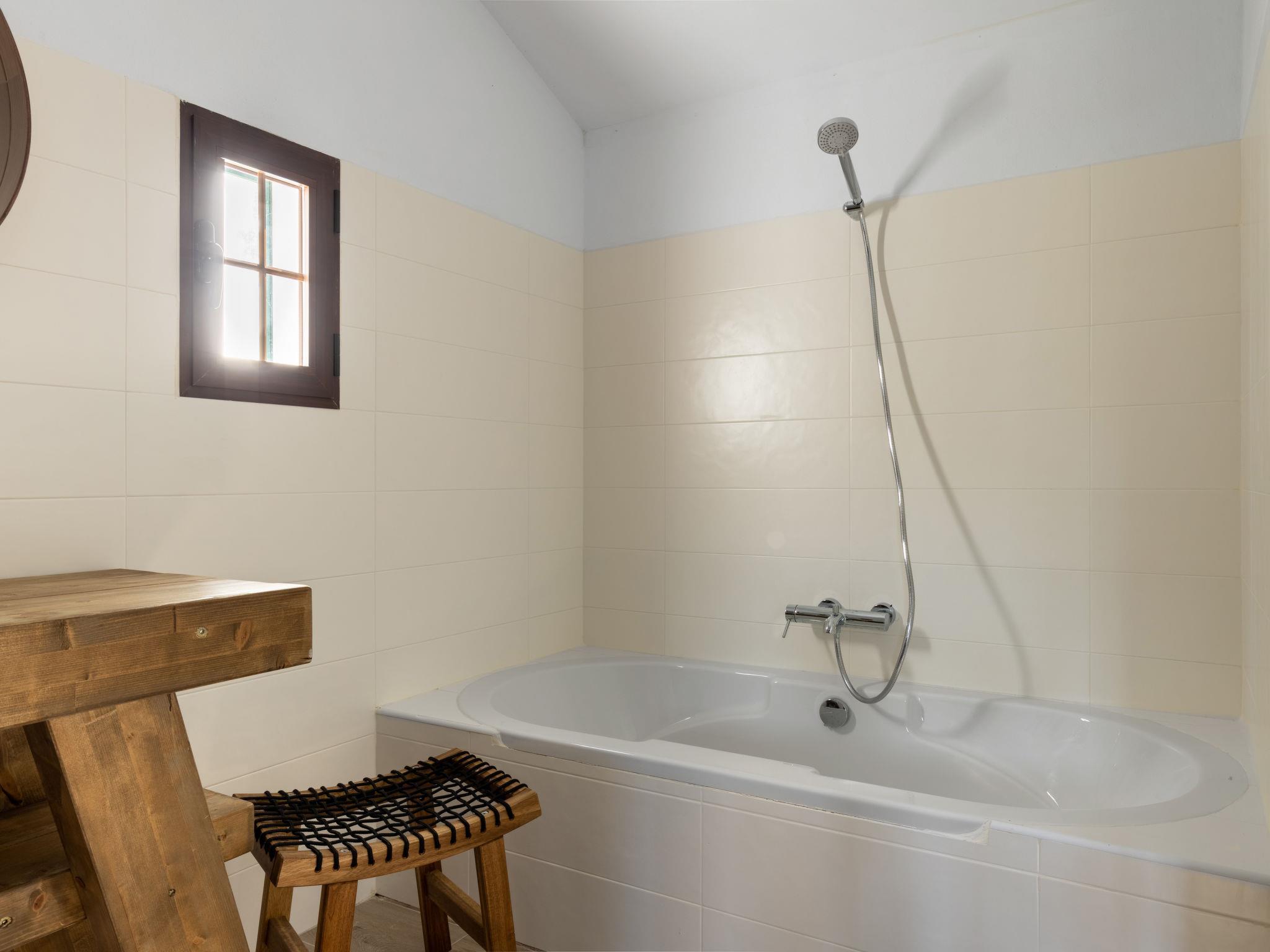 "Quinta de Santa Emilia 3", 4-room house 103 m2, on the ground floor. Modern and cosy furnishings: living/dining room 30 m2 with open-hearth fireplace, satellite TV, air conditioning and forced-air heating. Exit to the terrace. 1 large room 30 m2 with 1 double bed (180 cm, length 200 cm), separate WC, bath/shower, double hand-basin, air conditioning and forced-air heating. 1 room 12 m2 with 1 double bed (160 cm, length 200 cm), air conditioning and forced-air heating. 1 large room 22 m2 with 3 beds (90 cm, length 200 cm), air conditioning and forced-air heating. Open kitchen (oven, dishwasher, 4 ceramic glass hob hotplates, toaster, kettle, microwave, freezer, electric coffee machine, Capsules for coffee machine (Krups) extra). Shower/WC. Electric heating. Heating not available in all rooms. Terrace 24 m2, roofed terrace 30 m2. Terrace furniture, barbecue. Facilities: iron, children's high chair, baby cot for up to 2 year olds, hair dryer. Internet (WiFi, free). Please note: suitable for families. Non-smoking house. 123148/AL