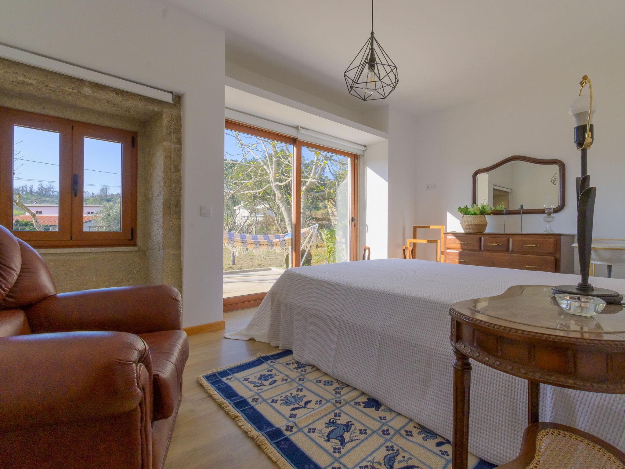 Vilar de Mouros: Very beautiful, cosy cottage "Pedra", renovated in 2024, surrounded by trees and fields. Outside the resort, 1 km from the centre of Vilar de Mouros, in the countryside. Private: natural state property. In the house: WiFi, washing machine. Parking at the house on the premises. Grocery, supermarket 800 m, shopping centre 7.5 km, restaurant 900 m, bar 600 m, bakery 800 m, café 850 m, pedestrian zone 100 m, bus stop 7.5 km, sandy beach "Azenhas de Vilar de Mouros Fluvi" 1.5 km. Nearby attractions: Cascata do Pincho, Montaria 16.8 km, Miradouro do Cervo, Lovelhe 13.3 km, Muralhas e Praia do Camarido 9 km, Fortaleza de Valença 26.6 km, Caminha 7.7 km, Torre do Relógio e Porta Medieval 7.7 km. Well-known lakes can easily be reached: Rio Coura 1.5 km. Hiking paths: Passeio Marítimo da Guarda por N13 13.2 km. Please note: car recommended. Suitable for families. Loading and unloading of baggage is possible at the holiday house. excellent for surfing, windsurfing, bodyboarding. About 25 km from the city of Viana do Castelo (you can get from Caminha to Viana do Castelo by train).