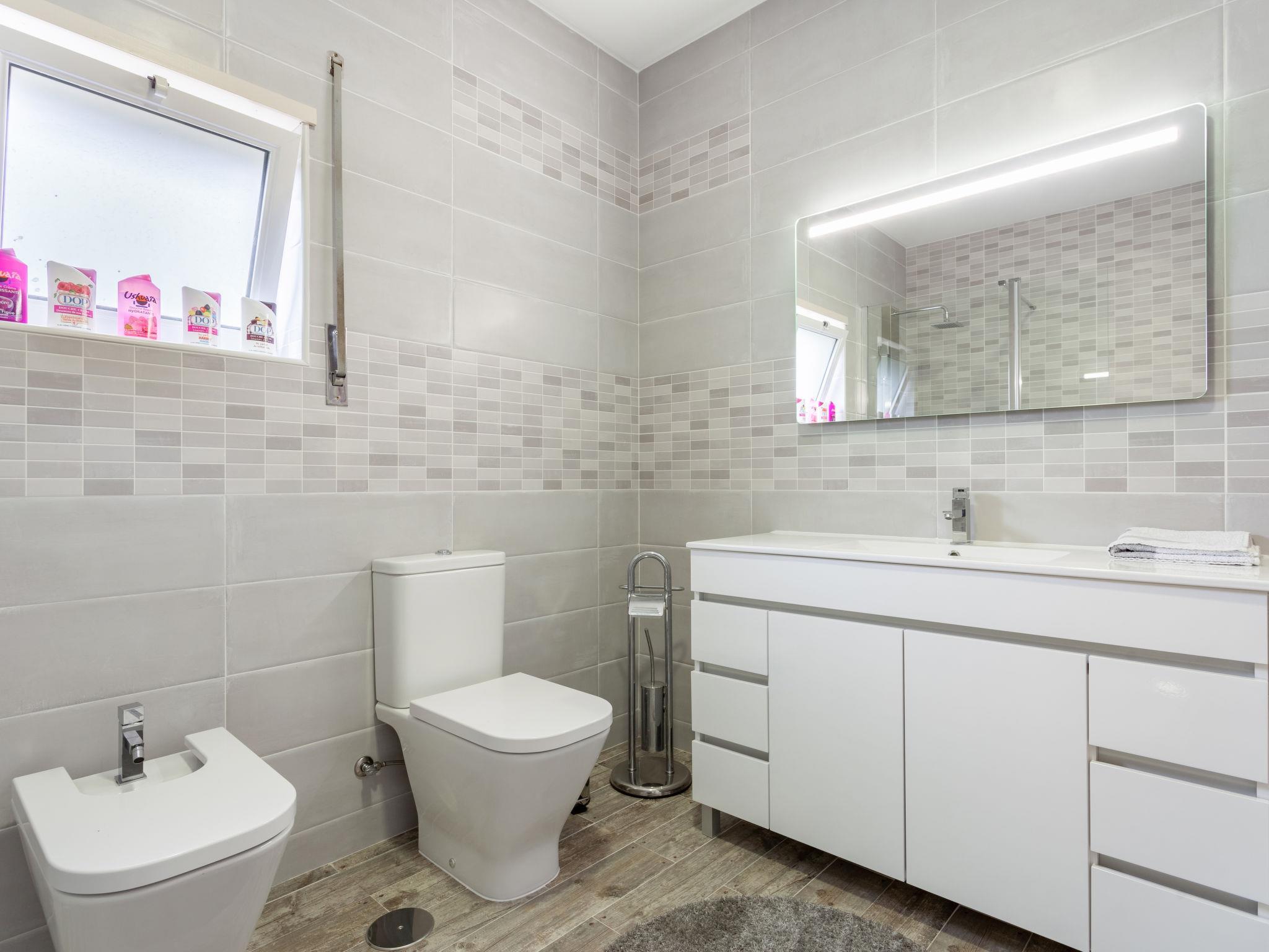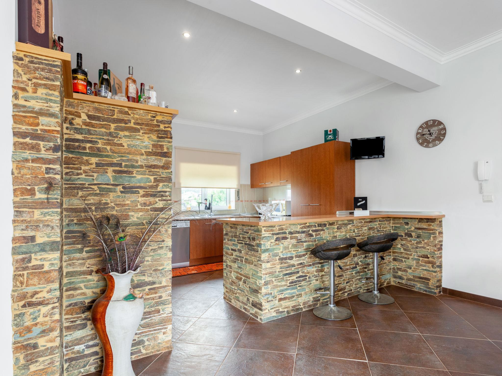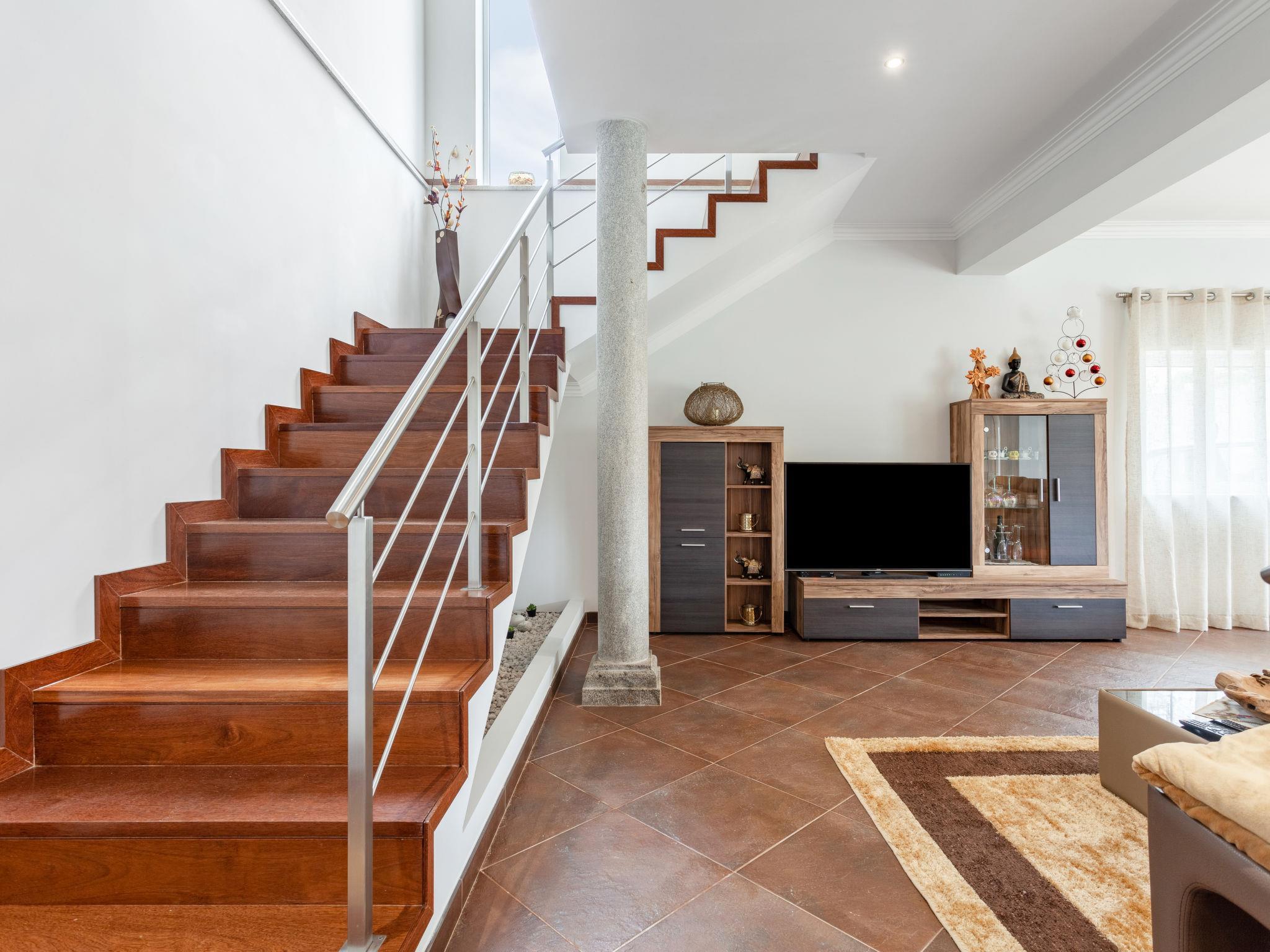 "Atlântico", 5-room house 230 m2 on 2 levels. Comfortable and cosy furnishings: large living room with cable TV. Exit to the terrace. 1 room with 1 bed (150 cm, length 200 cm). Open kitchen (oven, dishwasher, 4 ceramic glass hob hotplates, toaster, kettle, microwave, grill, electric coffee machine, Capsules for coffee machine (Nespresso,not incl)) with dining table, dining table. Bath/shower/WC. No heating option. Upper floor: with 1 bed (160 cm, length 200 cm), shower/WC. Exit to the balcony. 1 room with 1 bed (150 cm, length 200 cm). 1 room with 1 bed (150 cm, length 200 cm). Exit to the balcony. Shower/WC. 2 balconies 3 m2, balcony 4 m2, large terrace 60 m2. Partial view of the sea and the mountains. Facilities: washing machine, iron, children's high chair, baby cot, hair dryer. Internet (WiFi, free). 128498/AL