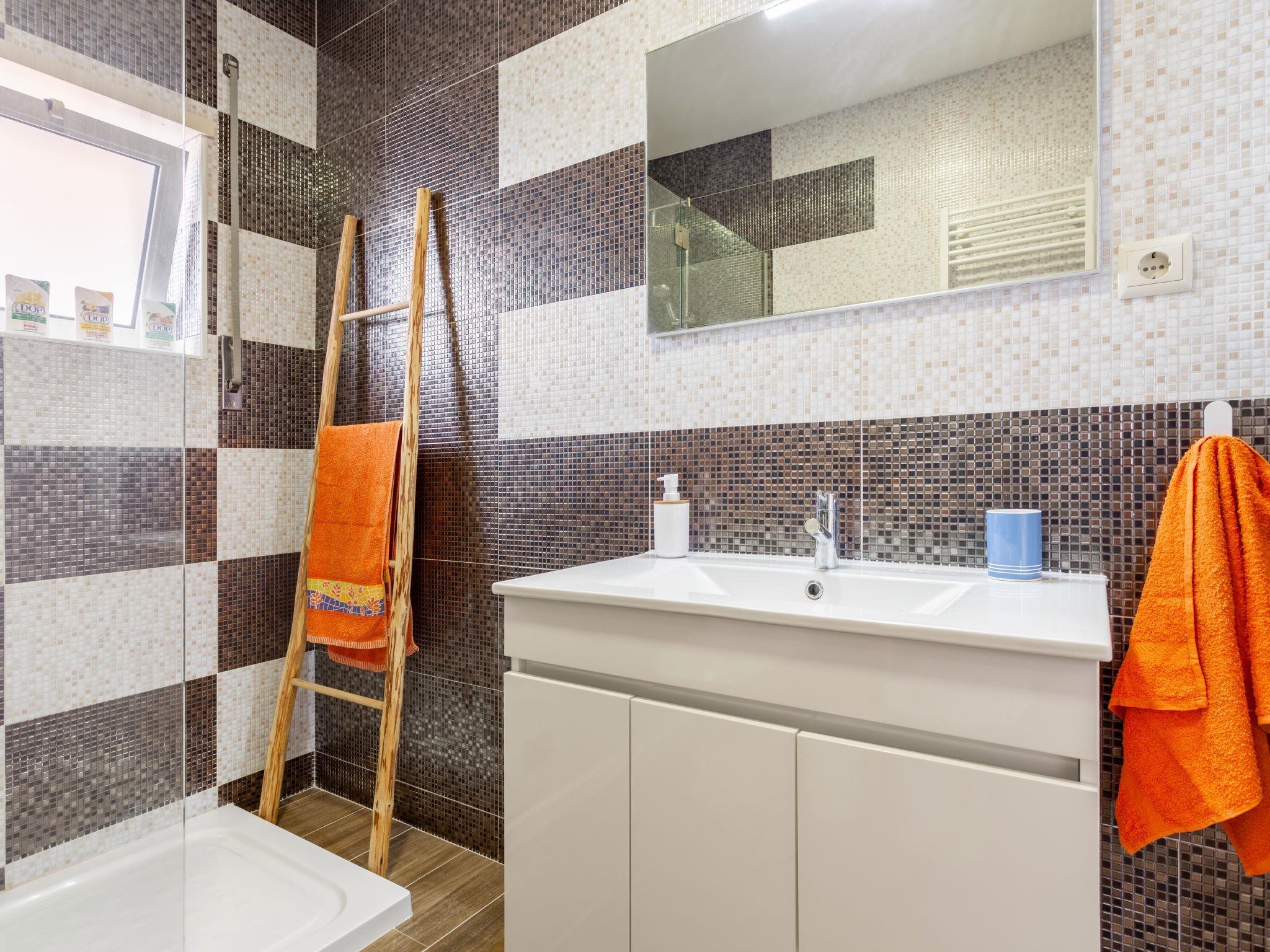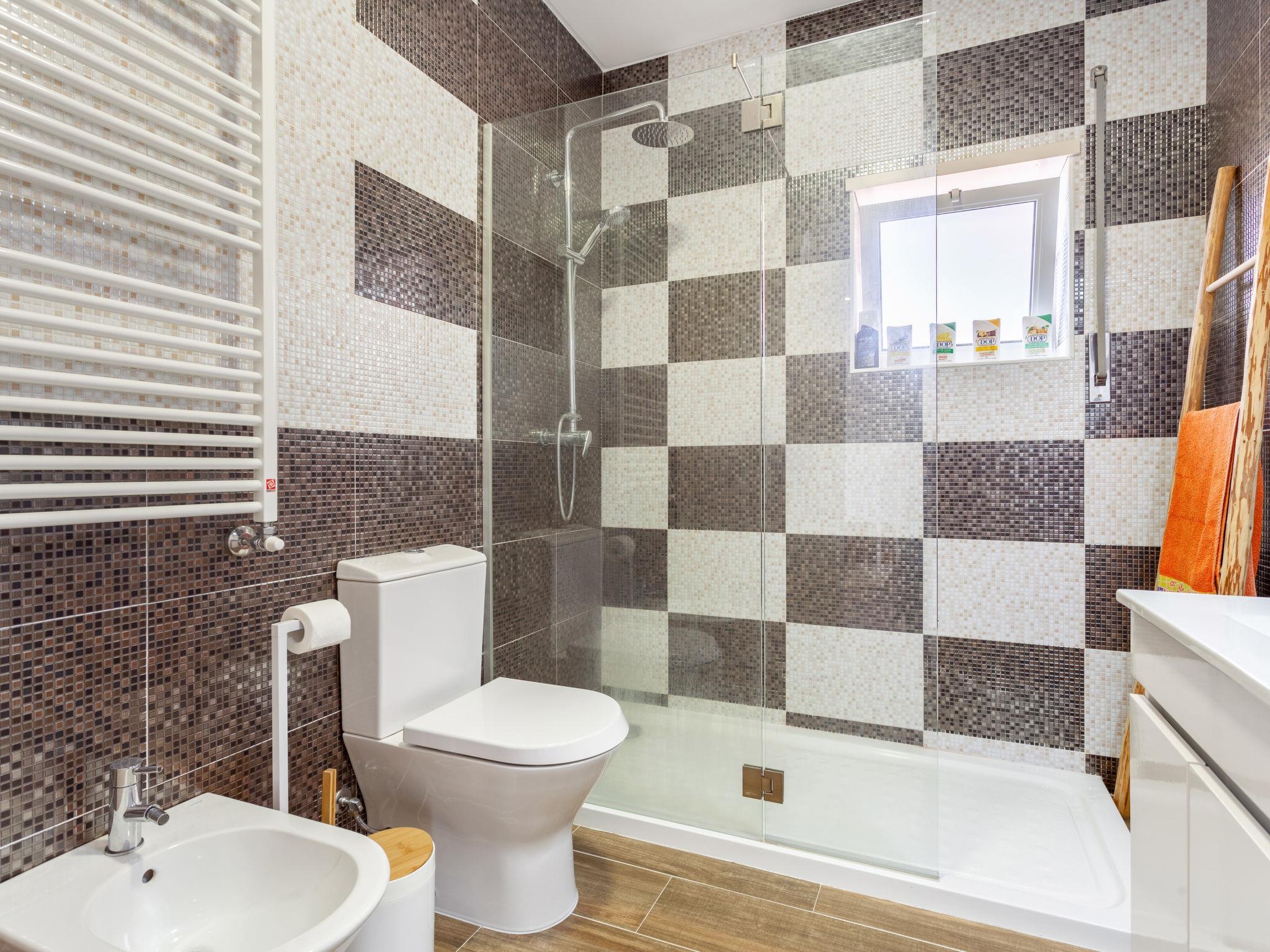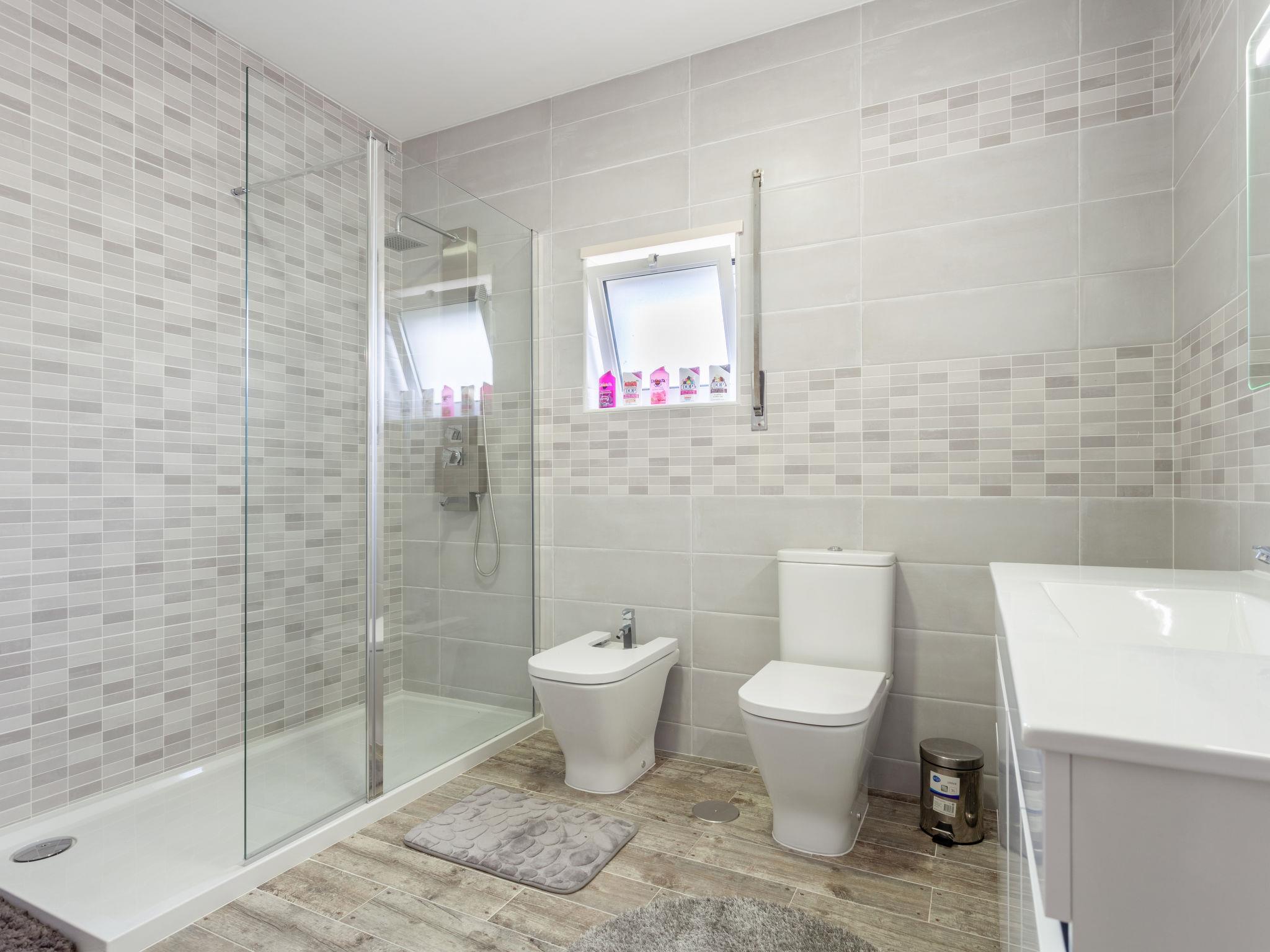 "Atlântico", 5-room house 230 m2 on 2 levels. Comfortable and cosy furnishings: large living room with cable TV. Exit to the terrace. 1 room with 1 bed (150 cm, length 200 cm). Open kitchen (oven, dishwasher, 4 ceramic glass hob hotplates, toaster, kettle, microwave, grill, electric coffee machine, Capsules for coffee machine (Nespresso,not incl)) with dining table, dining table. Bath/shower/WC. No heating option. Upper floor: with 1 bed (160 cm, length 200 cm), shower/WC. Exit to the balcony. 1 room with 1 bed (150 cm, length 200 cm). 1 room with 1 bed (150 cm, length 200 cm). Exit to the balcony. Shower/WC. 2 balconies 3 m2, balcony 4 m2, large terrace 60 m2. Partial view of the sea and the mountains. Facilities: washing machine, iron, children's high chair, baby cot, hair dryer. Internet (WiFi, free). 128498/AL