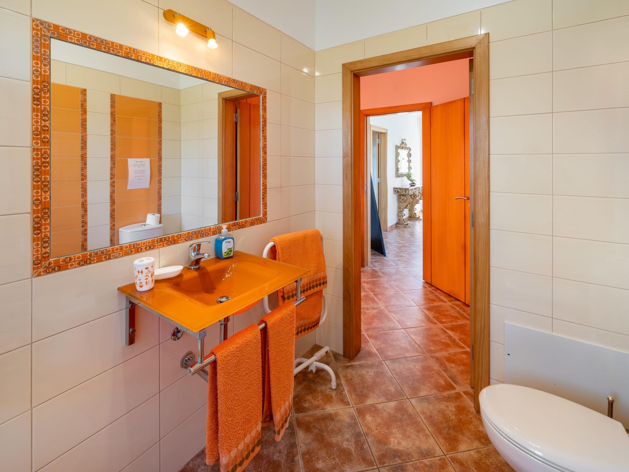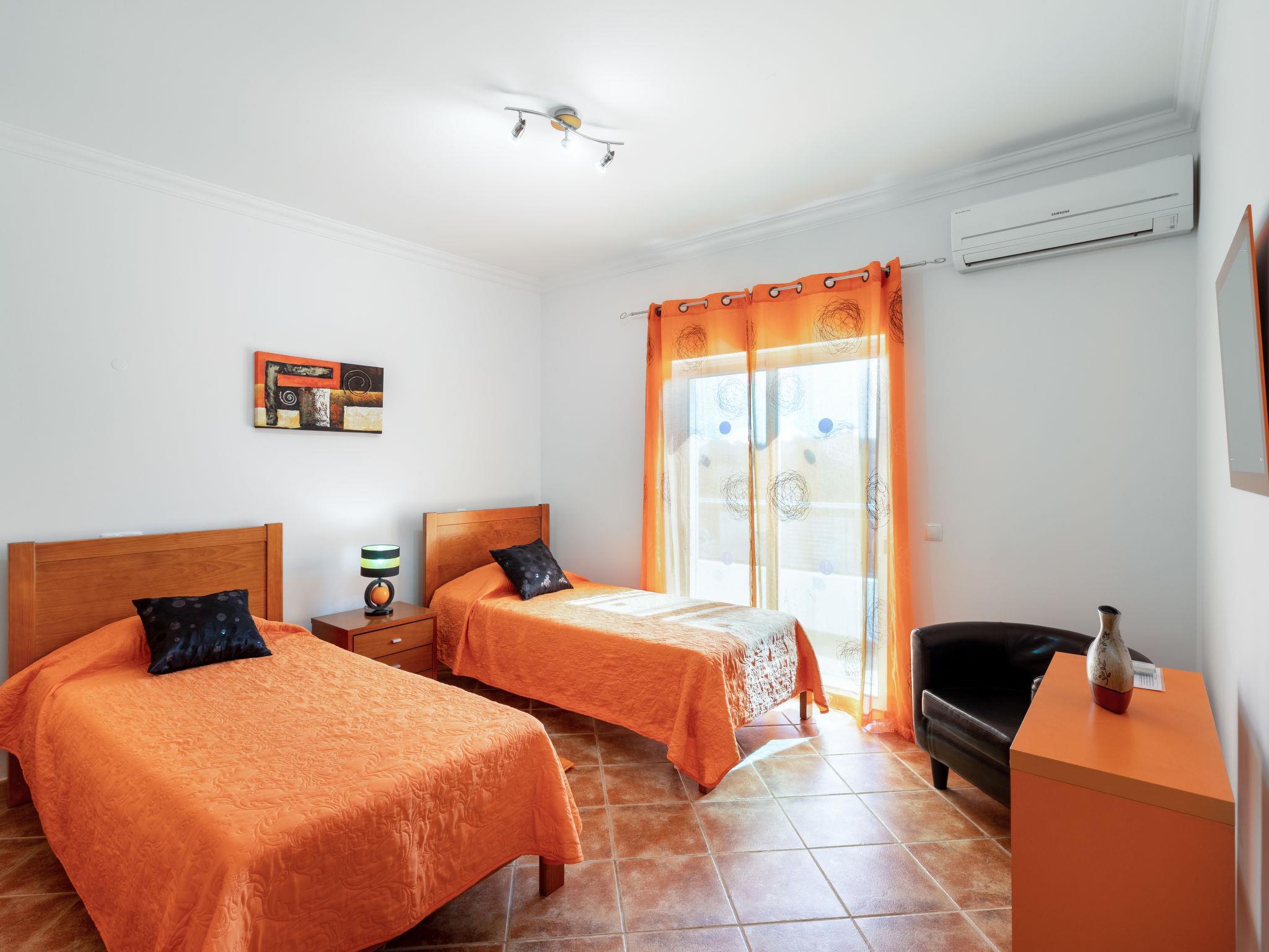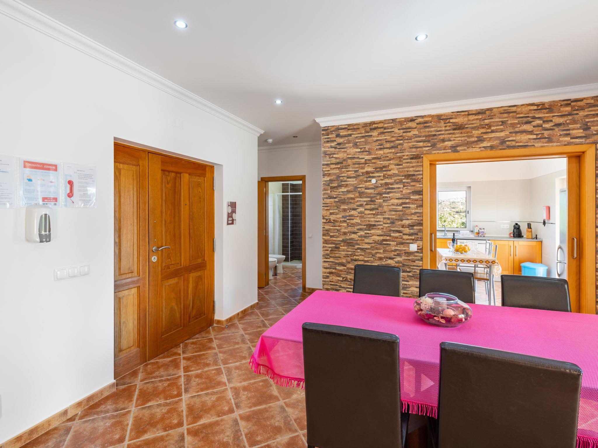 "Casa Joaquim", 4-room house 115 m2 on 2 levels. Bright, modern furnishings: living/dining room with open-hearth fireplace, dining table, satellite TV and DVD. Exit to the terrace. 1 room with 2 beds (90 cm, length 195 cm). Exit to the terrace. Kitchen (oven, dishwasher, 4 ceramic glass hob hotplates, toaster, kettle, microwave, freezer, electric coffee machine) with dining table. Shower/WC. Electric heating, air-conditioning. Heating not available in all rooms. Upper floor: 1 room with 1 double bed (160 cm, length 200 cm). Exit to the balcony. 1 room with 2 beds (90 cm, length 195 cm). Exit to the balcony. Bath/WC, shower/WC. 2 balconies 13 m2, balcony 9 m2, terrace 135 m2, terrace 70 m2. Terrace furniture, barbecue, deck chairs (6). Facilities: washing machine, safe, iron, children's high chair, baby cot, hair dryer. Internet (WiFi, free). Please note: non-smoking house. Smoke alarm, fire extinguisher. 25818/AL