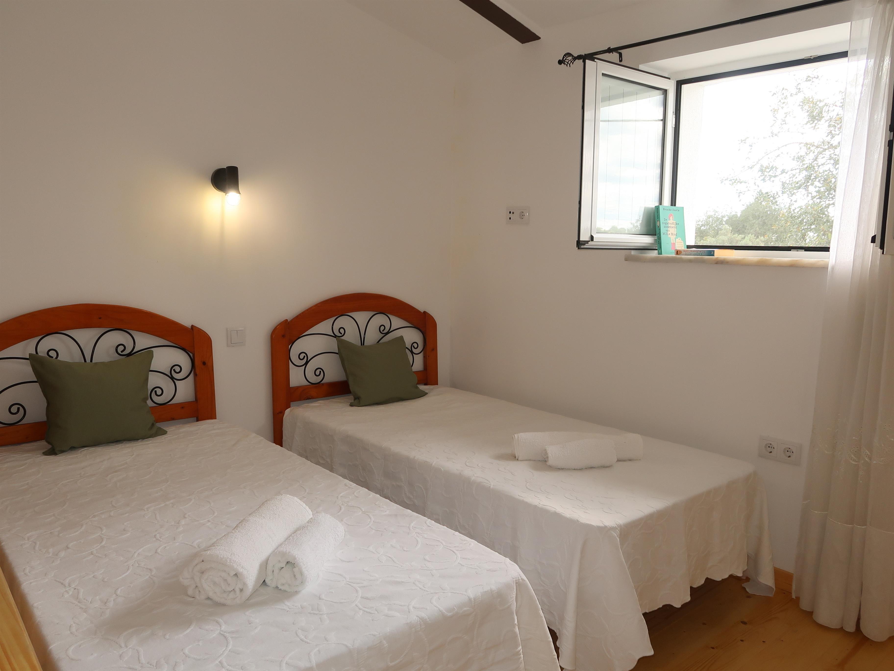 Aufteilung Haus 2 (Casa Limoeiro, 2. Etagen) Im Erdgeschoss ein Wohnraum. Küche (u.a. mit Geschirrspüler und Waschmaschine). Separates Esszimmer. 2 Schlafzimmer. Dusche/WC. Bad/WC 1. Etage: Zweibettzimmer. Klimaanlage. Eigene Terrasse mit Mobiliar.