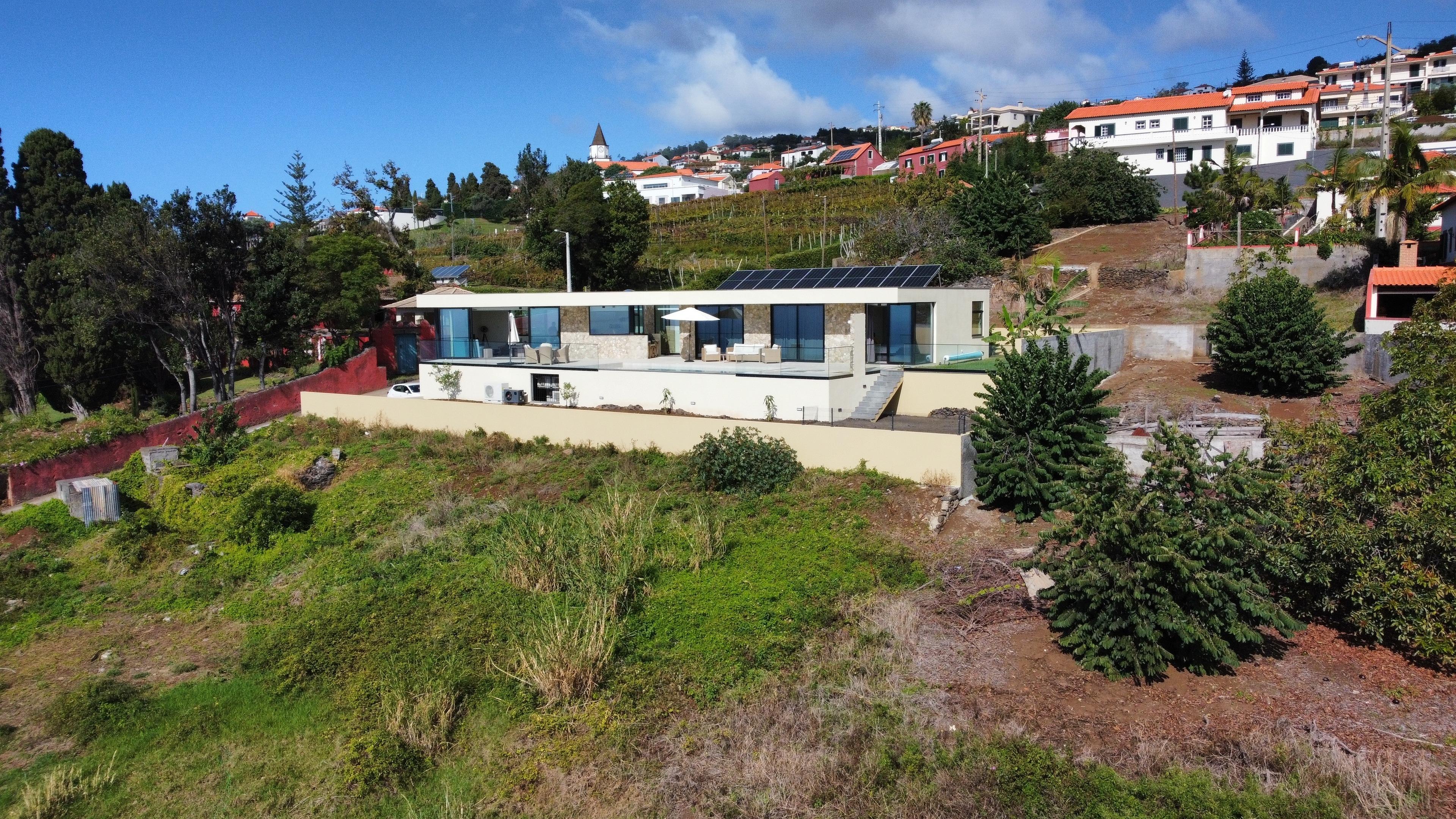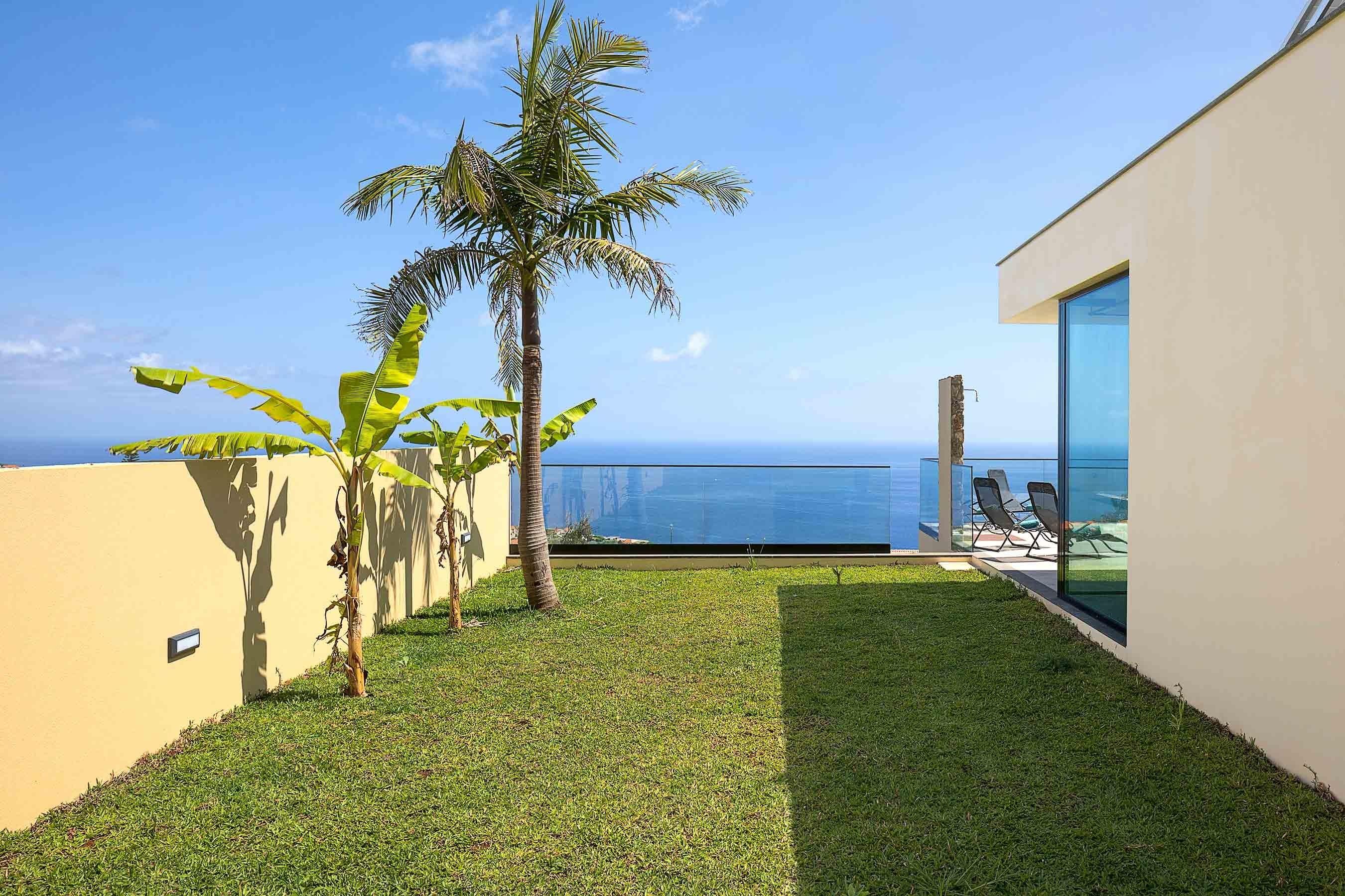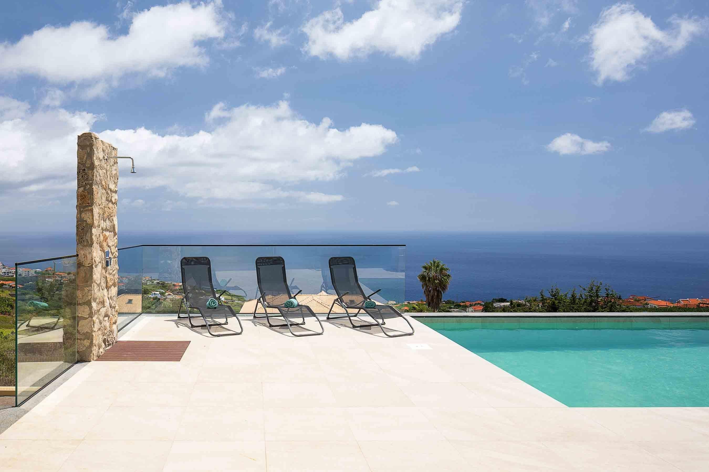 Die Villa Ohana liegt auf ca. 230 m Höhe im Zentrum des Tals von Estreito da Calheta. Dies ermöglicht Euch einen traumhaften Fernblick. Nach Südosten erstreckt sich der Bergkamm gen Calheta der vor allem in der Nacht ein traumhaftes Lichtermeer bietet. Nach Südwesten habt Ihr eine wunderbare Sicht auf den Atlantischen Ozean. Aufgrund der Ausrichtung des Grundstücks gen Süden habt Ihr den ganzen Tag Sonne auf der Terrasse. Aber es ist auch für genug Schatten gesorgt. Die Villa Ohana ist lediglich 3 Minuten von der Schnellstraße entfernt und bietet somit eine perfekte Anbindung. Hören könnt ihr auf der Terrasse jedoch lediglich das Rascheln der Eidechsen sowie die Kirchenglocke am Mittag: Es ist wirklich absolut still!