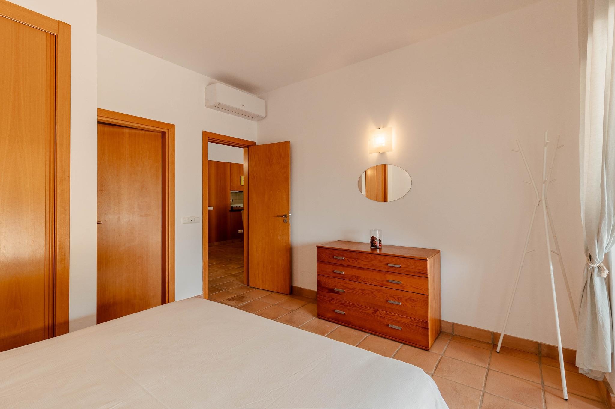 Stueetage: (entre, Køkken(elkedel, brødrister, komfur(gas), kaffemaskine, ovn, mikrobølgeovn, opvaskemaskine , køle-fryseskab, vaskemaskine), stue / spisestue(Fjernsyn(parabol), spisebord, sofahjørne, stereoanlæg, havedøre, terrasse(overdækket)), soveværelse(enkeltseng, enkeltseng), Soveværelse med badeværelse(dobbeltseng, bruser, håndvask, toilet, bidet), badeværelse(badekar, håndvask, toilet)) På 1. etage: (tagterrasse) terrasse, have, havemøbler, parkering, swimmingpool(deles med andre gæster)