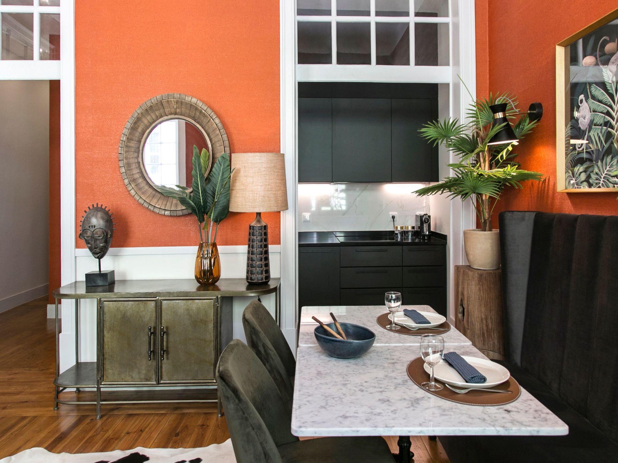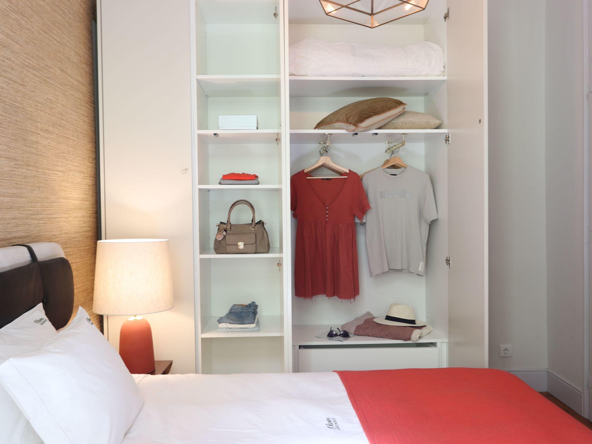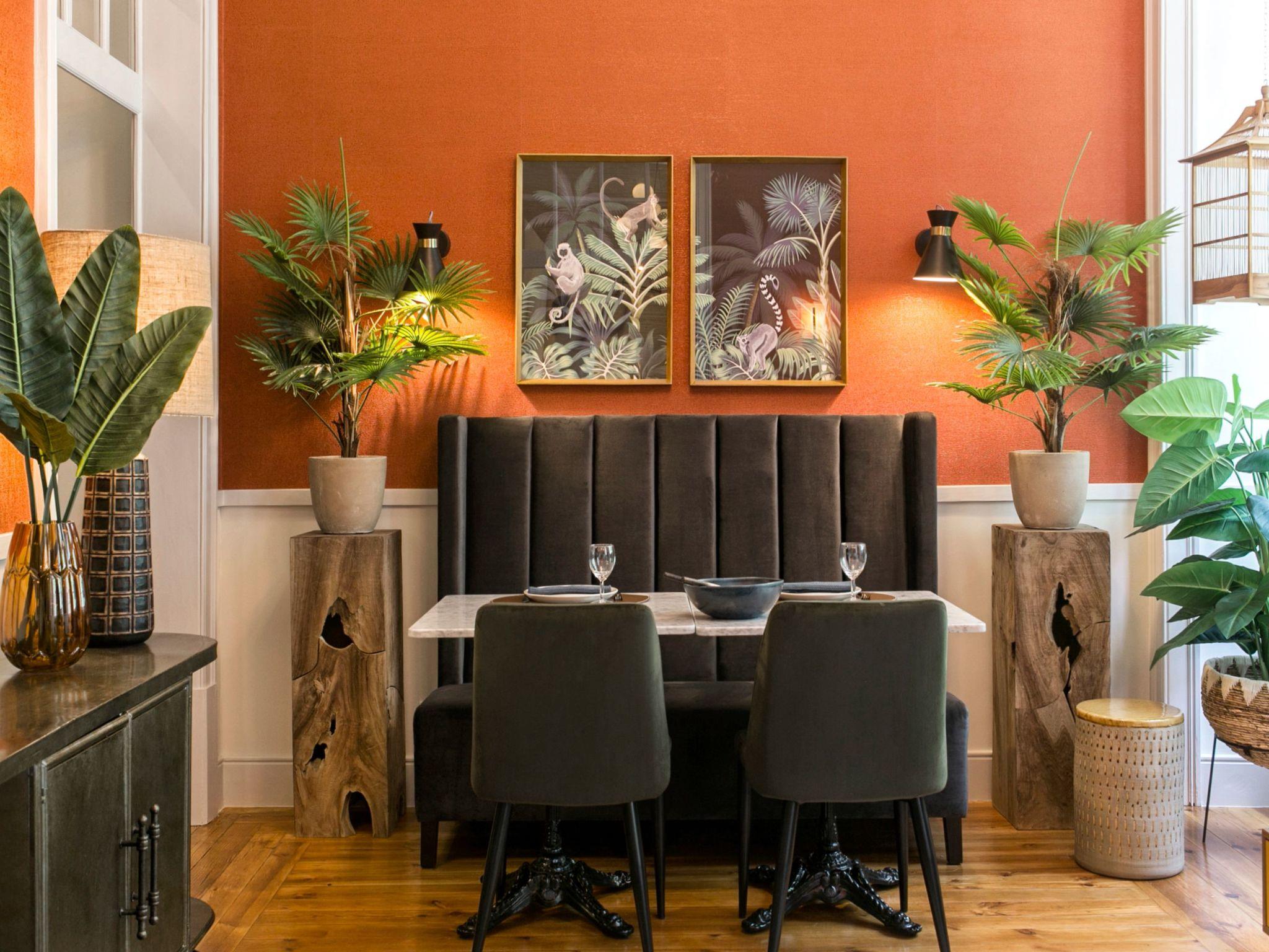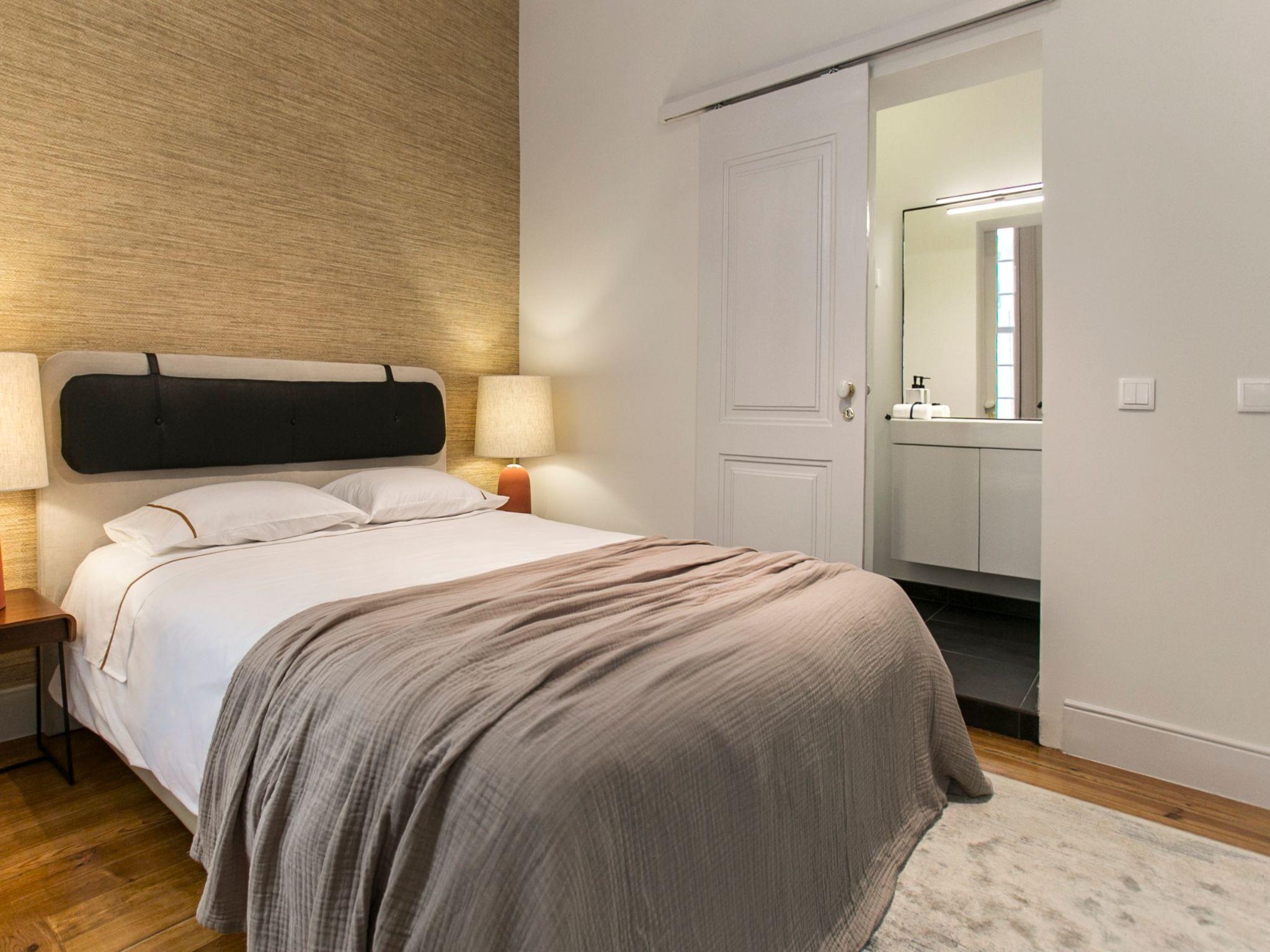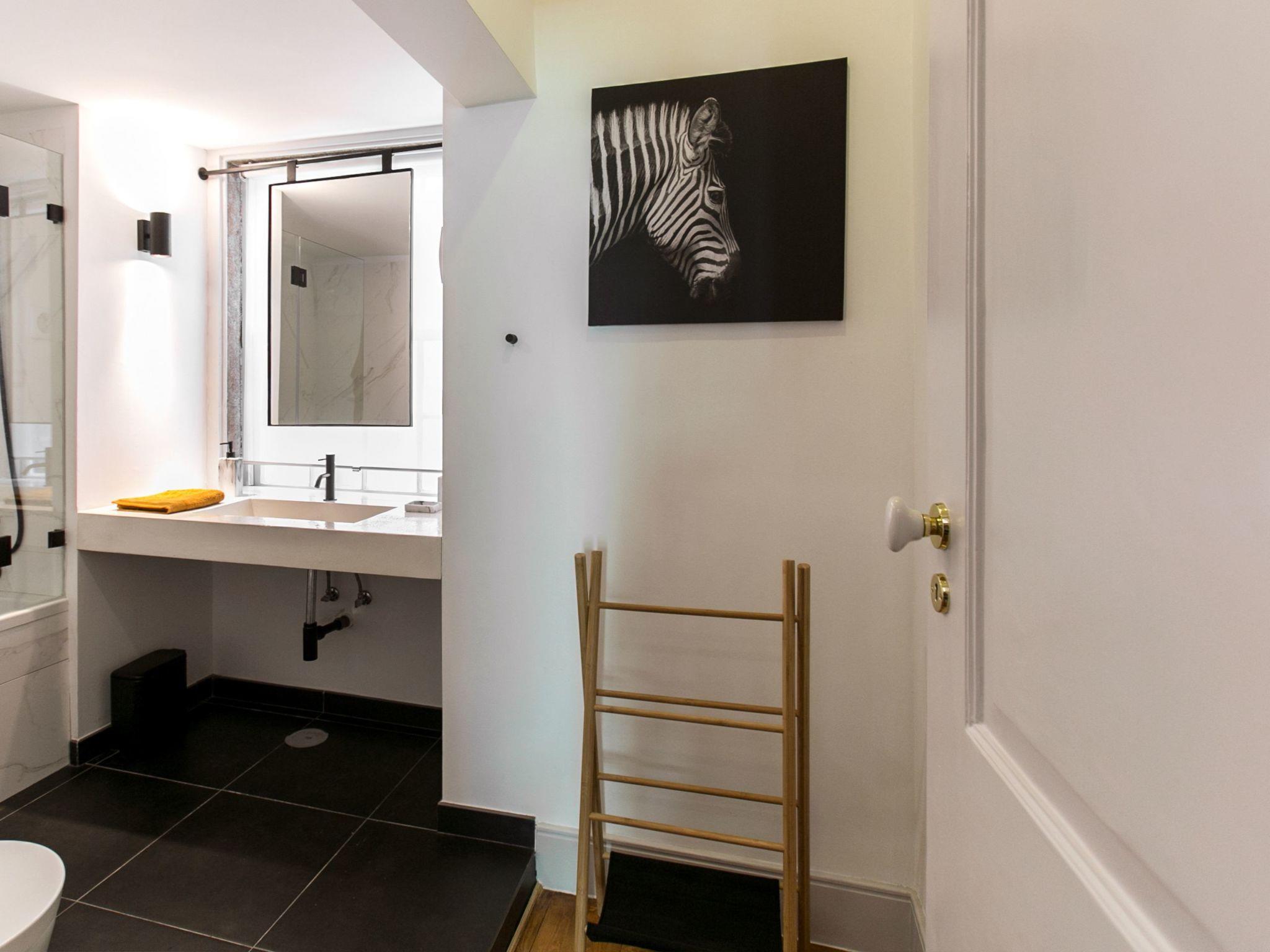 LIVING: Designed using contrasting styles and a nature & exotic-based theme, the apartment provides unforgettable housing for a couple, group of friends, or family with utmost comfort?? The living area is stylishly decorated with nature elements contrasting the walls and features high ceilings and great windows. The two bedrooms have very comfortable double beds, air conditioners, and a timeless simplicity combining a two-centuries-old apartment story and quality wooden floors with sumptuous beds and luxury furnishings. There are 2 bathrooms - one with a bathtub, the other is en-suite and has a shower - with high-design bath fixtures. The kitchen is fully equipped and features high-end details?
