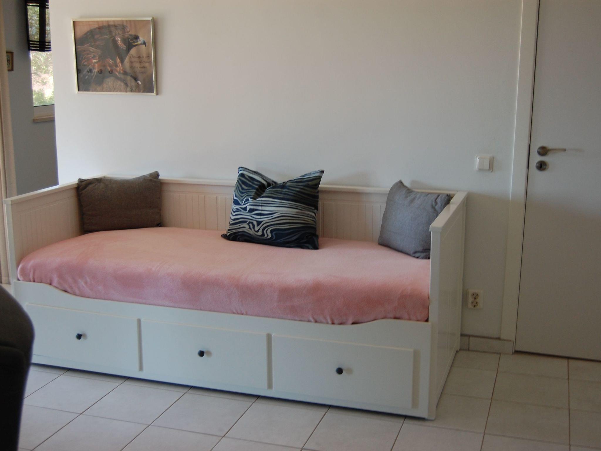I am also pleased to inform you that there is another flat in the property. This is 50 m² in size and is furnished as an additional holiday flat for four people. I think this is a great option for a happy couple with two lovely children. The flat has a cosy bedroom with a comfortable double bed and a desk and chair, which is ideal for a home office. The lovingly designed eat-in kitchen is furnished with two comfortable armchairs and a cosy sofa bed for two people. A flat-screen TV with international programmes provides entertainment, while a dining table for four people allows for sociable get-togethers. The kitchen is also well equipped with a fridge, ceramic hob, oven and microwave to make your stay as comfortable as possible. The bathroom is equipped with a washbasin, WC and shower to make you feel at home. A large, shaded and covered terrace awaits you in front of the flat, inviting you to linger and offering a marvellous view of the sea. The flat is perfect for two families who want to spend a relaxing holiday together without sacrificing their privacy. The main house can accommodate up to six people, while the flat can accommodate up to four people. To make you feel at home, we ask you to open the flat by prior arrangement.
