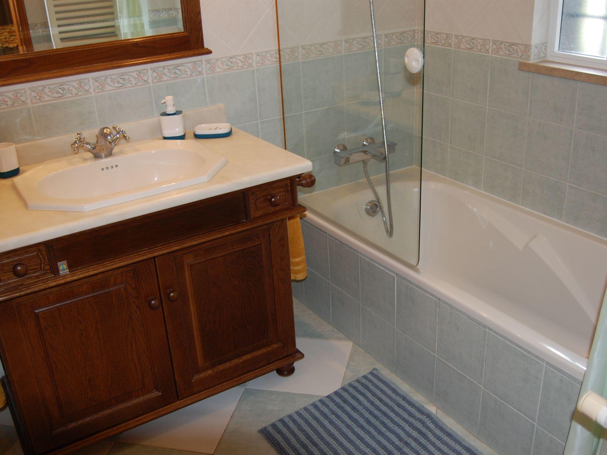 The outdoor area surprises with a wonderful pool, a solar shower and comfortable sun loungers that invite you to relax under the Mediterranean sun. The terrace offers breathtaking sea views and the opportunity to organise unforgettable barbecues on the charcoal or gas barbecue. A charming external staircase leads to the roof terrace, which fascinates with its panoramic views of the sea and Faro. The fenced plot with automatic gate also has space for three cars and guarantees privacy.