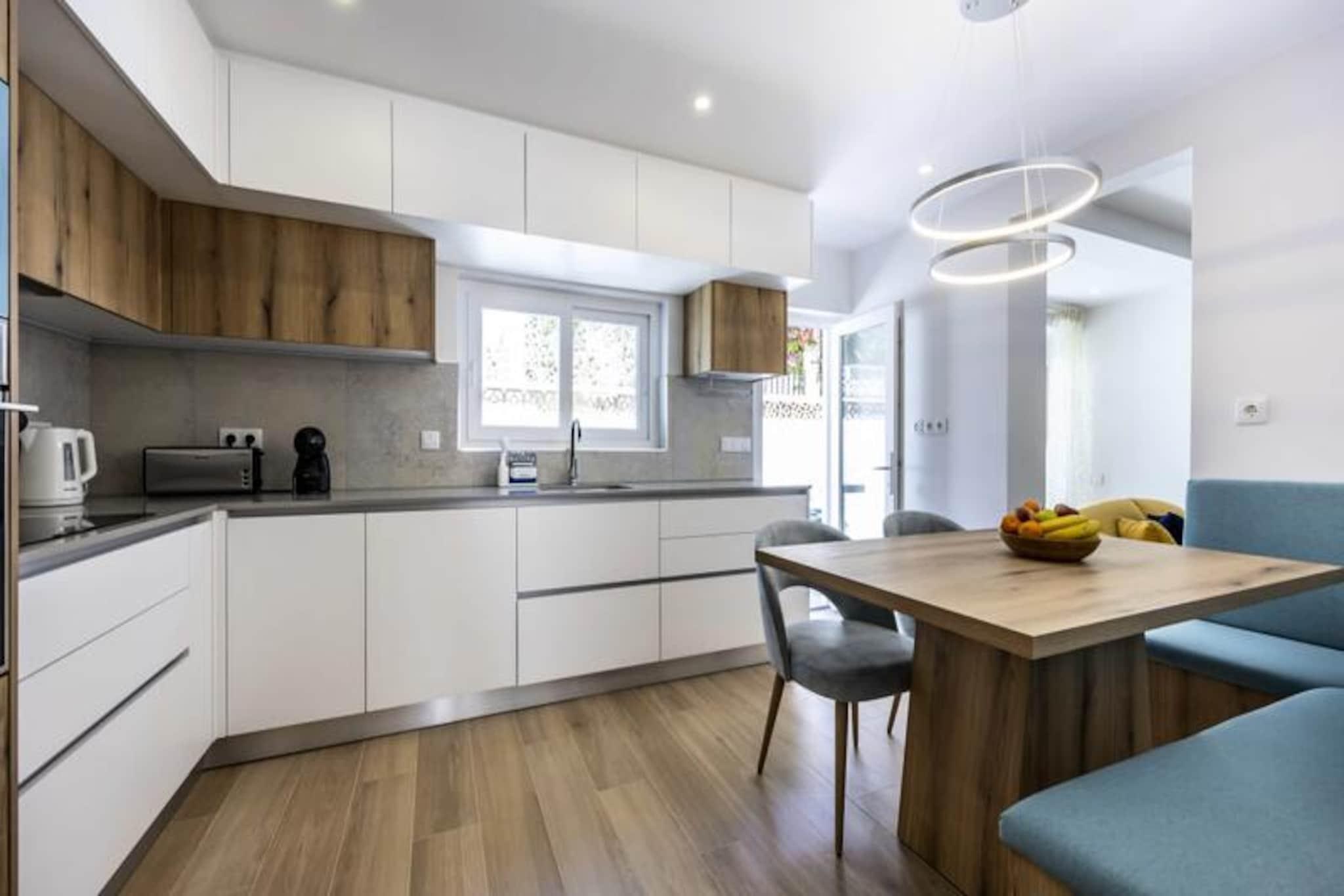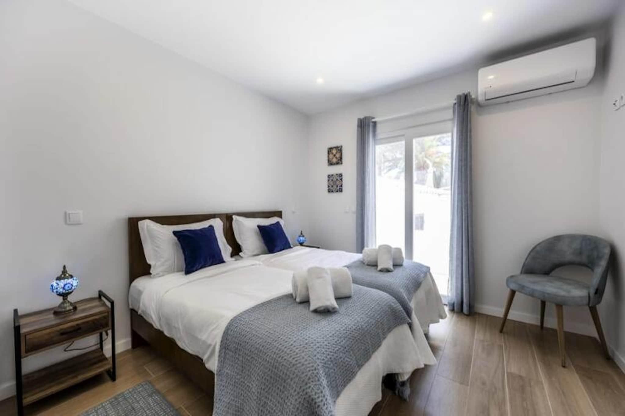 Forestil dig at vågne op til den beroligende lyd af bølger og gå udenfor for at finde havet kun 25 meter væk. Denne helt nye lejlighed med tre soveværelser i Praia da Luz tilbyder den perfekte blanding af moderne komfort og kystcharme, hvilket gør den til et ideelt tilflugtssted for din næste ferie. Beliggende i stueetagen af ??en smuk villa, inviterer denne ejendom dig til at slappe af og koble fra i en af ??Portugals mest maleriske kystdestinationer. Indenfor kan lejligheden prale af et stilfuldt og hyggeligt opholdsrum designet til din komfort. Den moderne stue er perfekt til at slappe af efter en dag med udforskning, mens det fuldt udstyrede køkken tilbyder alt hvad du behøver for at tilberede lækre måltider. Hvert af de tre soveværelser har et en-suite badeværelse, hvilket sikrer privatliv og bekvemmelighed for alle gæster. Komfortable senge lover afslappende nætter, så du kan vågne op frisk og klar til nye eventyr. Højdepunktet ved denne ejendom er dens rummelige private terrasse. Møbleret med to forskellige siddeområder er den perfekt til udendørsliv. Nyd spisning under åben himmel med grillen eller slap af med en bog og et glas vin, mens solen går ned. For en forfriskende ferie, tag en dukkert i den fælles swimmingpool, der er åben sæsonbestemt. Familier vil sætte pris på det rolige kvarter, rejsesengen og højstolen, der er til rådighed for ekstra bekvemmelighed. Praia da Luz tilbyder en charmerende blanding af ro og aktivitet. Gå en tur langs stranden, udforsk de dramatiske klipper, eller besøg den nærliggende, pulserende by Lagos, der ligger kun 15 minutters kørsel væk. Med sit historiske centrum, marina og vandsportsaktiviteter tilbyder Lagos uendelig underholdning. Uanset om du søger afslapning eller eventyr, er denne lejlighed din port til en uforglemmelig Algarve-oplevelse.