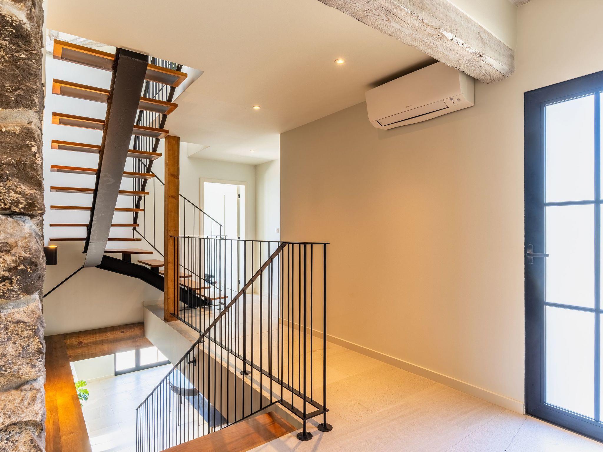 Inside, the villa unfolds over three meticulously designed floors that cater to every need. The ground floor features a cozy living room with a fireplace, a flat-screen TV with cable channels, a stereo system, and a guest toilet, alongside a beautiful dining area. The kitchen is fully equipped with the latest appliances, including an oven, stove, microwave, fridge, washing machine, coffee and capsule coffee machine, dishwasher, and a convenient dining table. The upper floors house the bedrooms, each offering a sea view, with the master bedroom boasting an ensuite bathroom and walk-in closet. For added comfort, there's air conditioning throughout, a gym, and amenities such as a clothes dryer and electric kettle.