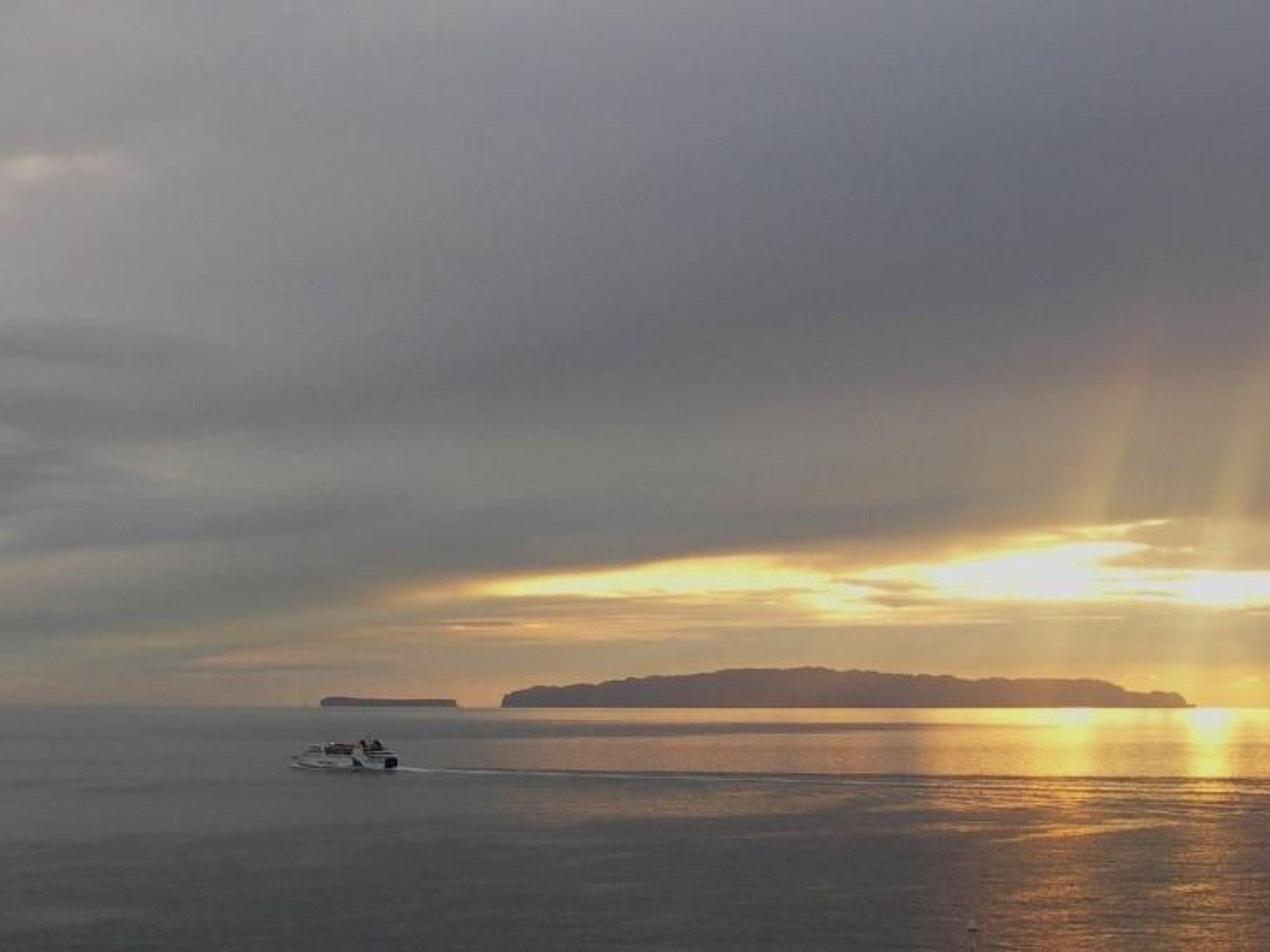 The flat has a bedroom with a sea view and a cosy, covered breakfast balcony. If you want, you can watch the spectacular sunrise from your bed every day. A living room with a pull-out couch for a third person, satellite TV with flat screen, a dining area with a practical hatch to the kitchen, where you will find a 4-burner ceramic hob, a kettle, a coffee machine and a microwave as well as a washing machine.