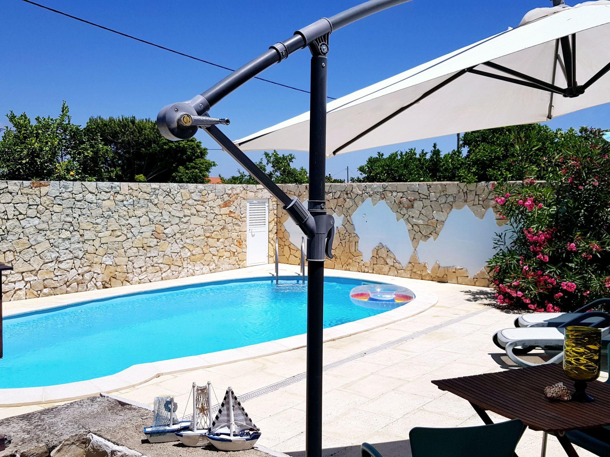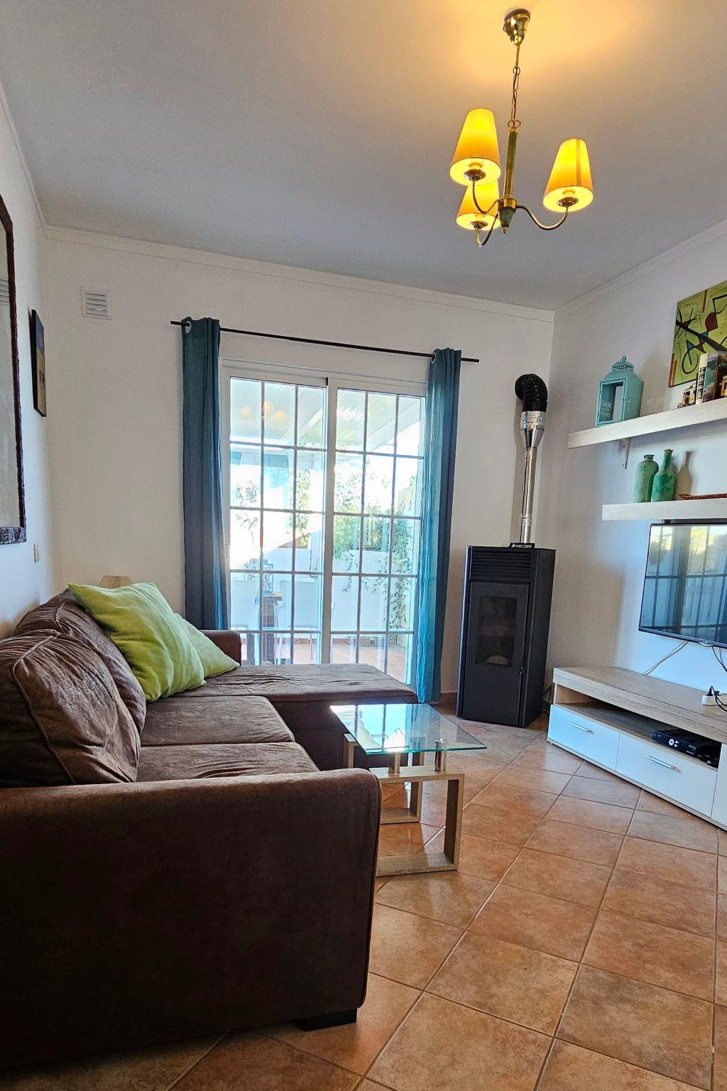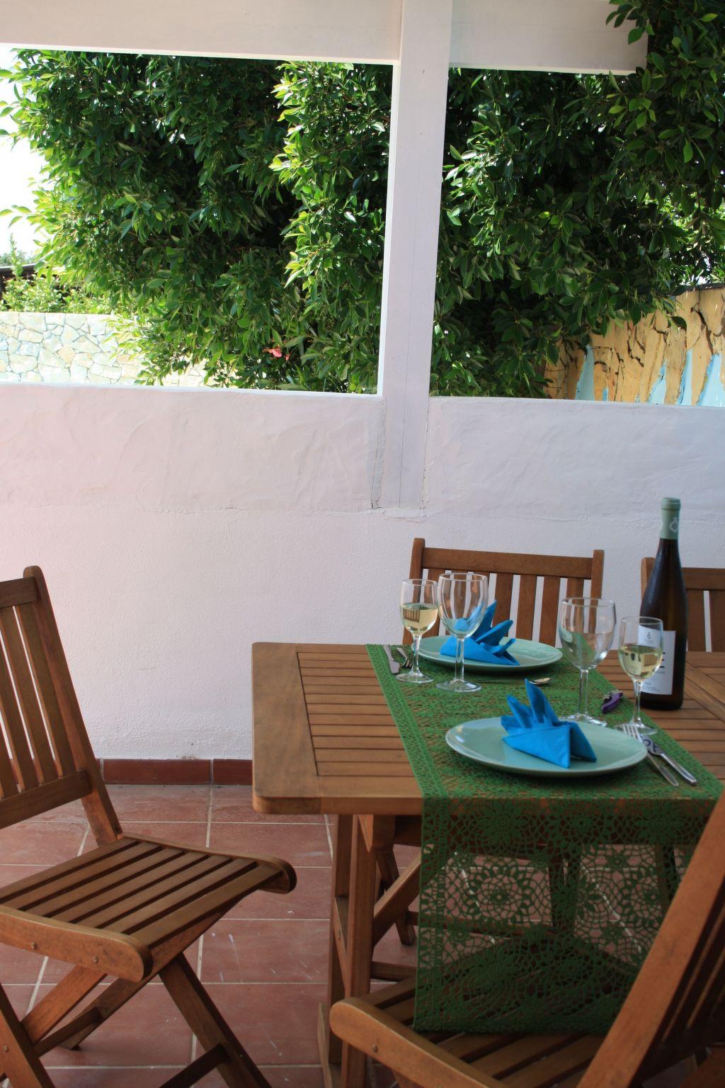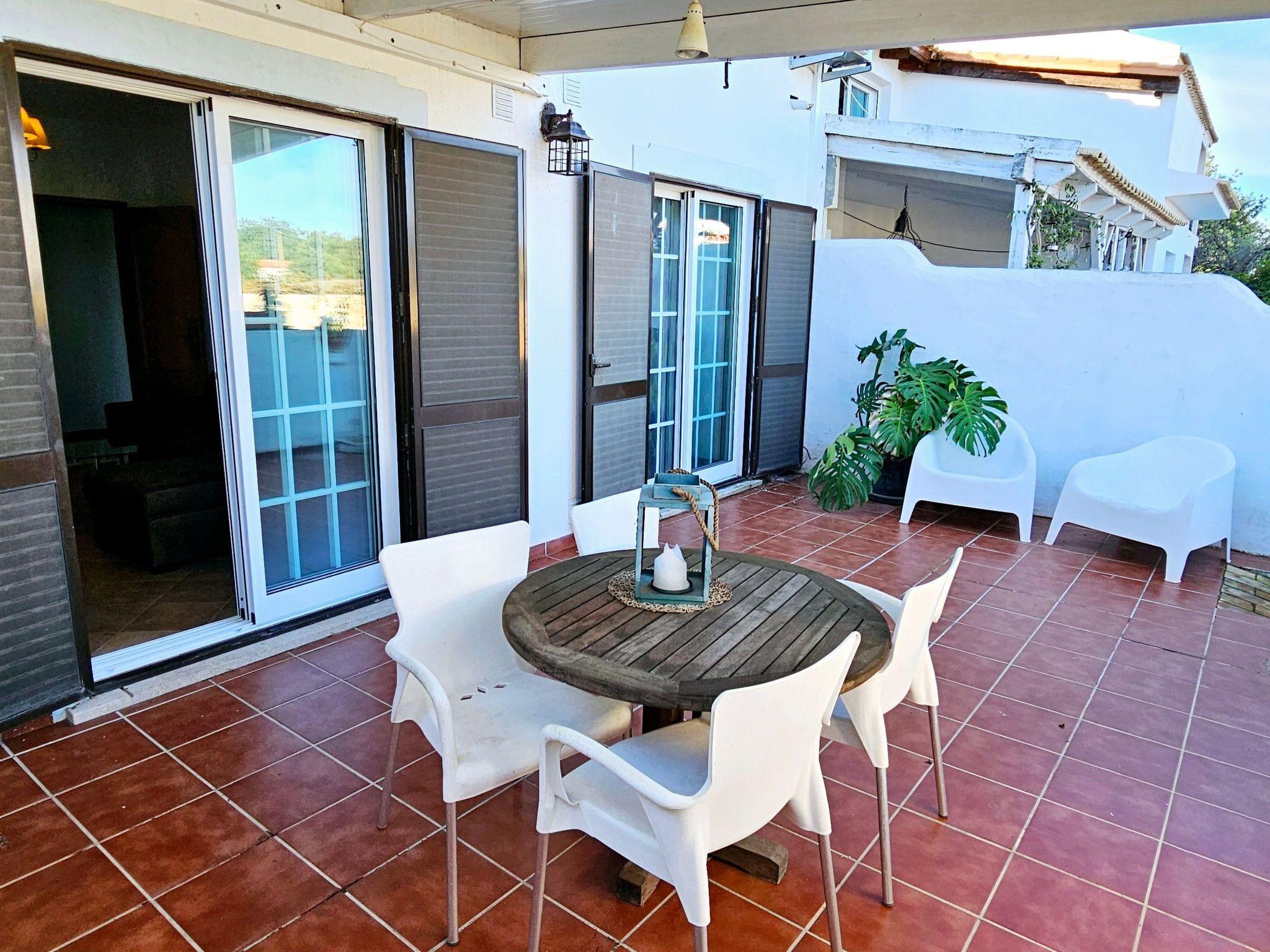 The exterior speaks of relaxation and leisure, with a private terrace outfitted with a dining table and chairs, offering direct access through a small gate to the communal pool area. Enjoy the Portuguese sun on comfortable lounging chairs by the saltwater pool, open from May to October and featuring a relaxation area suitable for small children or simply lounging. The pool is cleaned, and plants are watered regularly, ensuring a delightful outdoor experience throughout your stay.