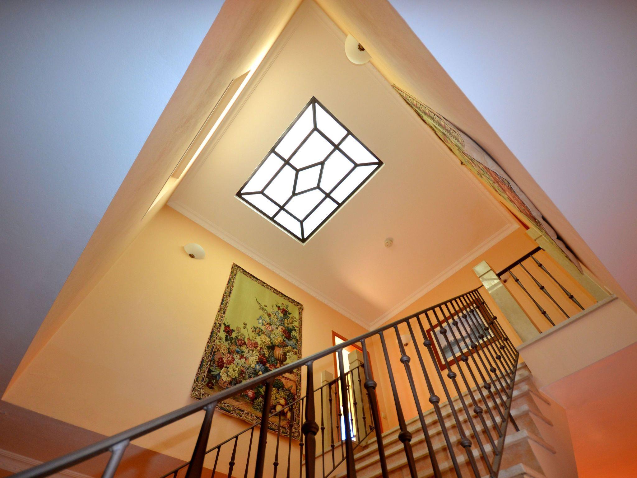 The interior of Villa Vida Nova is a testament to luxury living, accommodating up to 6 guests across three opulent suites (Super King, King, and Twin), with additional provision for two children under 3 in cots. Every suite features Juliet balconies, enhancing the connection to the surrounding nature, while the Super King and King suites boast their own private sun terraces. The villa comes fully equipped for a comfortable stay, featuring a gourmet kitchen, a formal dining room seating eight, comprehensive air conditioning, five TVs (including three smart TVs), Bluetooth sound systems, central heating, and complimentary Wi-Fi.