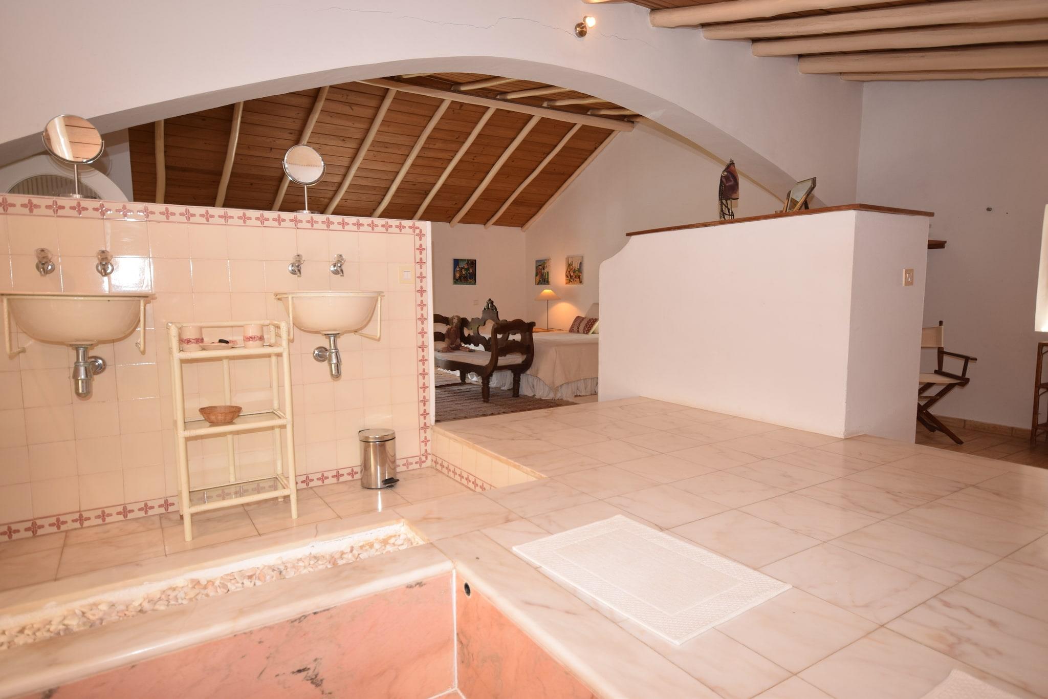 Stueetage: (entre, Stue(Fjernsyn(Internationale TV-kanaler), pejs, sofahjørne, DVD-afspiller), spisestue(spisebord), Køkken(elkedel, brødrister, komfur(Komfur med fire kogeplader, gas), kaffemaskine, ovn, combi-mikroovn, opvaskemaskine , køle-fryseskab, Saftpresser), Soveværelse med badeværelse(2x enkeltseng(100 x 200 cm), bruser, håndvask, toilet), Soveværelse med badeværelse(2x enkeltseng(100 x 200 cm), bruser, håndvask, toilet), Soveværelse med badeværelse(2x enkeltseng(100 x 200 cm), badekar, bruser, håndvask, toilet)) På 1. etage: (Soveværelse med badeværelse(2x enkeltseng(100 x 200 cm), pejs, badekar med bruser, håndvask, toilet), toilet, bibliotek, trappegitter) havestue/veranda, terrasse(privat, overdækket), havemøbler, parkering, swimmingpool(privat, 17 x 10 m.), barneseng, barnestol