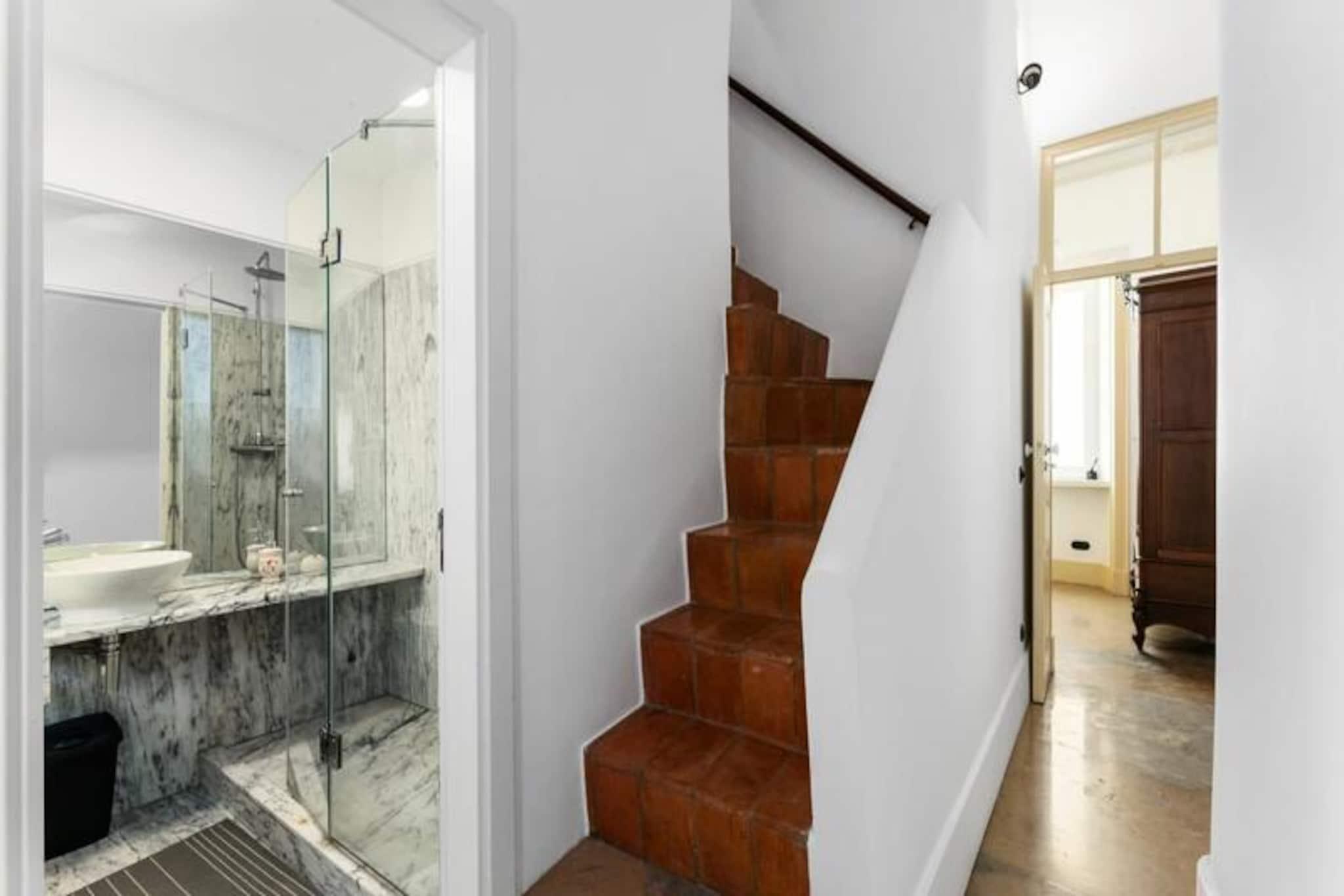 Træd ind i hjertet af Olhão, en pulserende kystby i Portugals østlige Algarve, og fordyb dig i charmen ved denne unikke historiske lejlighed. Denne ejendom, der engang var residens for den berømte læge Francisco Fernandes Lopes, er en sand perle, der blander tidløs elegance med moderne komfort. Fra de traditionelle lofter i kunstmarmor til den panoramiske tagterrasse fortæller hvert hjørne en historie om kulturarv og skønhed. Lejligheden strækker sig over flere etager og tilbyder en varm og indbydende atmosfære. På første sal finder du to rummelige soveværelser, et med franske døre, der åbner ud til en charmerende balkon, og et lille tilstødende arbejdsværelse. Det andet soveværelse forbindes problemfrit gennem originale trædøre, hvilket bevarer husets historiske karakter. Gå op ad den smalle stentrappe til andet niveau, hvor en åben stue og køkken fører til en stor udendørs terrasse, perfekt til spisning under åben himmel. Kronejuvelen er den solbeskinnede tagterrasse på fjerde sal, der tilbyder en betagende udsigt over øerne Armona, Culatra og Fuzeta. Denne lejlighed ligger kun få skridt fra Olhãos hovedpromenade og er lige ved porten til Algarves rolige øer. Gå en tur gennem de brostensbelagte gader i fiskerkvarteret, udforsk det pulserende friske marked, eller nyd det lokale køkken på nærliggende restauranter. Færgen til øerne er kun få minutter væk, hvilket gør det nemt at opdage de uberørte strande og den naturlige skønhed i regionen. Uanset om du søger et fredeligt tilflugtssted eller en eventyrfyldt ferie, tilbyder denne historiske lejlighed den perfekte base for at opleve det bedste af Olhão og Algarve. Book dit ophold i dag og skab uforglemmelige minder i denne fortryllende kystby.