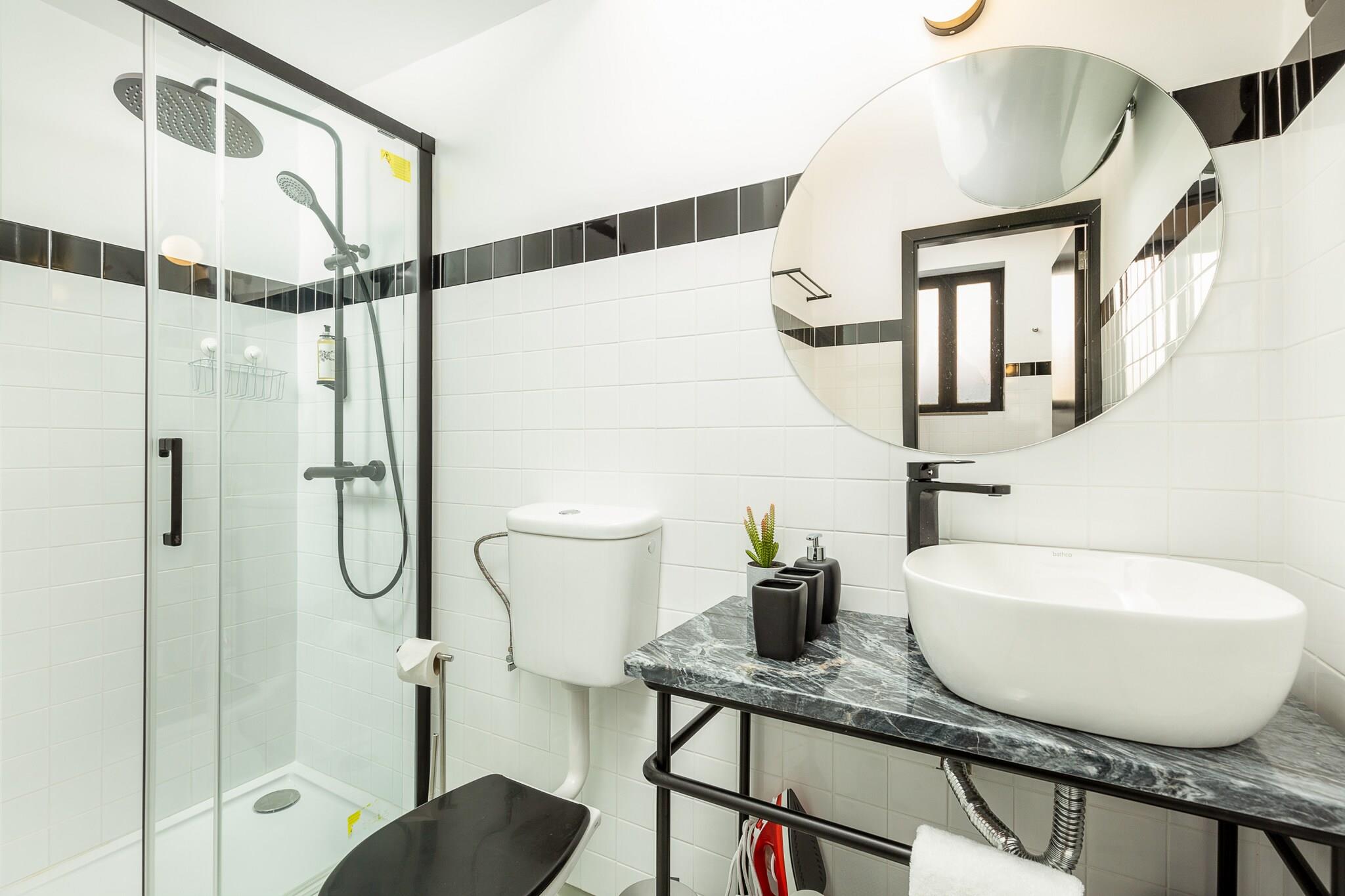 Denne moderne lejlighed har 3 dobbeltsenge og 3 enkeltsenge, hvilket giver et behageligt ophold for grupper eller familier. Udstyret med aircondition, internet, satellit-tv og andre væsentlige faciliteter sikrer lejligheden bekvemmelighed og komfort for gæsterne. Det uafhængige køkken er fuldt udstyret med køleskab, mikroovn, ovn, kaffemaskine, opvaskemaskine og andre køkkenredskaber, hvilket giver mulighed for nem tilberedning af måltider. Derudover inkluderer ejendommen sengetøj, håndklæder og slutrengøring, hvilket tilbyder et hyggeligt og praktisk miljø. Lejligheden ligger på den livlige Santa Catarina-gade i Porto, i et område fyldt med caféer, butikker og restauranter. Nærheden til offentlig transport gør det nemt at få adgang til store turiststeder i byen, såsom Ribeira og Dom Luís I-broen, og det fungerer som en fremragende base for at udforske Portos kultur og historie. Busstoppesteder og metrostationer er i nærheden, hvilket sikrer nem transport rundt i byen og videre. Med 105 m² plads tilbyder lejligheden rigelig plads til afslapning og komfort. To badeværelser med bruser og et ekstra toilet giver bekvemmelighed for gæsterne. Elevatoren giver nem adgang til ejendommen, mens inklusion af aircondition sikrer et behageligt ophold på alle årstider.