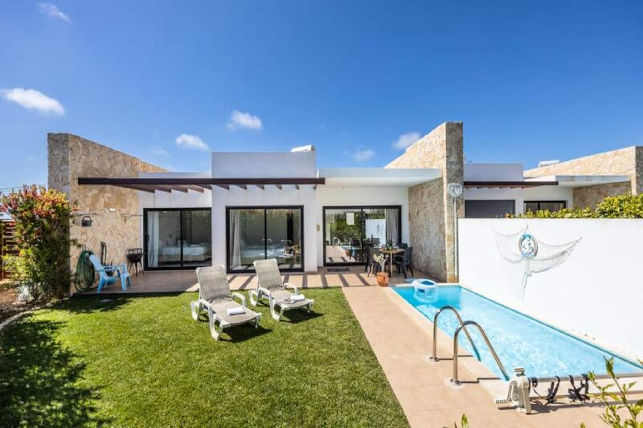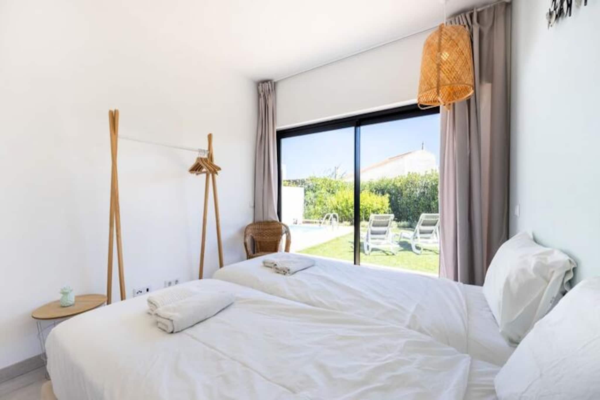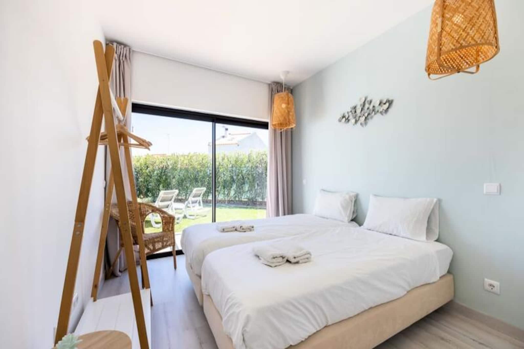 I den fredelige kystby Sagres tilbyder dette charmerende feriehus et roligt tilflugtssted for op til fire gæster. Ejendommen er perfekt beliggende ved byens indgang, kun en kort køretur fra de gyldne sandstrande Martinhal og Tonel, hvilket gør den til et ideelt udgangspunkt for surfere, strandelskere og naturelskere. Algarves naturlige skønhed omgiver dig og tilbyder en fredelig flugt fra hverdagen. Træd indenfor og oplev et lyst og moderne opholdsrum, der er omhyggeligt designet med henblik på komfort og afslapning. Stuen har et stort karnapvindue, der fylder rummet med naturligt lys og giver udsigt til den private have og pool. En hyggelig sofa, satellit-tv og spiseplads skaber de perfekte rammer for afslapning efter en dag fuld af eventyr. Det åbne køkken er fuldt udstyret med moderne apparater, herunder keramisk kogeplade, ovn, mikroovn, opvaskemaskine og køleskab/fryser, så du har alt, hvad du behøver for at tilberede lækre måltider. Udenfor inviterer den private have dig til at nyde solskinnet i Algarve. Tag en forfriskende dukkert i swimmingpoolen eller slap af på den sydøstvendte terrasse med en bog eller et glas vin. Den fredelige boligbeliggenhed sikrer et afslappende ophold, mens nærheden til lokale faciliteter og strande tilføjer bekvemmelighed. Der er privat parkering til rådighed, og det anbefales at leje en bil for at udforske den smukke kystlinje og nærliggende attraktioner. Uanset om du er her for at surfe på bølgerne, udforske Algarves dramatiske klipper eller blot slappe af i solen, tilbyder dette feriehus den perfekte blanding af komfort og beliggenhed. Med sine moderne faciliteter og rolige atmosfære er det et paradis for familier eller ansvarlige voksne, der søger en mindeværdig ferie i en af Portugals mest maleriske regioner.