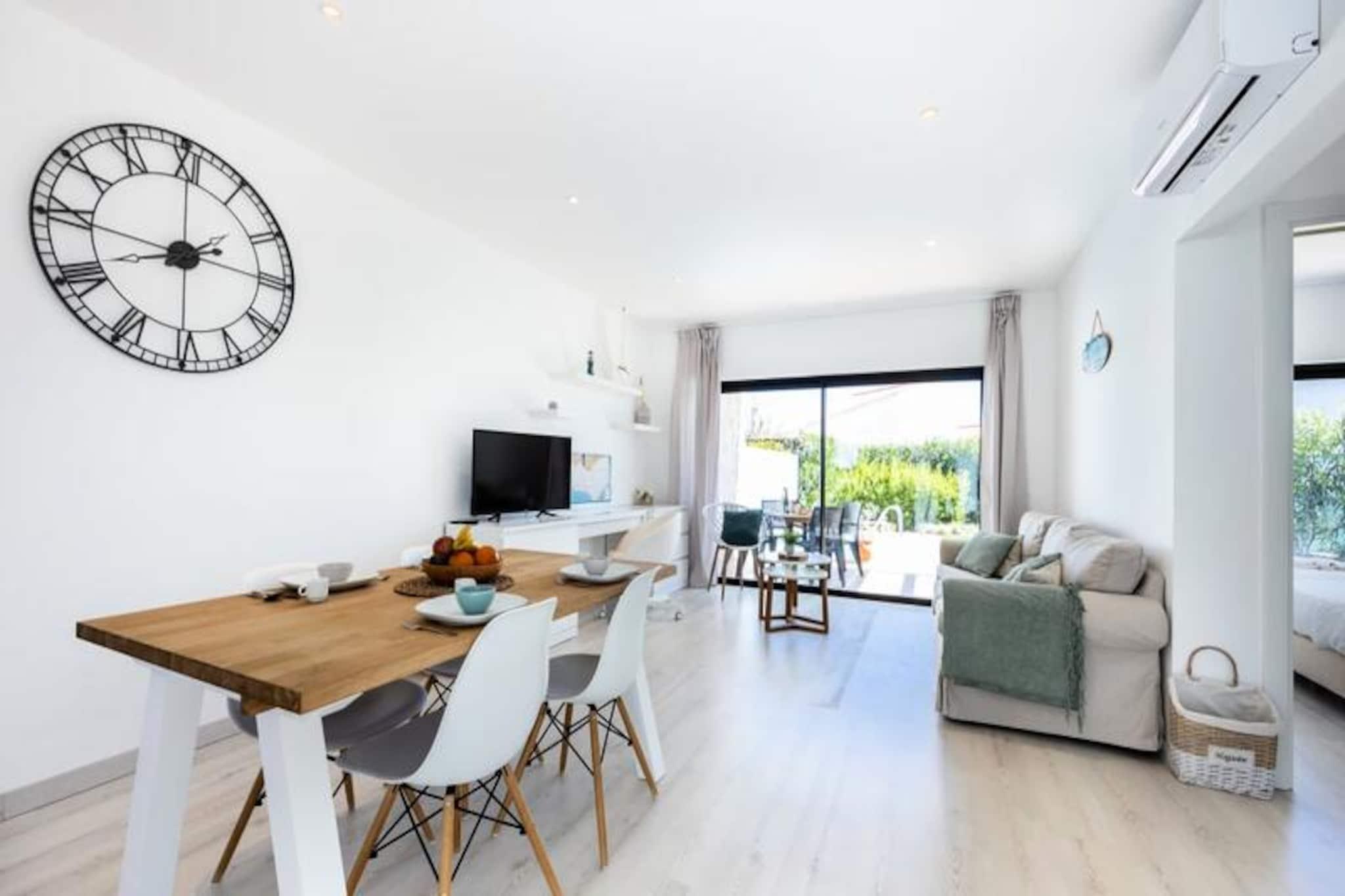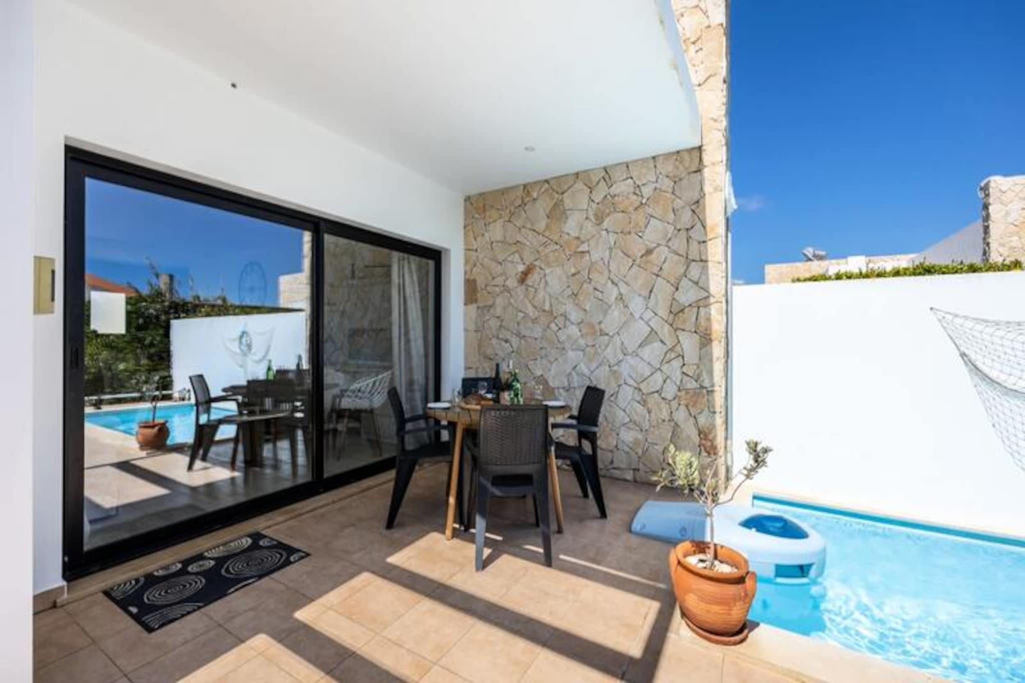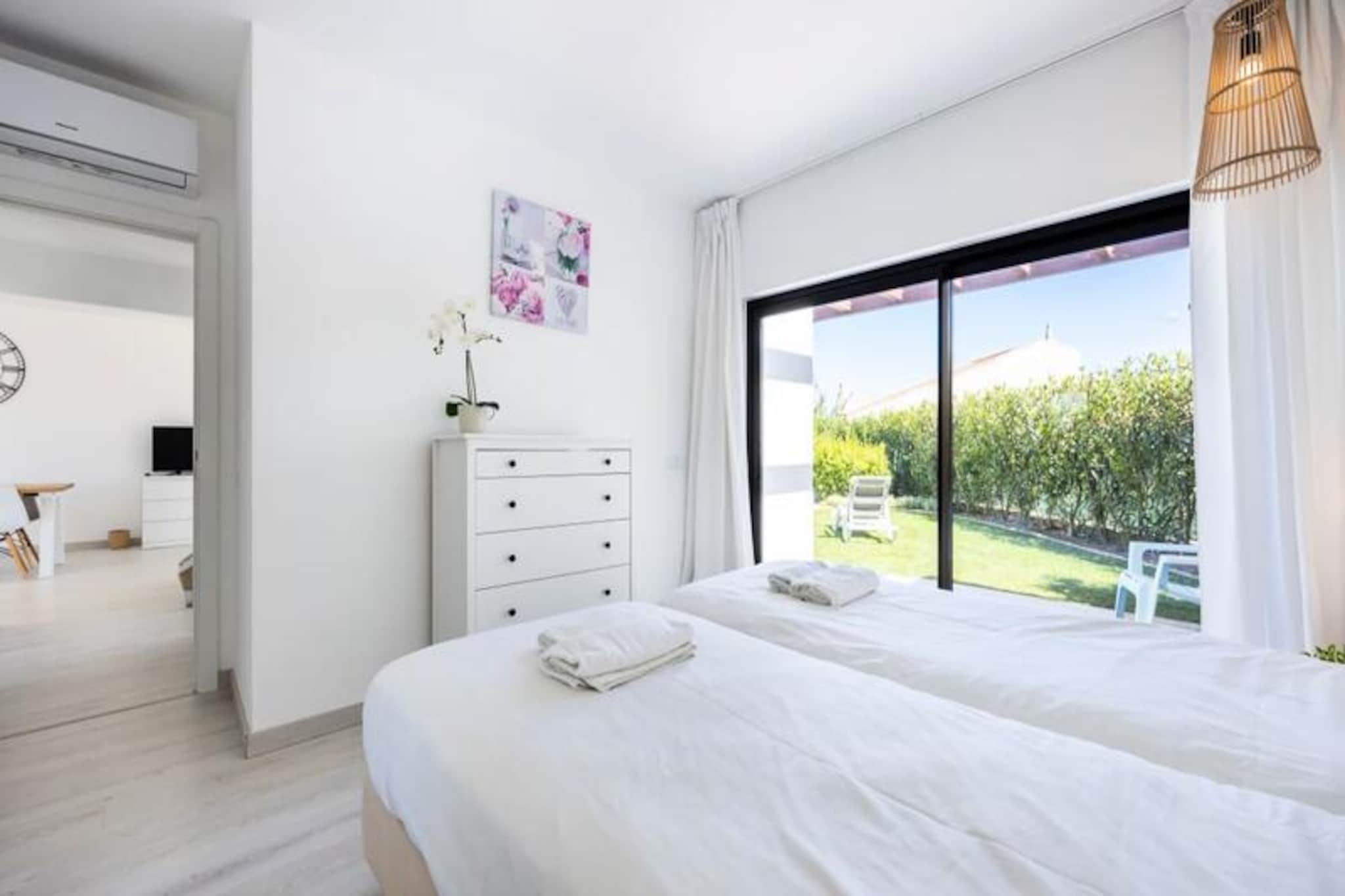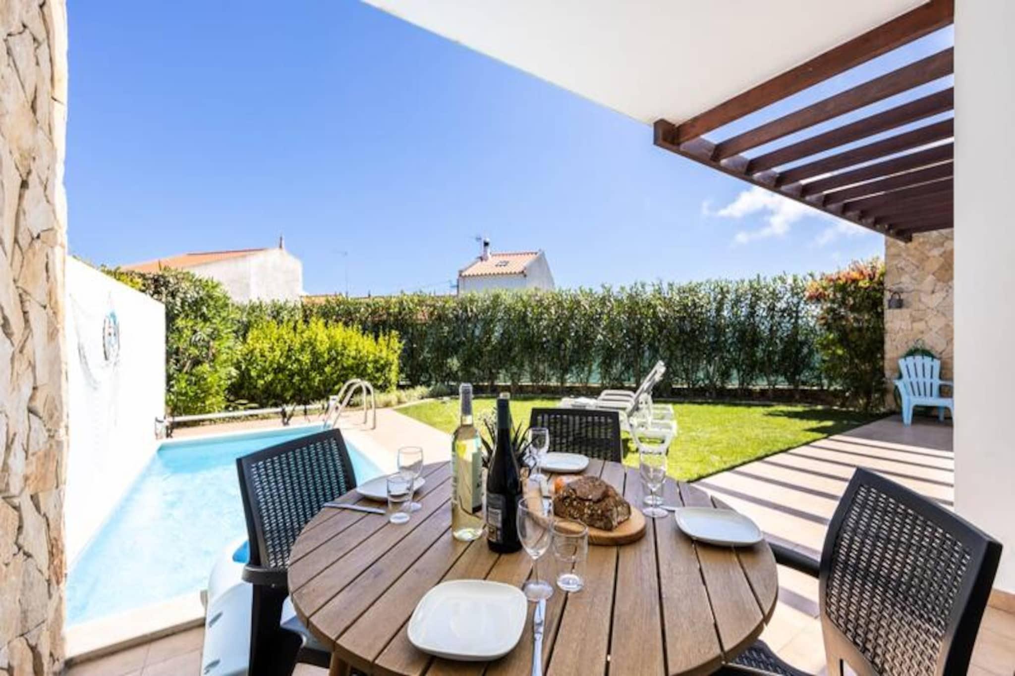 I den fredelige kystby Sagres tilbyder dette charmerende feriehus et roligt tilflugtssted for op til fire gæster. Ejendommen er perfekt beliggende ved byens indgang, kun en kort køretur fra de gyldne sandstrande Martinhal og Tonel, hvilket gør den til et ideelt udgangspunkt for surfere, strandelskere og naturelskere. Algarves naturlige skønhed omgiver dig og tilbyder en fredelig flugt fra hverdagen. Træd indenfor og oplev et lyst og moderne opholdsrum, der er omhyggeligt designet med henblik på komfort og afslapning. Stuen har et stort karnapvindue, der fylder rummet med naturligt lys og giver udsigt til den private have og pool. En hyggelig sofa, satellit-tv og spiseplads skaber de perfekte rammer for afslapning efter en dag fuld af eventyr. Det åbne køkken er fuldt udstyret med moderne apparater, herunder keramisk kogeplade, ovn, mikroovn, opvaskemaskine og køleskab/fryser, så du har alt, hvad du behøver for at tilberede lækre måltider. Udenfor inviterer den private have dig til at nyde solskinnet i Algarve. Tag en forfriskende dukkert i swimmingpoolen eller slap af på den sydøstvendte terrasse med en bog eller et glas vin. Den fredelige boligbeliggenhed sikrer et afslappende ophold, mens nærheden til lokale faciliteter og strande tilføjer bekvemmelighed. Der er privat parkering til rådighed, og det anbefales at leje en bil for at udforske den smukke kystlinje og nærliggende attraktioner. Uanset om du er her for at surfe på bølgerne, udforske Algarves dramatiske klipper eller blot slappe af i solen, tilbyder dette feriehus den perfekte blanding af komfort og beliggenhed. Med sine moderne faciliteter og rolige atmosfære er det et paradis for familier eller ansvarlige voksne, der søger en mindeværdig ferie i en af Portugals mest maleriske regioner.