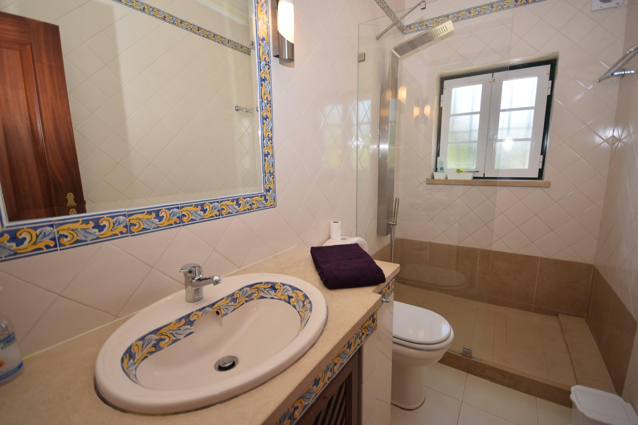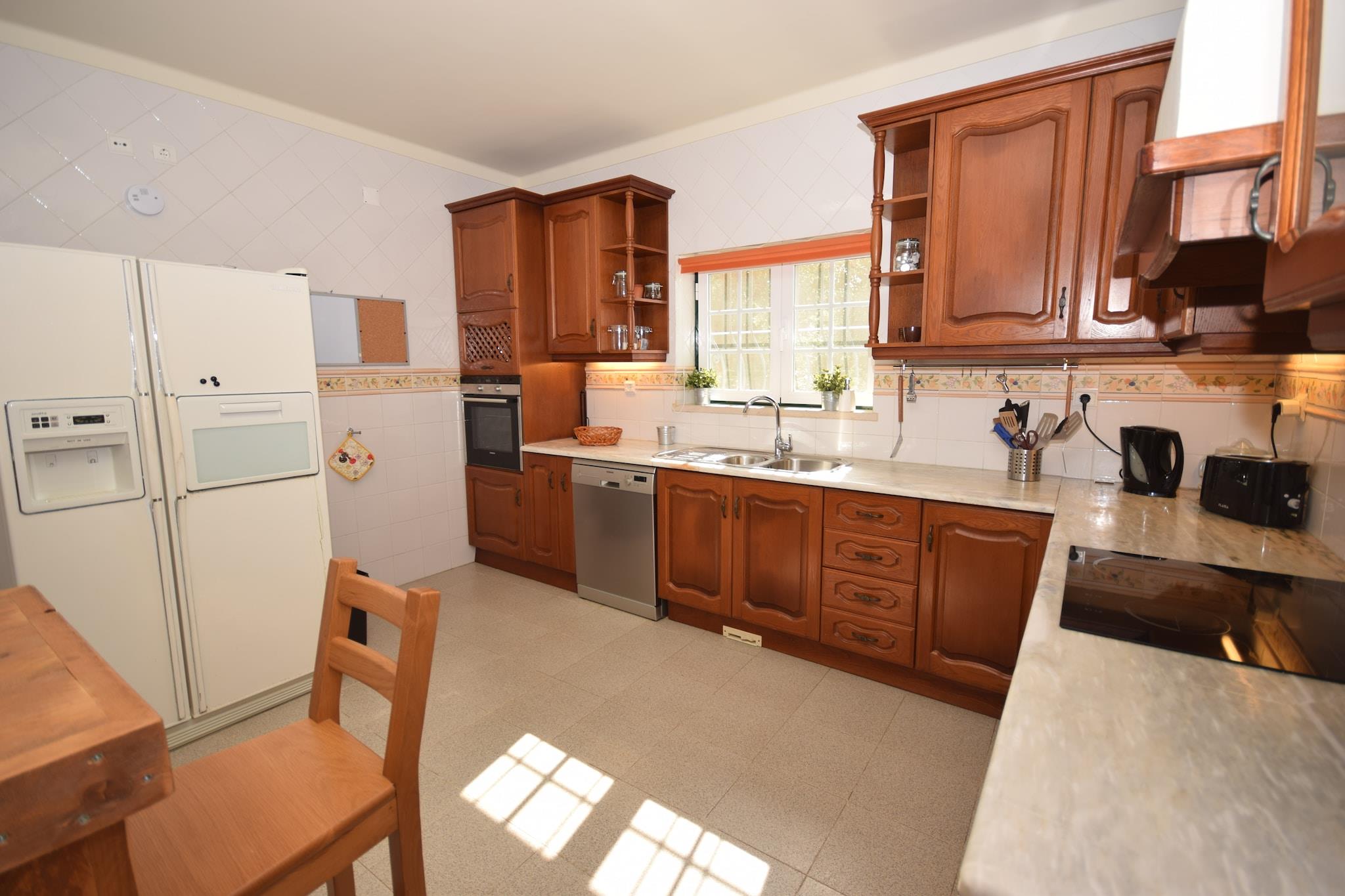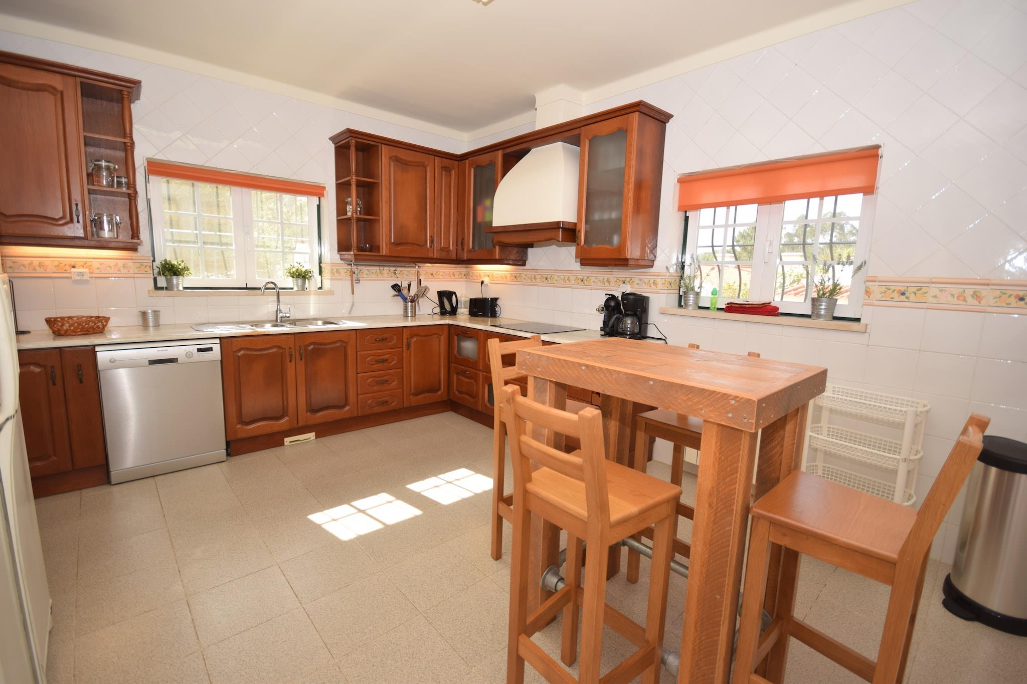 Familieferie med privat pool i Caldas da Rainha Denne rummelige villa ligger kun 5 km fra den charmerende by Caldas da Rainha og tilbyder en perfekt blanding af afslapning og bekvemmelighed. Omgivet af en smukt indrettet have med liggestole og en indhegnet privat swimmingpool er den ideel for familier eller grupper, der søger fred og komfort. Den udendørs grill indbyder til at nyde lækre måltider, mens børnene kan lege på det specielle legeudstyr og rutsjebanen i et sikkert, børnevenligt miljø. Praktiske detaljer som puslemåtte, barneseng og højstol sikrer, at de små bliver godt taget hånd om. Udforsk nærliggende attraktioner og strande Kun 13 km væk ligger den berømte Nazaré-strand med sin fantastiske kystlinje og verdensberømte surfsteder, hvilket gør den til et must for både solelskere og eventyrlystne. For en mere rolig oplevelse ved vandet ligger Foz do Arelho kun 15 km fra villaen og tilbyder smuk udsigt over lagunen og roligt vand til svømning. Golfentusiaster kan nyde en runde på den nærliggende Óbidos golfbane, kun 10 km væk, mens Caldas da Rainha selv byder på livlige markeder og butikker, hvor du kan købe friske råvarer og lokalt håndværk.