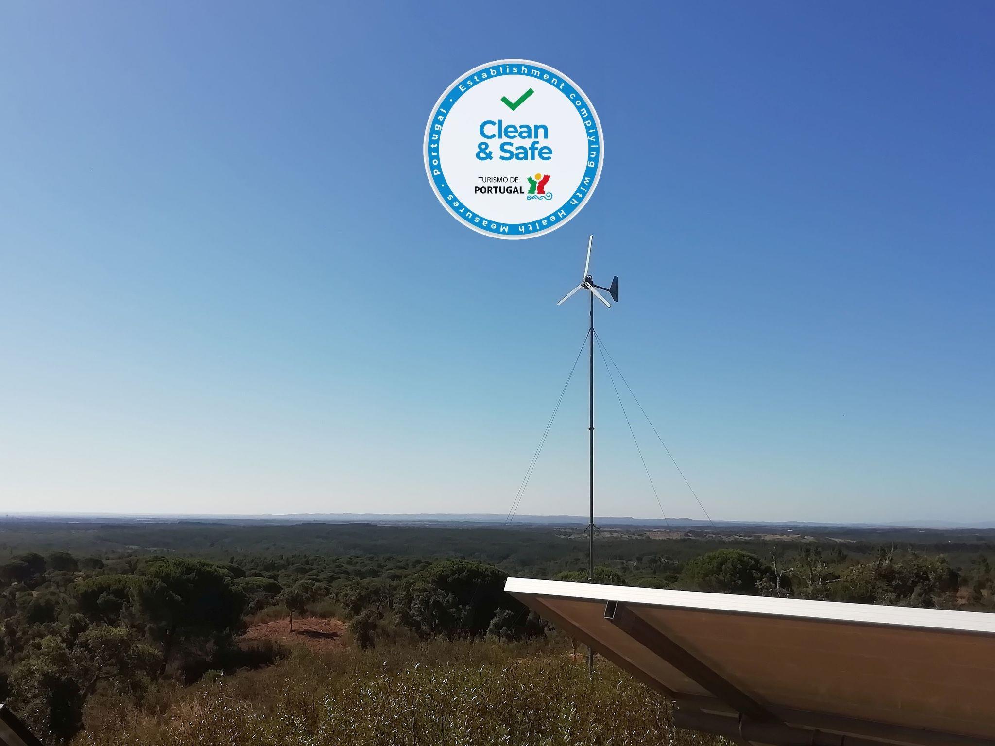 Discover the charm of the Alentejo region at Monte Horizonte, a quaint eco-friendly complex just five minutes outside the historic city of Santiago do Cacém. Nestled in a sprawling twenty-hectare estate, this haven offers six holiday homes, each boasting its own private terrace with breathtaking views. The climate is a dream, featuring dry heat peaking at 32 degrees in the summer before pleasantly cooling to 17 degrees at night. Each home is thoughtfully placed 40 meters apart to ensure your absolute privacy and serenity during your stay.