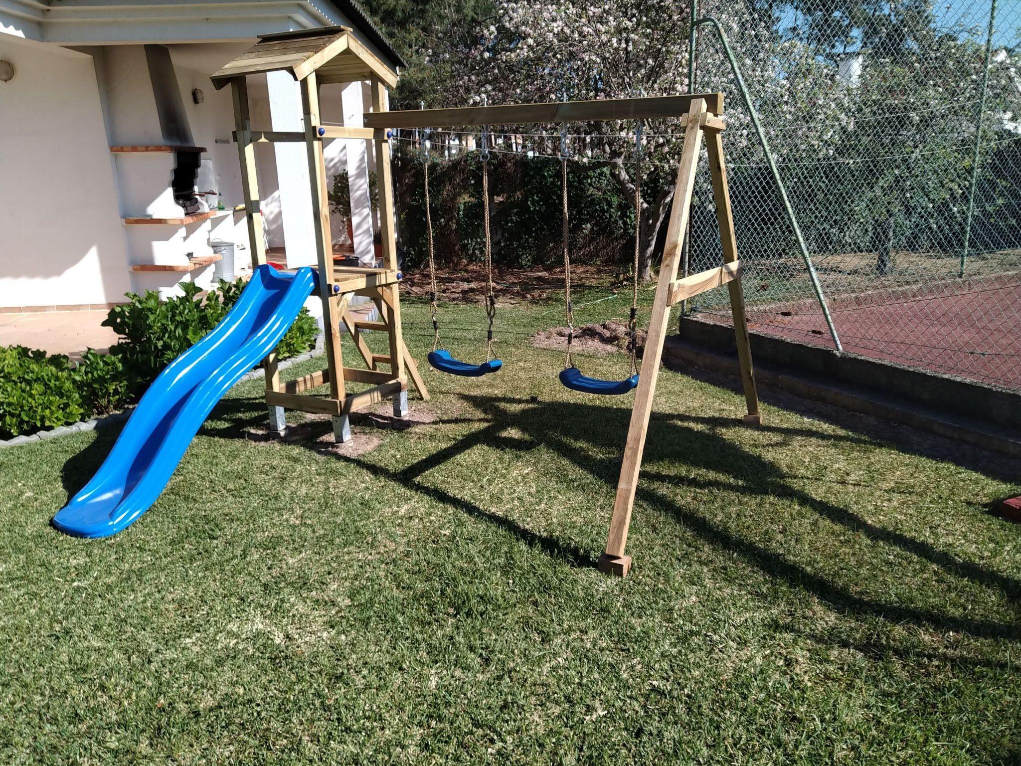 With a great garden, big swimming pool, tennis court, ping-pong table, playground and parking inside, all private.